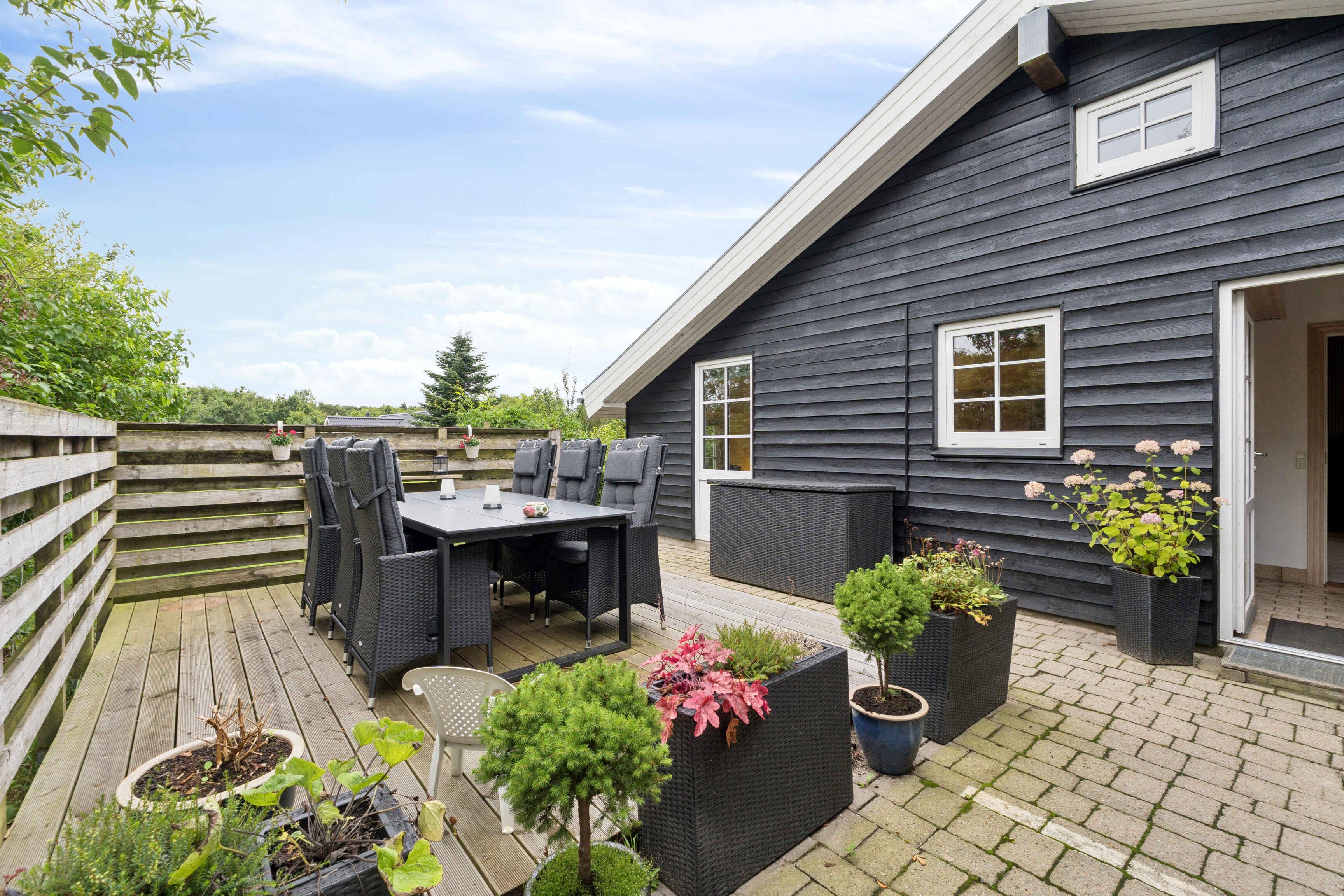 Charmant houten fjordhuis met bubbelbad, terras en tuin vlakbij Ringkøbing Fjord in Denemarken.