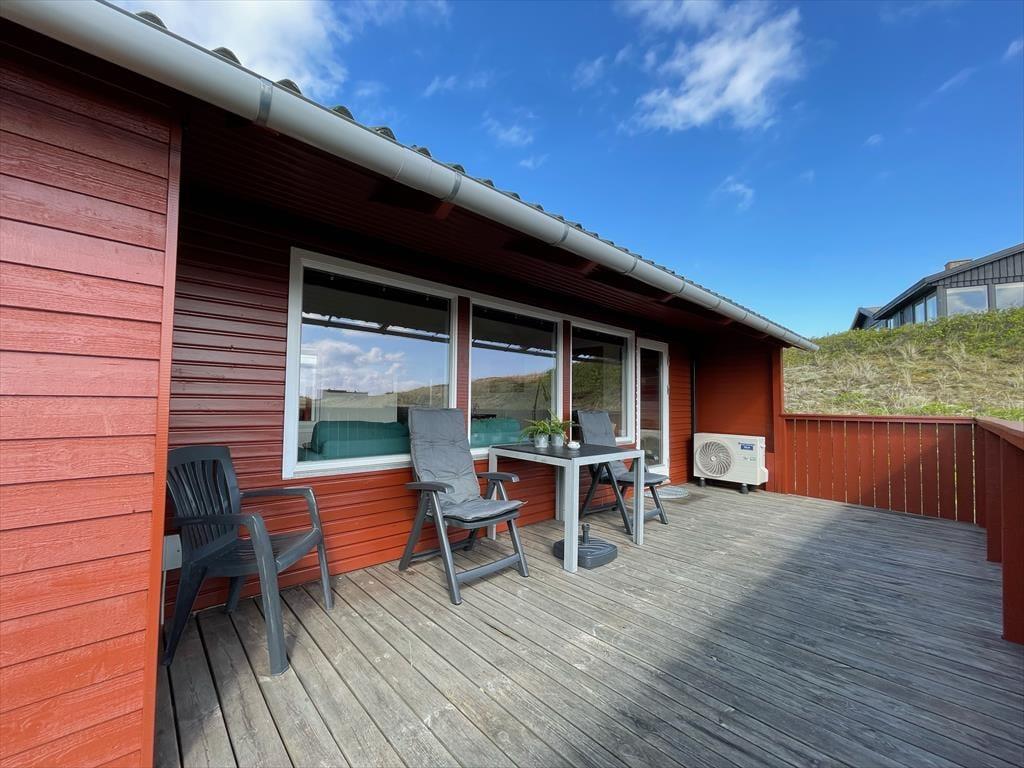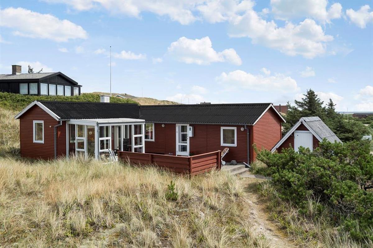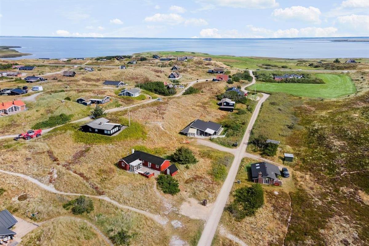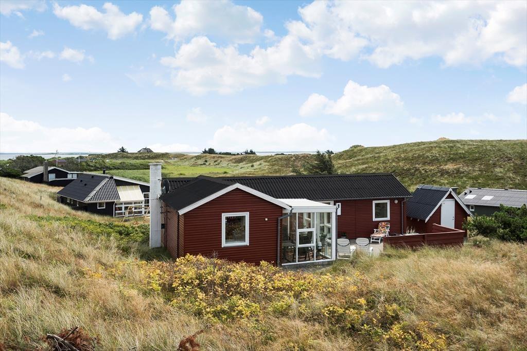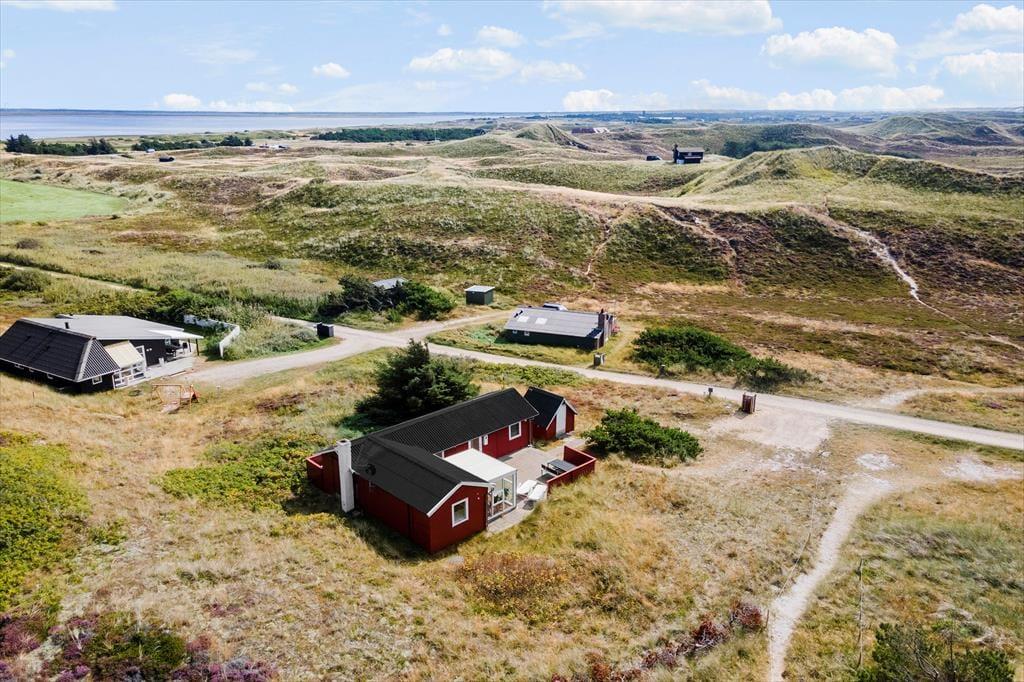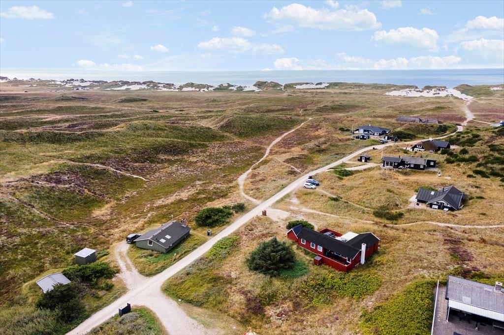 Sie wohnen mittig zwischen Nordsee und Ringkøbing Fjord. Nach rund 500 Metern erreichen Sie den Nordseestrand und das idyllische Fjordufer. Zahllose kleine Pfade führen Sie zu Fuß durch die spektakuläre, unberührte Dünenlandschaft. Ein guter Fahrradweg schlängelt sich durch die Landschaft und lädt zu schönen Touren auf zwei Rädern ein. Ihre Einkäufe erledigen Sie im fünf Kilometer entfernten Lebensmittelgeschäft in Bjerregård. Die Lokalitäten und Geschäfte des beliebten Fischereihafenortes erreichen Sie innerhalb von einer Viertelstunde.