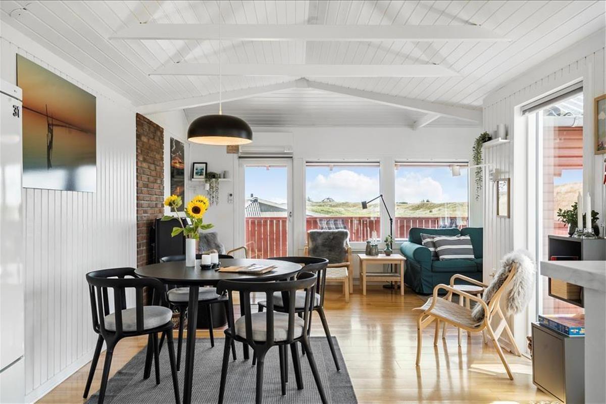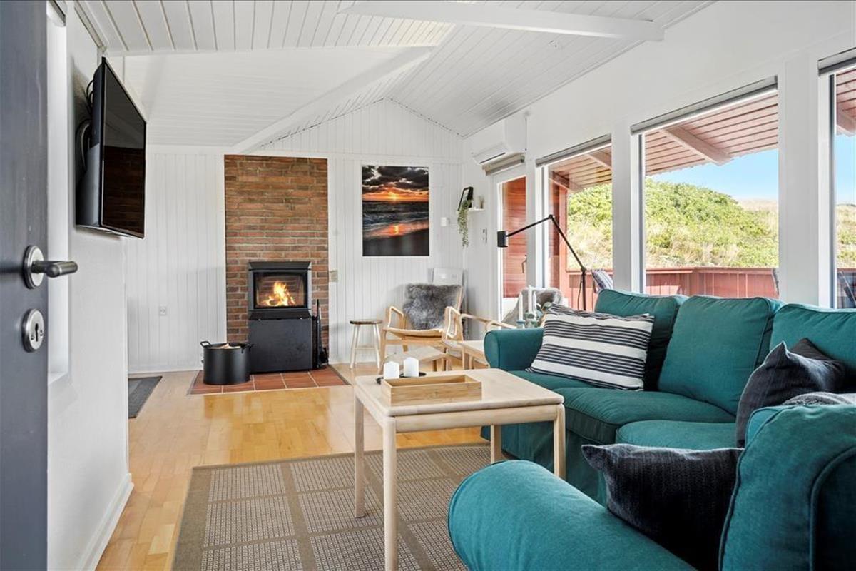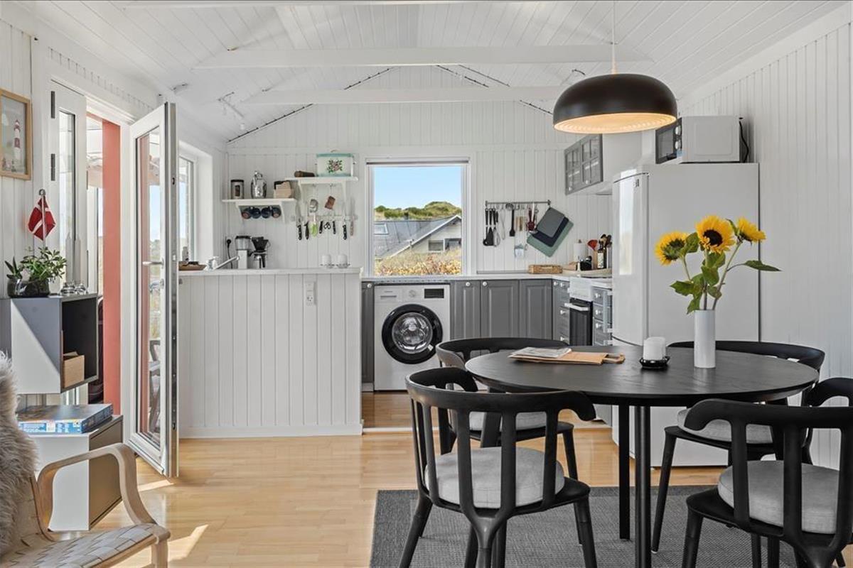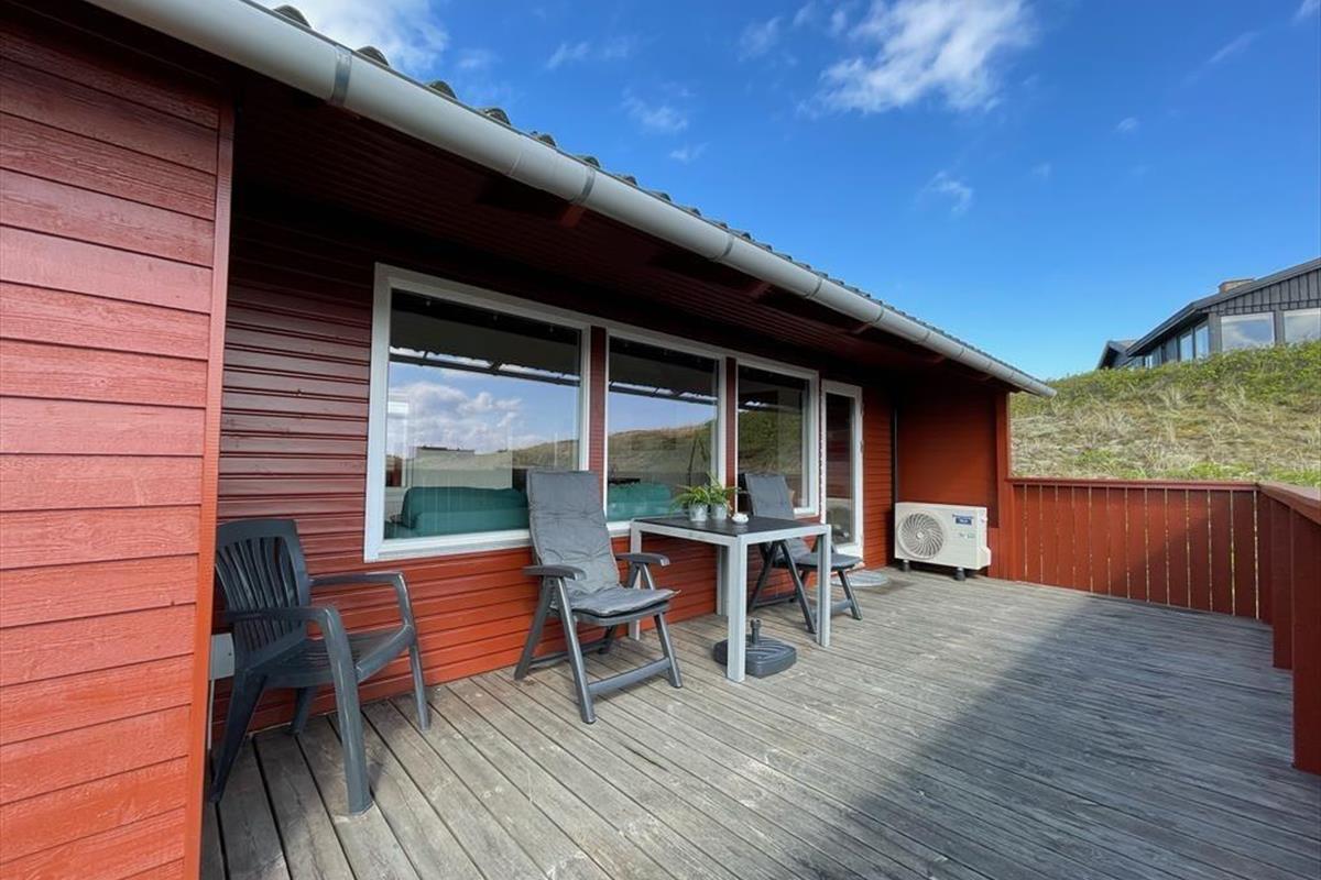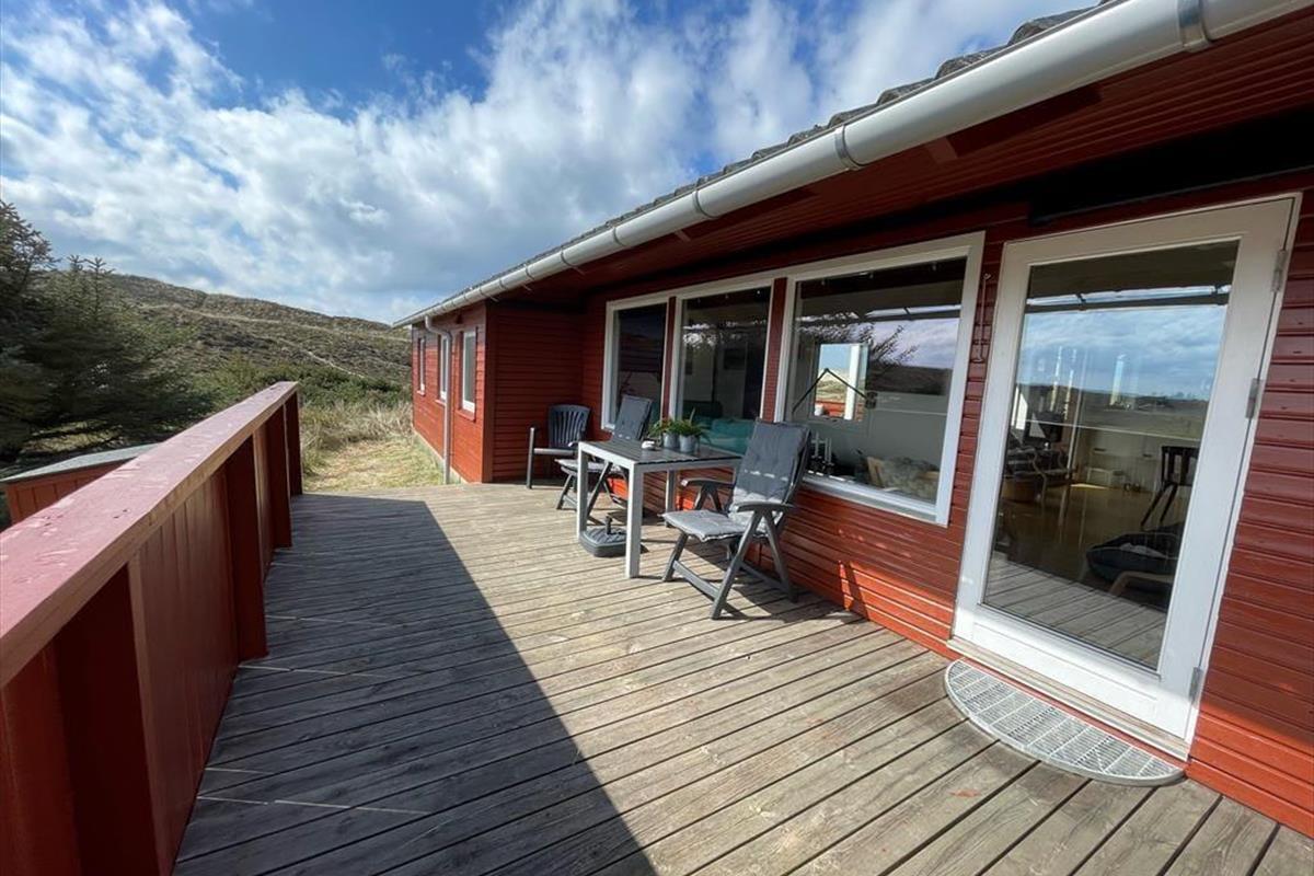 Sie wohnen mittig zwischen Nordsee und Ringkøbing Fjord. Nach rund 500 Metern erreichen Sie den Nordseestrand und das idyllische Fjordufer. Zahllose kleine Pfade führen Sie zu Fuß durch die spektakuläre, unberührte Dünenlandschaft. Ein guter Fahrradweg schlängelt sich durch die Landschaft und lädt zu schönen Touren auf zwei Rädern ein. Ihre Einkäufe erledigen Sie im fünf Kilometer entfernten Lebensmittelgeschäft in Bjerregård. Die Lokalitäten und Geschäfte des beliebten Fischereihafenortes erreichen Sie innerhalb von einer Viertelstunde.