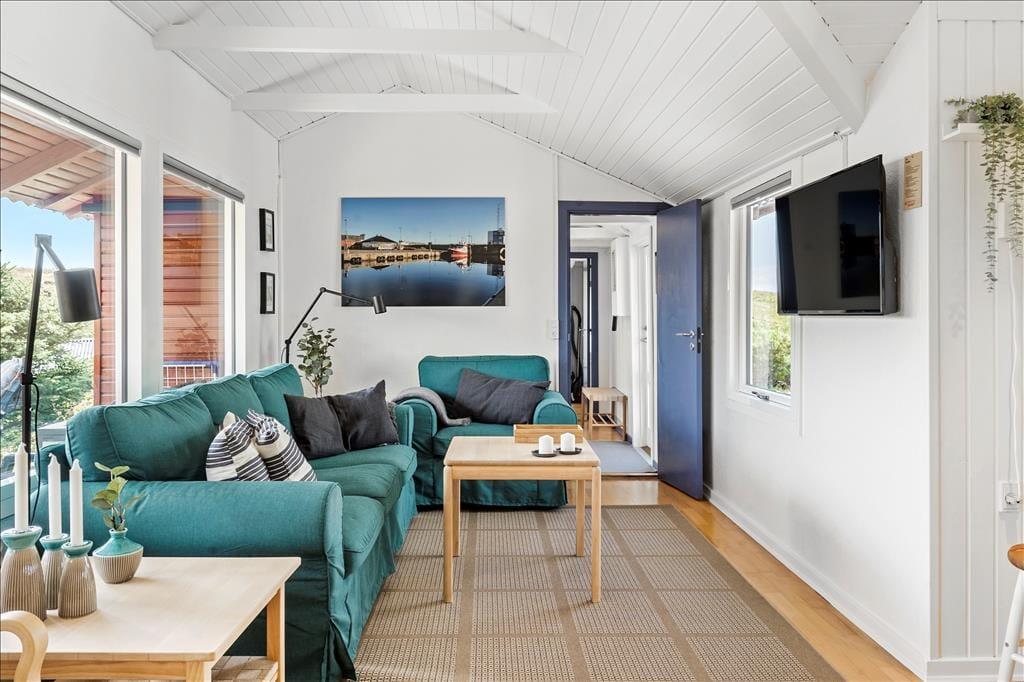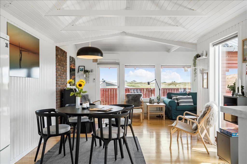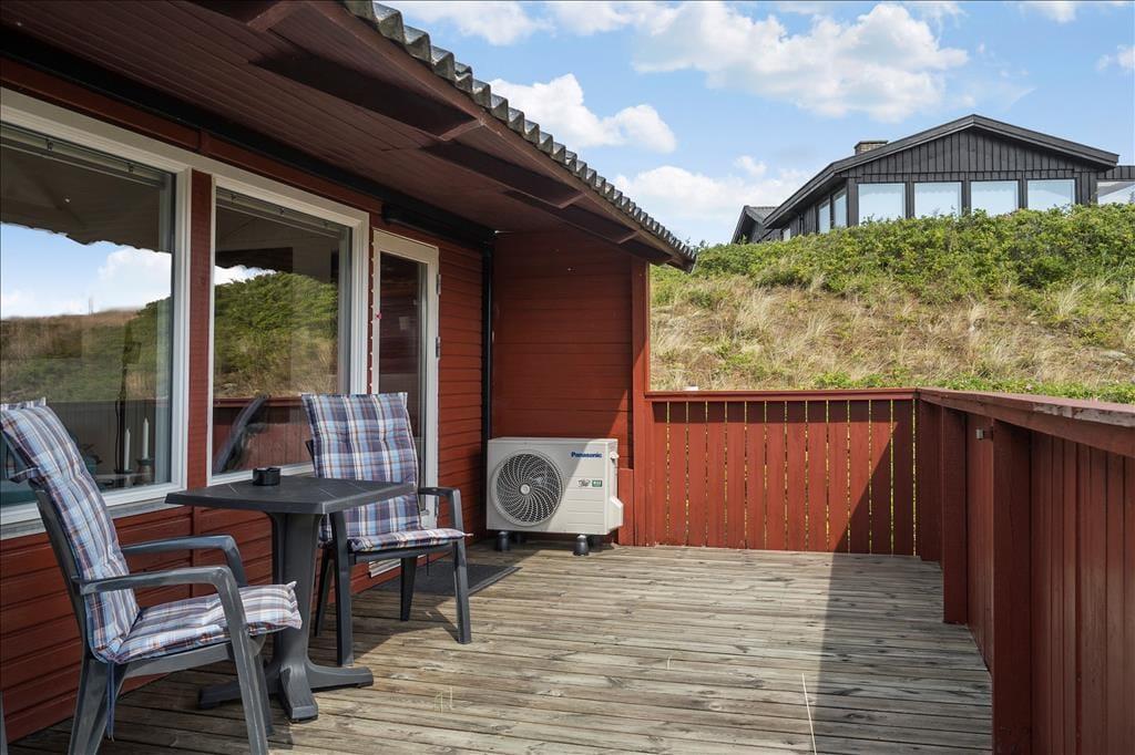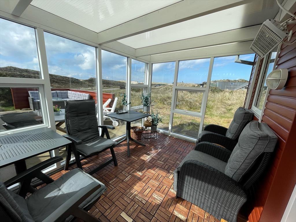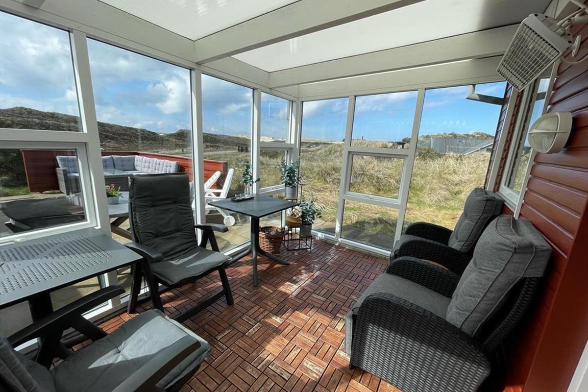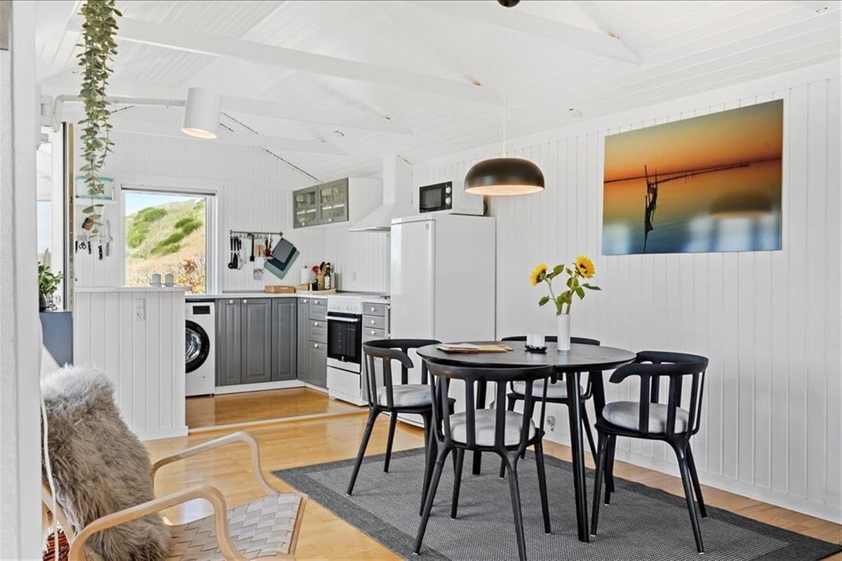 Sie wohnen mittig zwischen Nordsee und Ringkøbing Fjord. Nach rund 500 Metern erreichen Sie den Nordseestrand und das idyllische Fjordufer. Zahllose kleine Pfade führen Sie zu Fuß durch die spektakuläre, unberührte Dünenlandschaft. Ein guter Fahrradweg schlängelt sich durch die Landschaft und lädt zu schönen Touren auf zwei Rädern ein. Ihre Einkäufe erledigen Sie im fünf Kilometer entfernten Lebensmittelgeschäft in Bjerregård. Die Lokalitäten und Geschäfte des beliebten Fischereihafenortes erreichen Sie innerhalb von einer Viertelstunde.