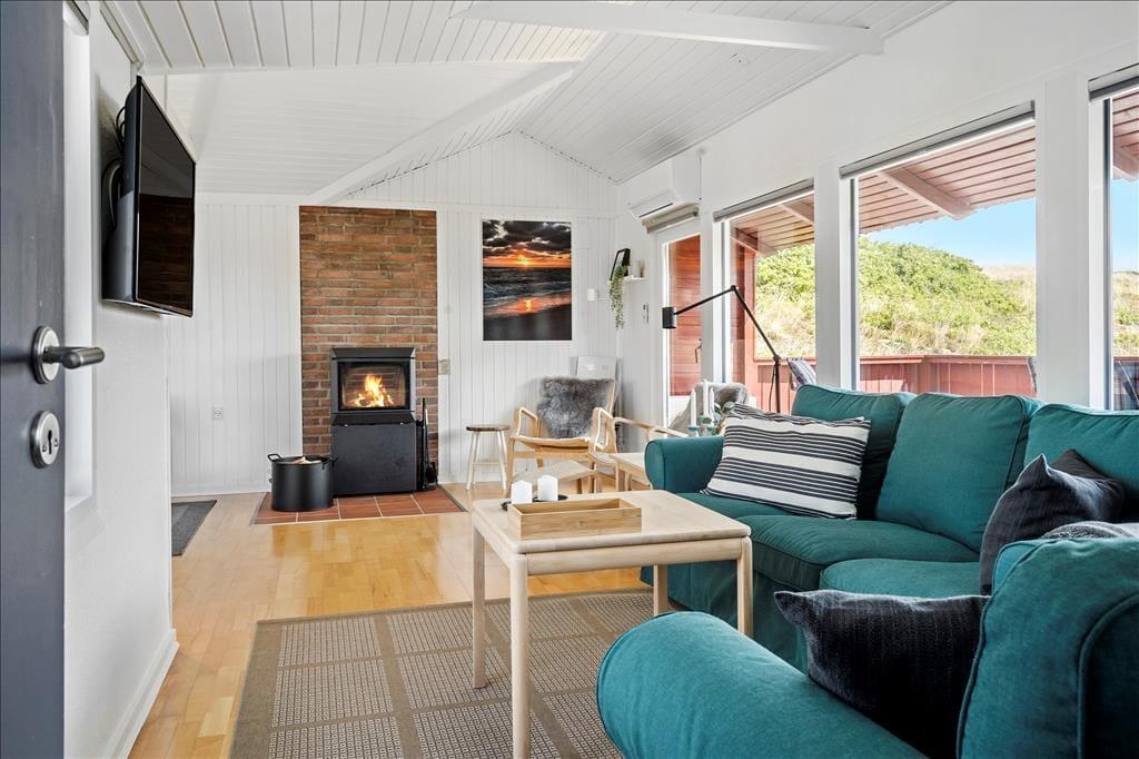 Dieses klassische Ferienhaus bietet einen gemütlichen Rahmen für erholsame Urlaubstage, die im Zeichen der Natur Westjütlands stehen. Das Urlaubsdomizil grenzt an Skodbjerges wunderschöne, unberührte Dünenheide, die zu langen Spaziergängen und Radtouren einlädt. Dank einer Entfernung von lediglich 500 Metern zur Nordsee, können Sie warme Sommertage für erfrischende Bäder in den wogenden Wellen nutzen.