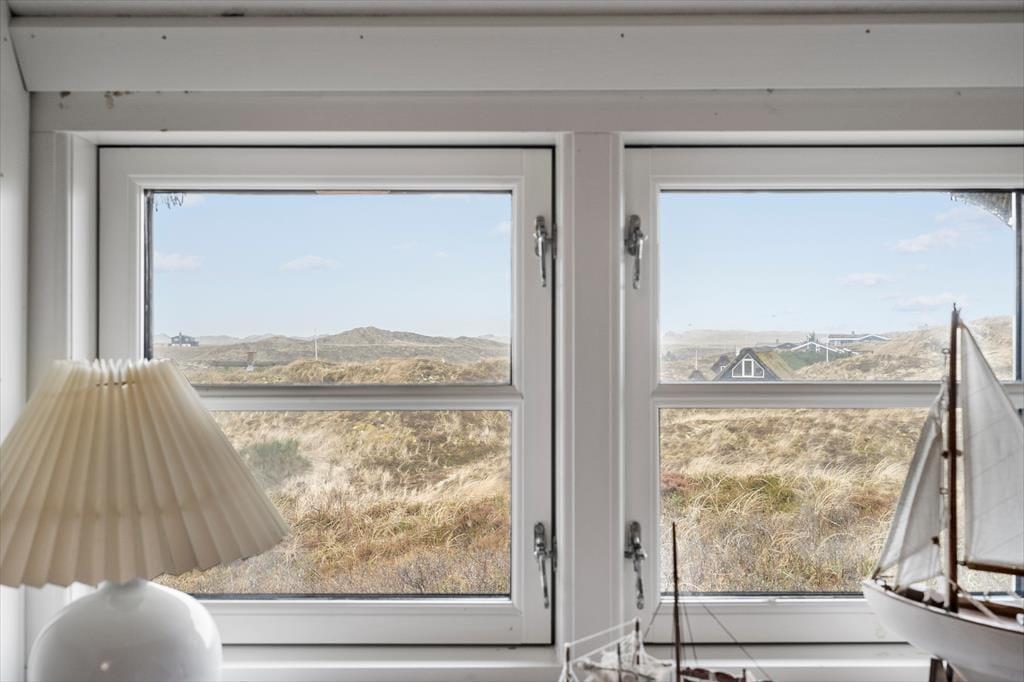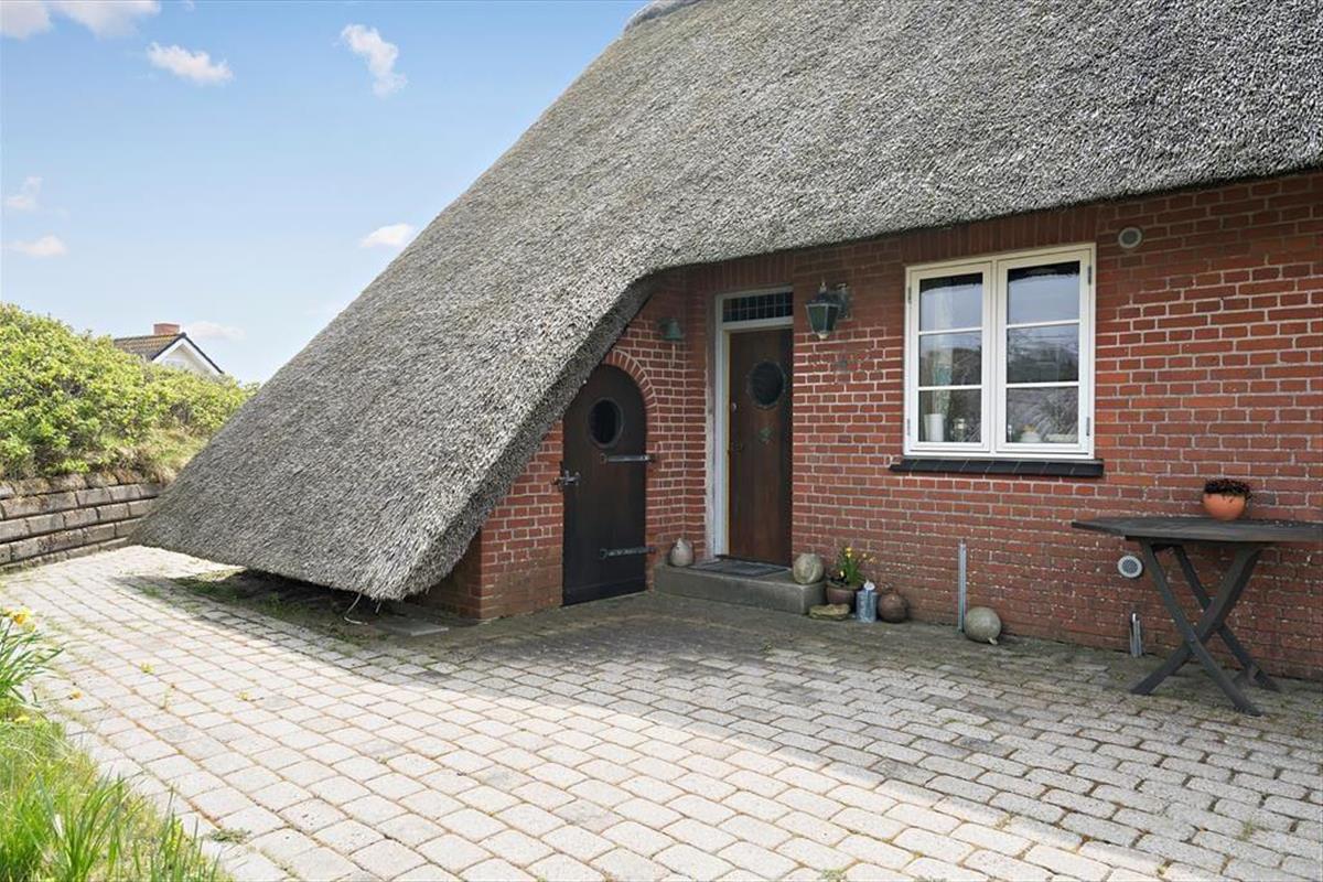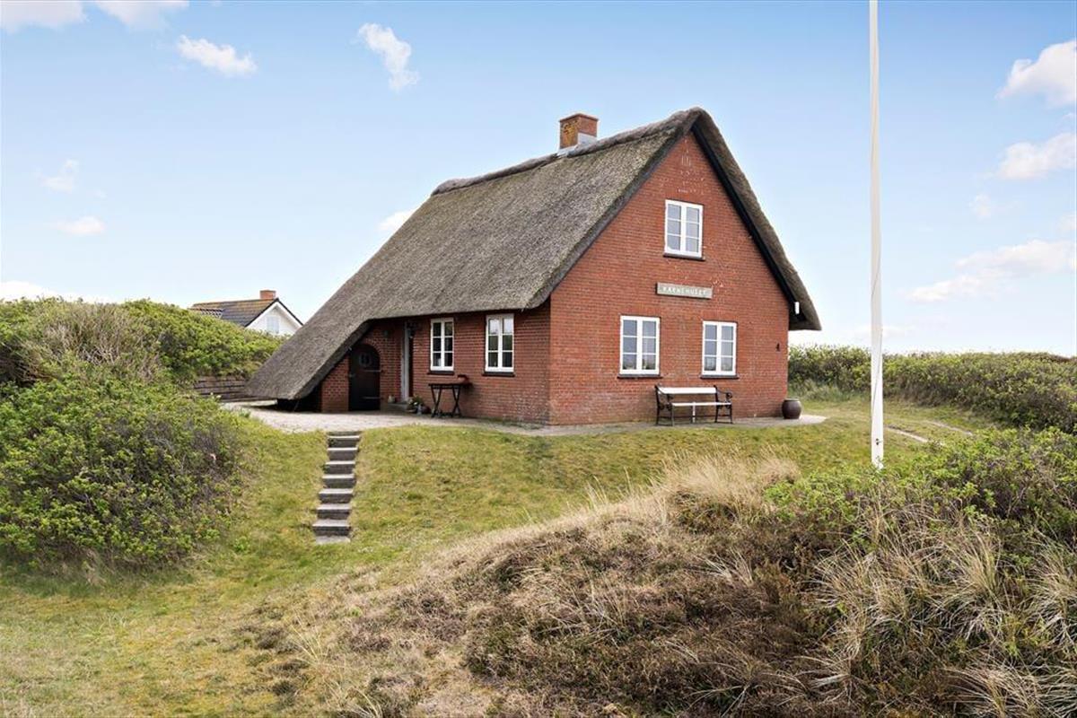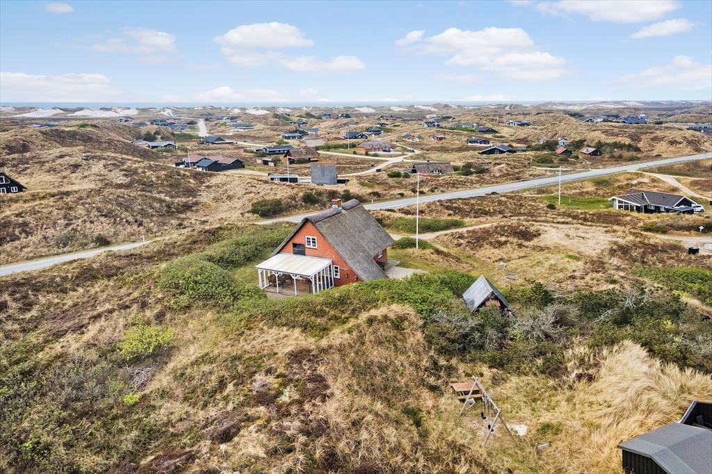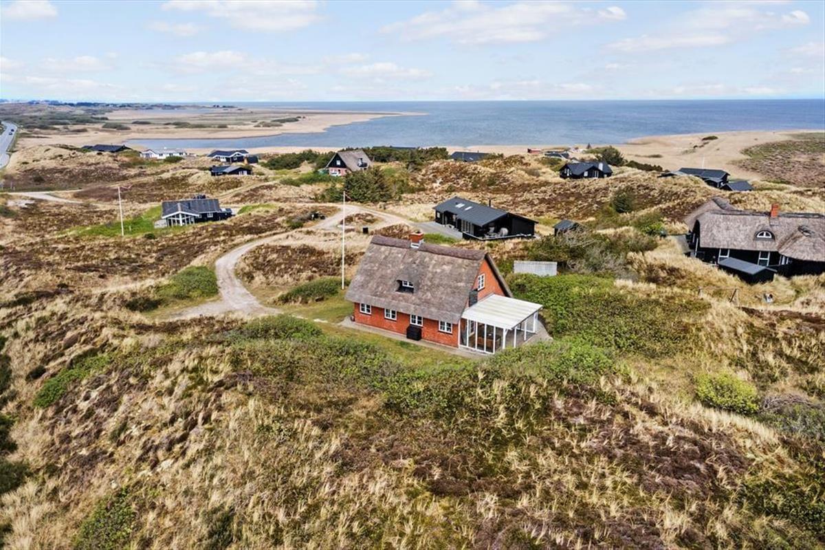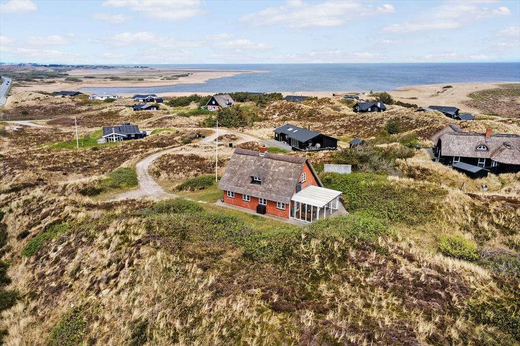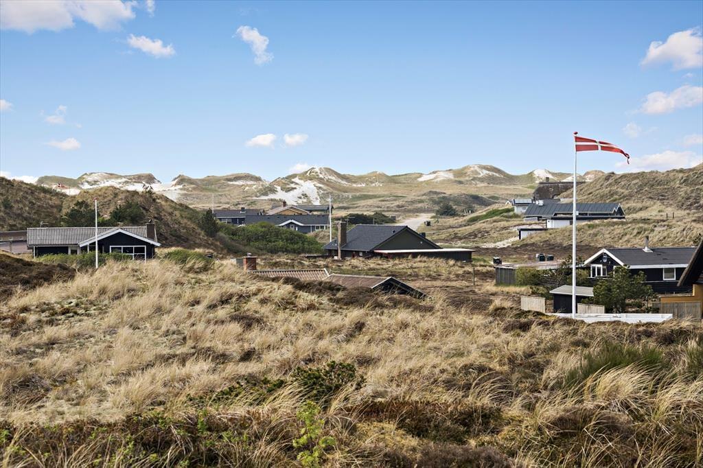 Sie wohnen auf der höchsten Düne Hareklits und erfreuen sich an einer einzigartigen, schier endlosen Aussicht. Nach Osten blicken Sie über das blaue Wasser des Fjords bis hin zu den bewaldeten Hügeln an der anderen Uferseite, wo die weiße Kirche von Lønborg einen leuchtenden Fixpunkt bildet. Westlich erstreckt sich die Dünenheide Skodbjerges bis zu den Dünen, hinter denen der Strand und die Nordsee warten. Die Umgebung lädt zu langen Spaziergängen ein. Ein wunderbarer Fahrradweg führt Sie durch die Dünenlandschaft. Beim rund fünf Minuten entfernten Kaufmann in Bjerregård können Sie sich mit Lebensmitteln und frischen Brötchen versorgen. Der interessante Fischereihafenort Hvide Sande ist nach rund zehn Minuten erreicht. Der beliebte Ort besticht mit diversen schönen Geschäften, guten Restaurants, Fischräuchereien, einem interessanten Hafenbereich und besten Angel- und Wassersportmöglichkeiten.