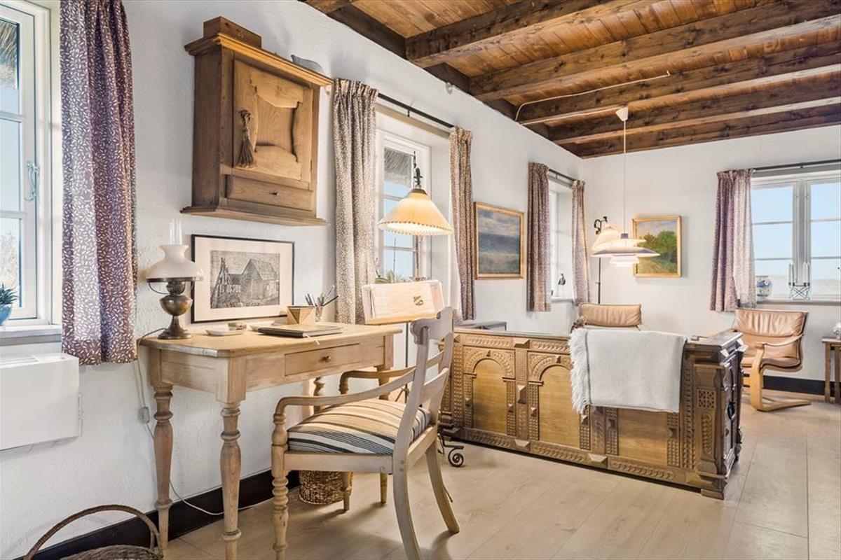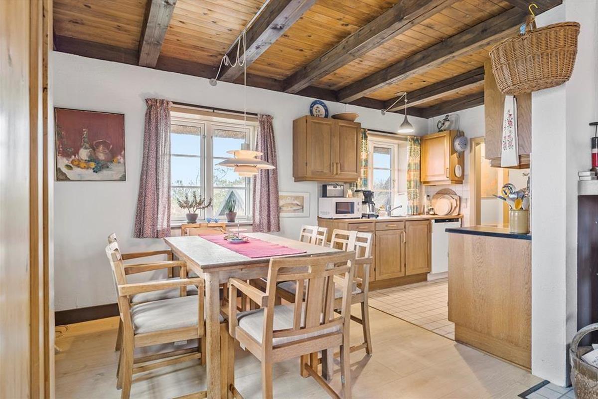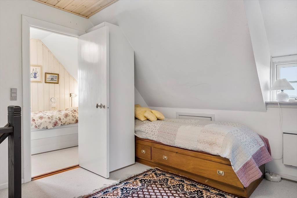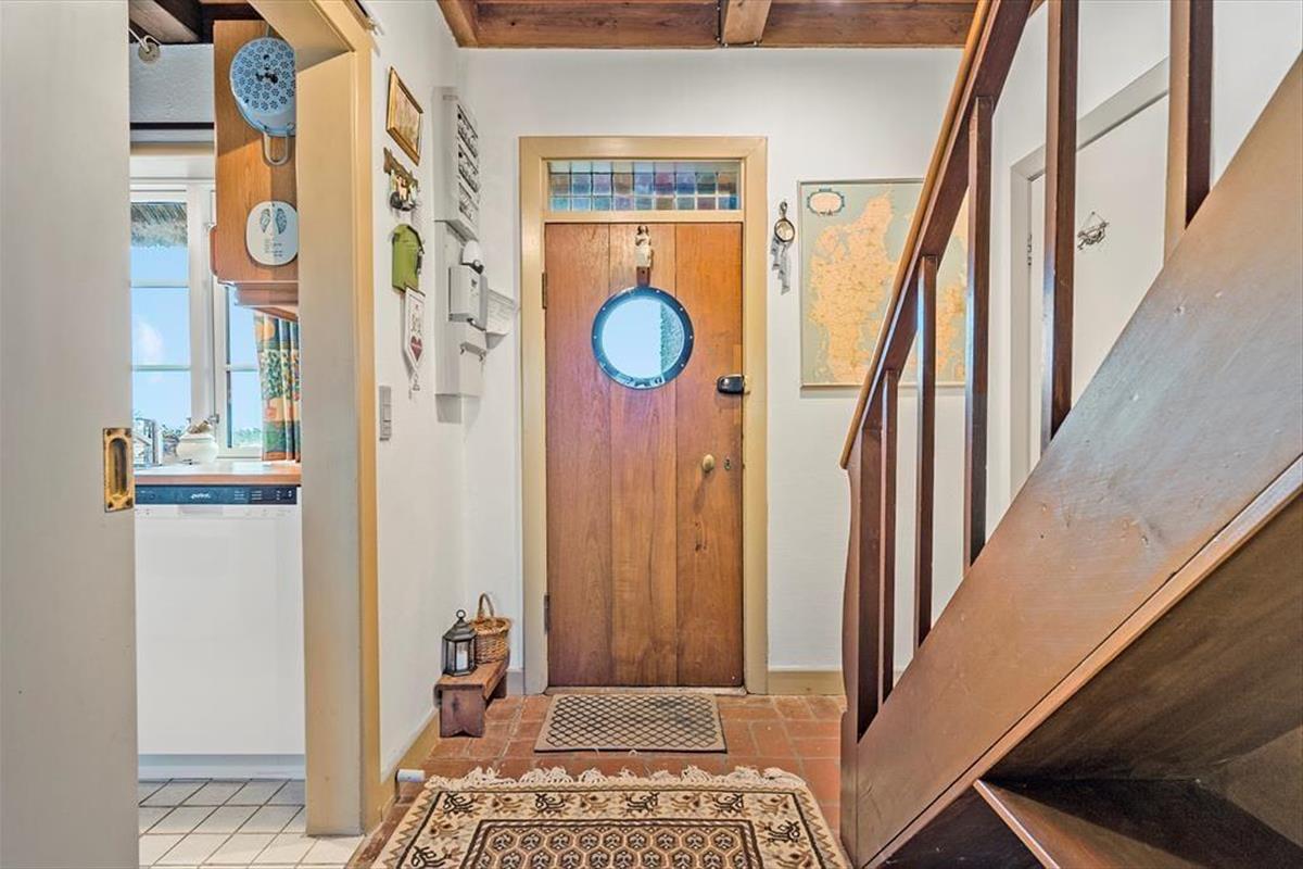 Dieses Ferienhaus ist der Inbegriff von Stimmung und Atmosphäre. Die Einrichtung zeugt von der maritimen Geschichte dieser Region und deren Verbindung zu Meer und Fjord. Die Außen- und Innentüren sowie weitere Teile des Innenraums stammen von der Fregatte Galathea, die 1950 von Kopenhagen aus zu einer Forschungsexpedition aufbrach, die unter anderem das Leben in den Tiefen der Ozeane kartieren sollte. Im Jahr 2018 wurde das Mietobjekt einer behutsamen Renovierung unterzogen. Hierbei wurde großer Wert darauf gelegt, die ursprüngliche Wohnatmosphäre zu bewahren. Das Erdgeschoss beinhaltet ein Badezimmer mit Duschnische, einen Eingangsbereich und einen großen, offenen Aufenthaltsbereich mit einer wunderschönen Holzdecke, einem Kaminofen und Aussicht auf den Fjord und die Dünen. Im Wohnraum stehen Ihnen ein Esstisch, ein Sofa beim Fernseher und eine zusätzliche Polstergarnitur beim Kaminofen zur Verfügung. Die Polstergarnitur setzt sich aus Lehnstühlen und einem Sofa zusammen. Die gut ausgestattete Küche umfasst einen Geschirrspüler. Im Obergeschoss begrüßen Sie zwei gute Schlafzimmer mit Schlafplätzen für insgesamt vier Personen. Das Obergeschoss glänzt mit einer exquisiten Aussicht.