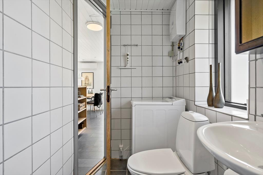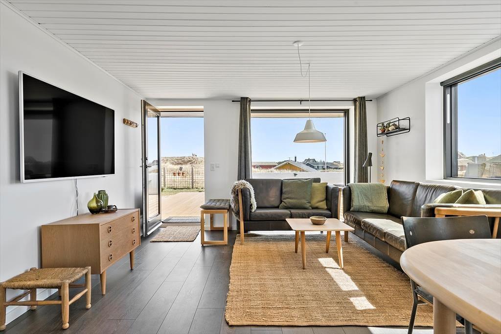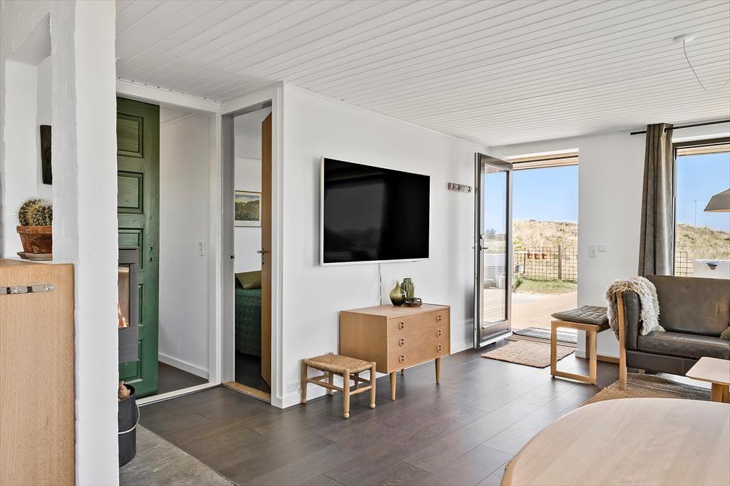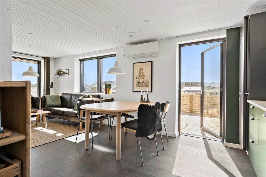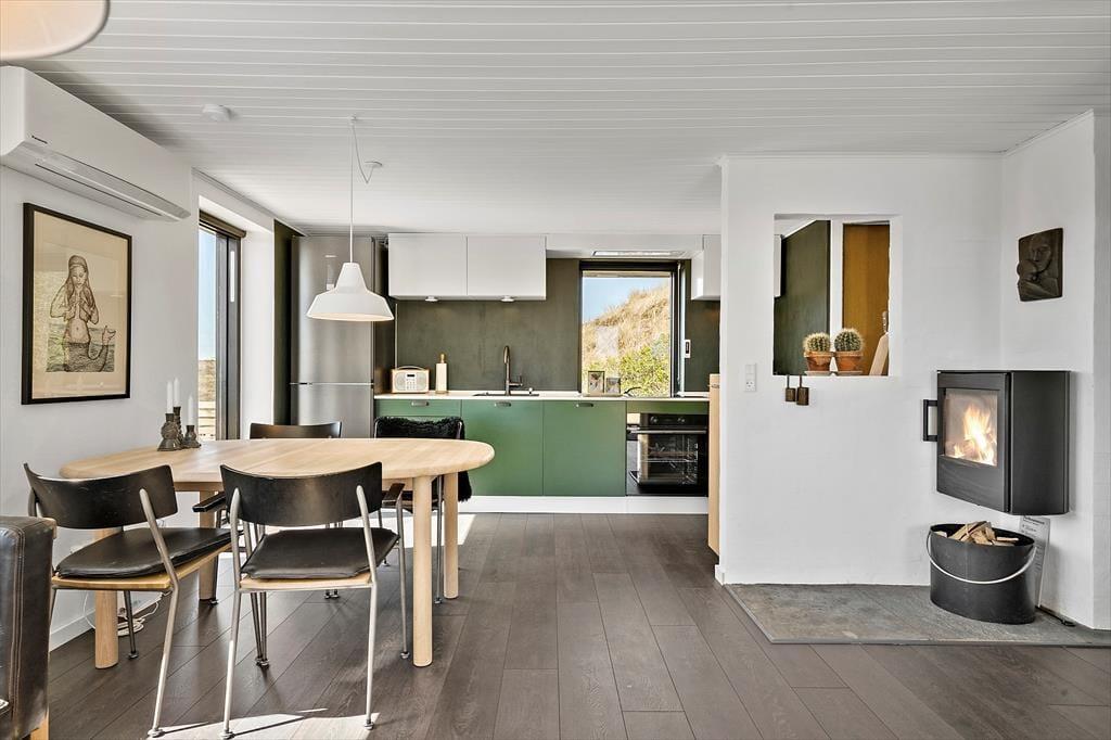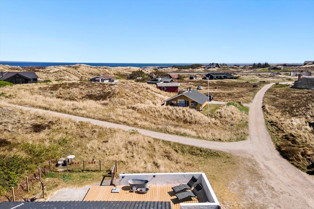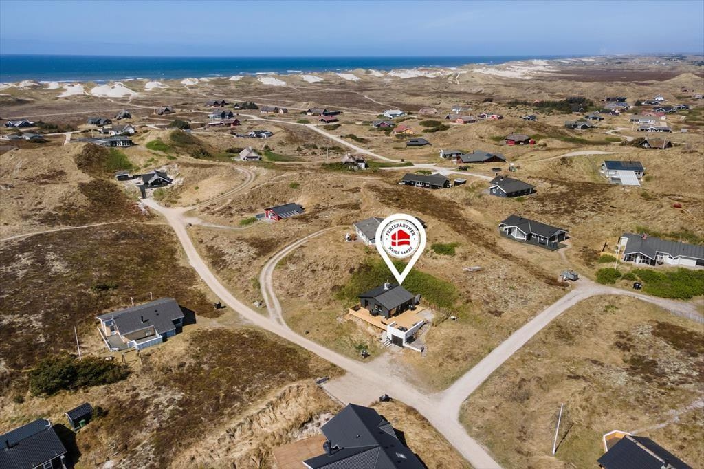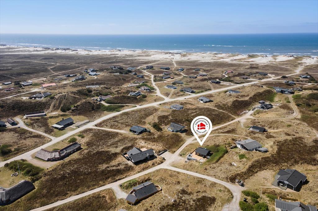 Das Ferienhaus ruht in einer kleinen Sackgasse, in einem beschaulichen Ferienhausgebiet, das von Skodbjerges reizvoller Natur umgeben ist. Nach fünf Minuten erreichen Sie zu Fuß die Nordsee, die in den Sommermonaten zum Baden und in den kühleren Jahreszeiten zu erholsamen Strandspaziergängen einlädt. In entgegengesetzter Richtung erwartet Sie der Ringkøbing Fjord, an dessen Ufer der idyllische Vinterleje Havn stets ein schönes Ziel darstellt. Ein Fahrradweg führt von Nymindegåb im Süden bis nach Søndervig im Norden durch die Dünenlandschaft, sodass Sie die beeindruckende Natur ringsum sehr gut auf zwei Rädern erkunden können. In Bjerregård, rund fünf Kilometer entfernt, erwartet Sie ein kleinerer Laden mit Lebensmitteln und frischen Brötchen. Alternativ fahren Sie per Pkw in den rund zehn Minuten entfernten, nicht nur bei Anglern sehr beliebten Fischereihafenort Hvide Sande, in dem Sie auf eine gute Auswahl an Lebensmittel- und Einzelhandelsgeschäften sowie schönen Cafés und Restaurants treffen. Holmsland Klit bietet mit mehreren Surfplätzen beste Bedingungen für Wind- und Kitesurfer.