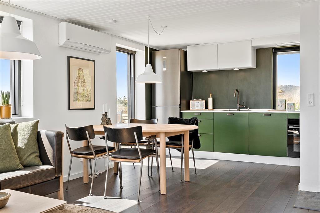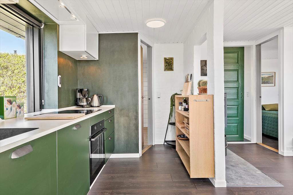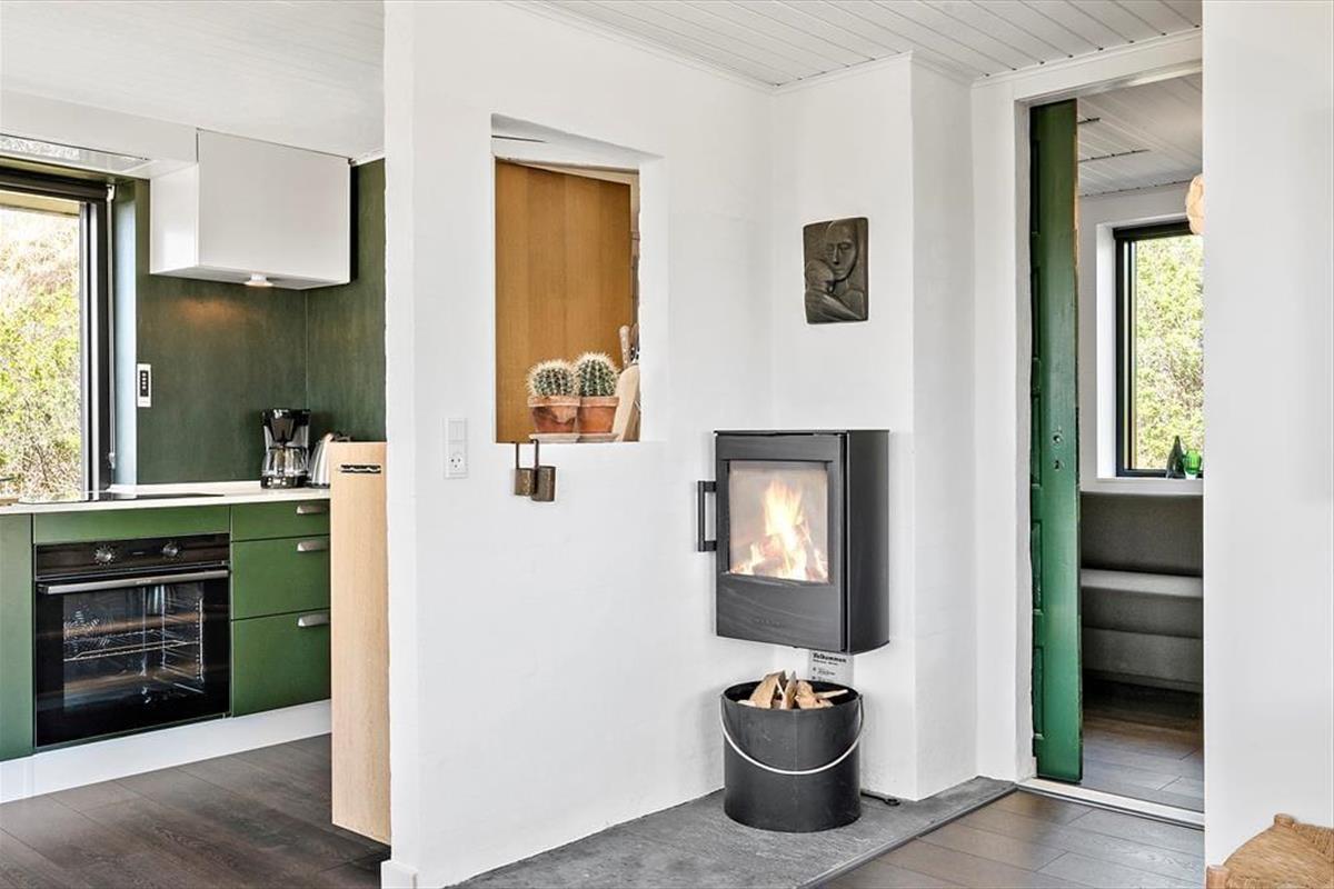 Das Ferienhaus ist stilvoll eingerichtet. Die durchgehend stimmige Farbwahl und der schöne Tageslichteinfall verleihen dem Mietobjekt eine helle und freundliche Atmosphäre. Für behagliche Temperaturen sorgen ein Kaminofen und eine Wärmepumpe. Die tolle Küche ist gut ausgestattet. Den ungeliebten Abwasch übernimmt der Geschirrspüler. Küche und Wohnraum bilden eine offene, harmonische Einheit. Der Wohnraum beinhaltet einen Esstisch und eine Polstersitzgarnitur. Ein Fernseher und WiFi stehen zu Ihrer Verfügung. Das Badezimmer begrüßt Sie mit einer Duschnische, einer Waschmaschine und einer Fußbodenheizung. Die drei vorhandenen Schlafplätze verteilen sich auf zwei Schlafräume - ideal für eine kleine Familie oder ein alleinreisendes Paar.