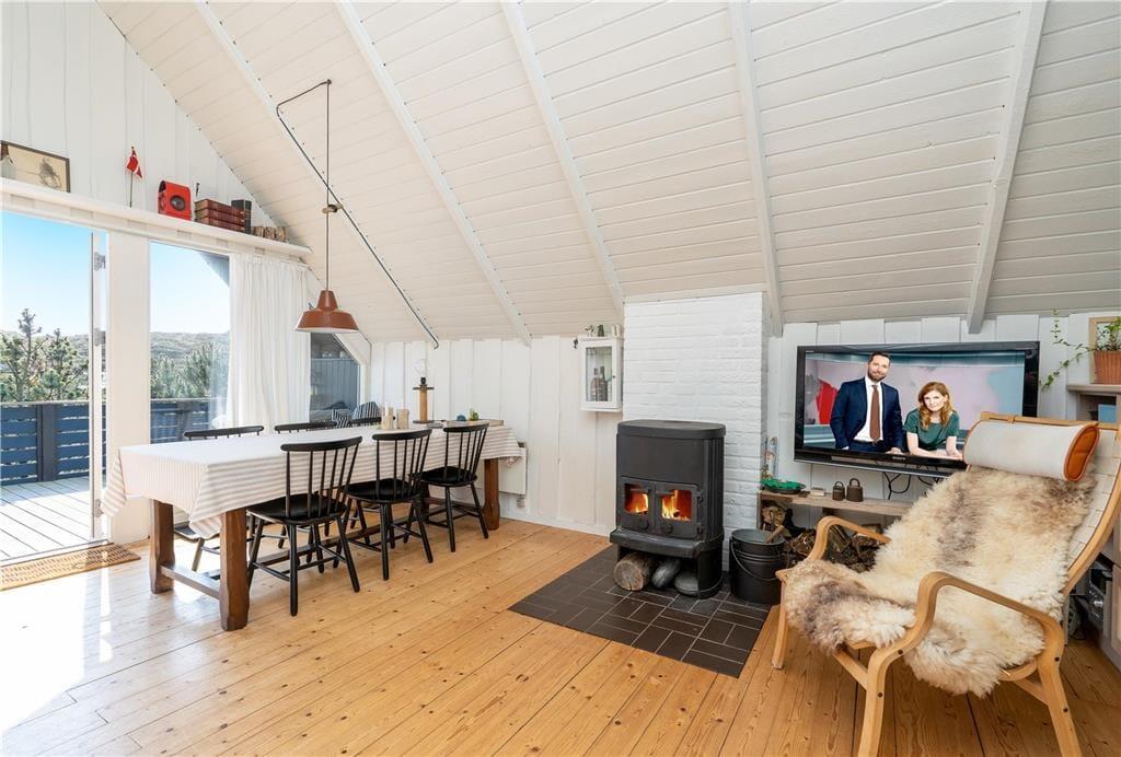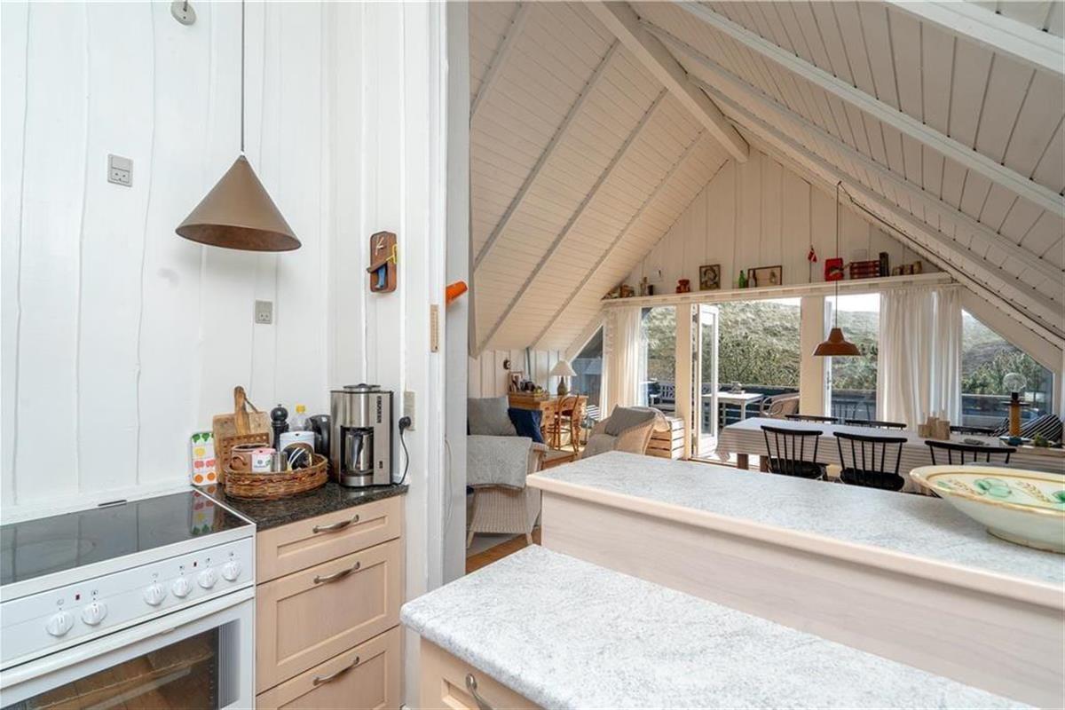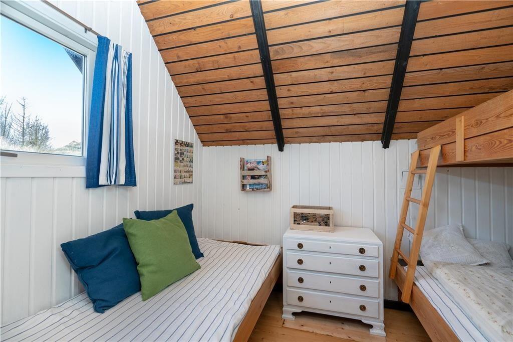 Dieses Ferienhaus ist der Inbegriff von klassischem Ferienhauscharme! Ihre Urlaubstage werden weder von summenden Smartphones noch von Tablets unterbrochen, da das Haus über keine Internetverbindung verfügt. Der Fernseher empfängt ausschließlich die beiden großen dänischen Sender. Somit genießen Sie viel Zeit, um am Abend im Kreise Ihrer Lieben Brettspiele am Esstisch zu spielen oder ein gutes Buch auf dem Sofa zu lesen. Für eine behagliche Atmosphäre sorgt derweil der Kaminofen. Trotz all des klassischen Charmes erwartet Sie im Haus eine moderne, gut ausgestattete Küche. Das gute Badezimmer beinhaltet eine Duschnische. Die drei gemütlichen Schlafräume umfassen insgesamt vier Schlafplätze für Erwachsene und zwei Schlafplätze für Kinder.