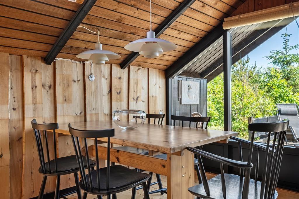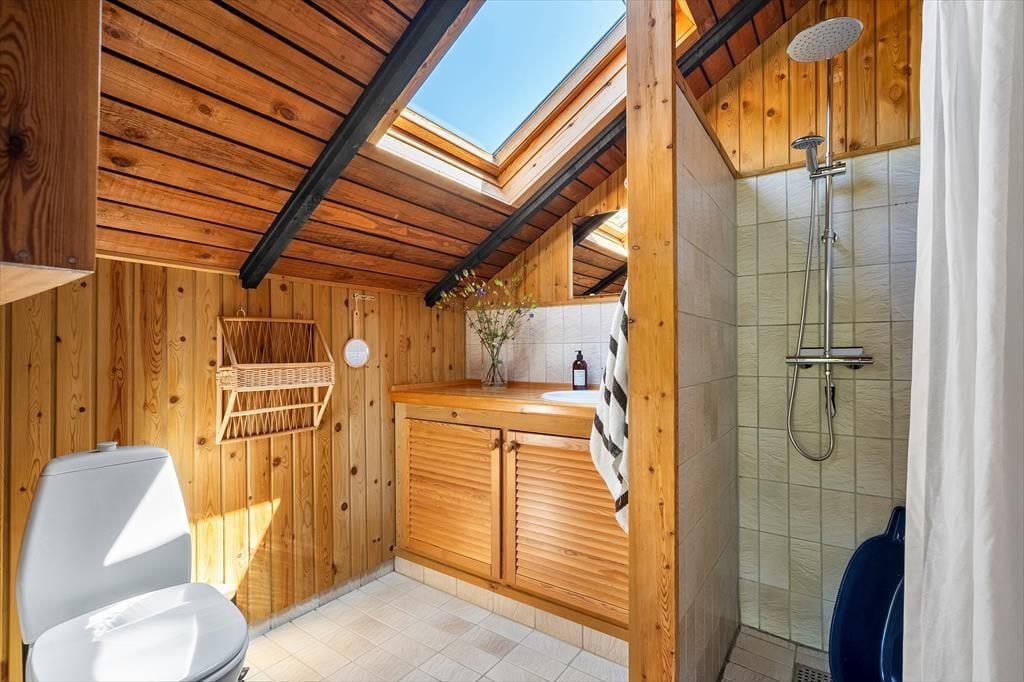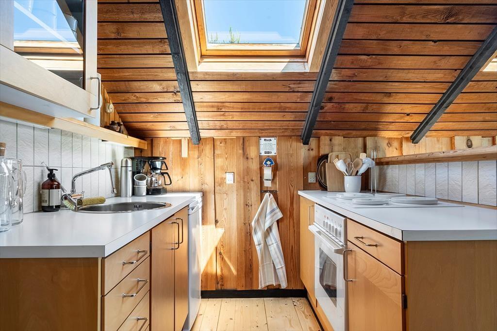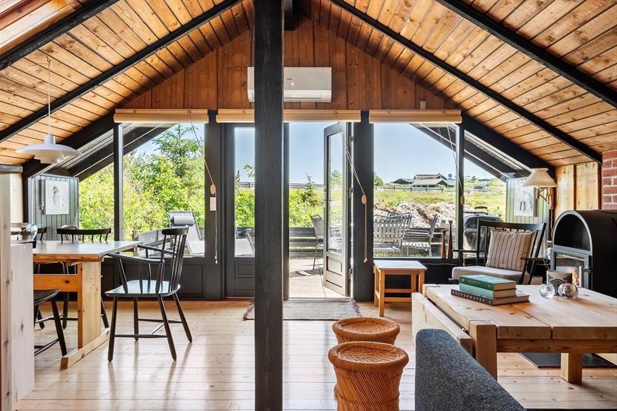 Du spürst sofort, dass hier über Details nachgedacht ist, denn das Haus wurde mit Hinblick auf seinen schlichten Ausdruck und die originalen Besonderheiten aktualisiert. Das rohe, warme Holz, die klaren Linien und großen Fenster lassen die umliegende Natur hereinströmen. Freu dich auch auf den hellen Aufenthaltsraum mit hohen Decken und Holzofen, wo viele gemütliche Augenblicke in der offenen Küche mit Essbereich und angrenzendem Wohnzimmer eine Garantie seien werden. Die Schlafzimmer sind mit bequemen Betten eingerichtet und das kleine Einzelzimmer hat einen direkten Zugang zu der ungestörten Westterrasse.Ja, es ist ohne Zweifel ein Ort, der zu slow living, Gemütlichkeit und Spielabenden vor dem Kamin einlädt.