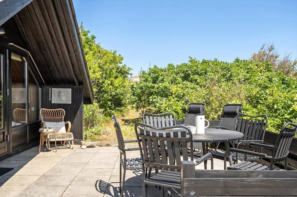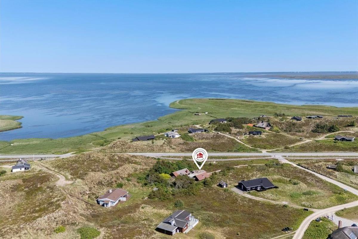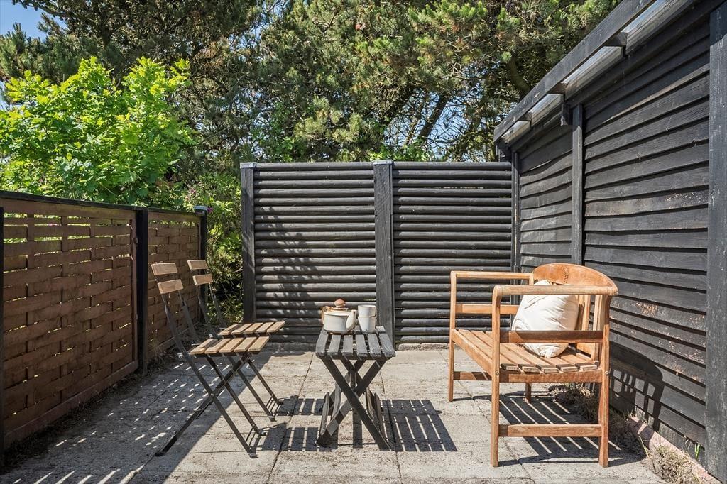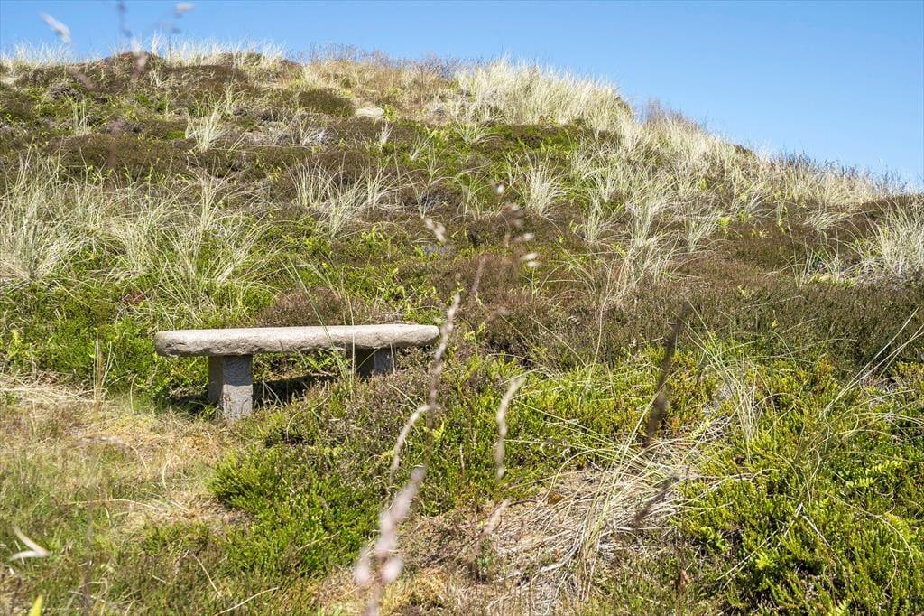 Von der nach Osten ausgerichteten Terrasse des Hauses führt ein Weg zur Anhöhe des Grundstücks mit einer kleinen Granitbank. Ein herrlicher Platz, um morgens die Sonne über dem Ringkøbing Fjord und Tipperne aufgehen zu sehen. Hier spürst du wirklich die echte, ursprüngliche Natur und die offenen Weiten. Das Haus hat vier Terrassen, eine Sektion davon ist überdacht, sodass du immer ein sonniges und windgeschütztes Plätzchen findest. Zum Haus gehört ein Schuppen, in dem Fahrräder und andere Ausrüstung verschlossen verwahrt werden können und: die, ebenfalls in einem verschließbaren Raum liegende, gasbeheizten Außendusche, ermöglicht dir praktisch das Abgewaschen von Salz und Sand.