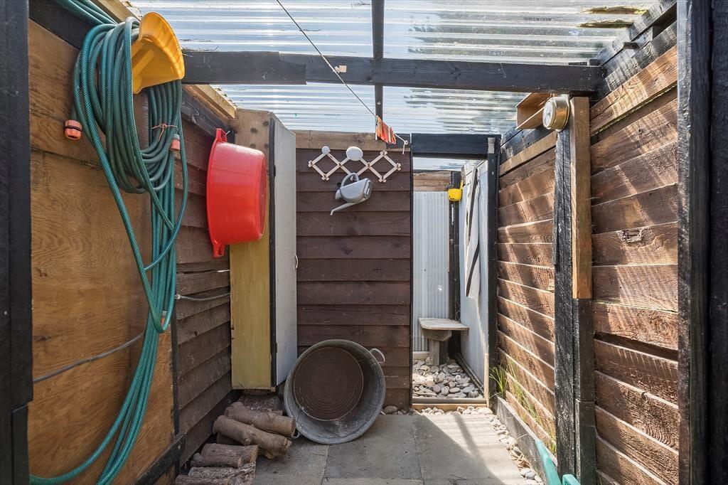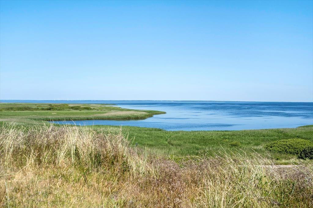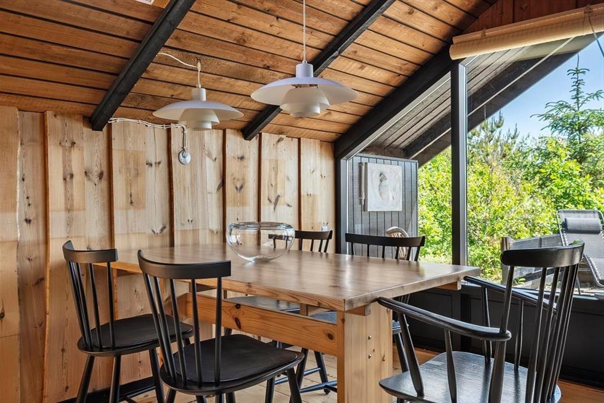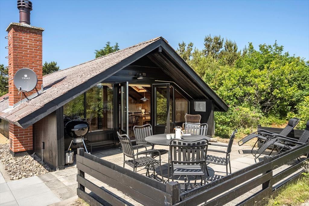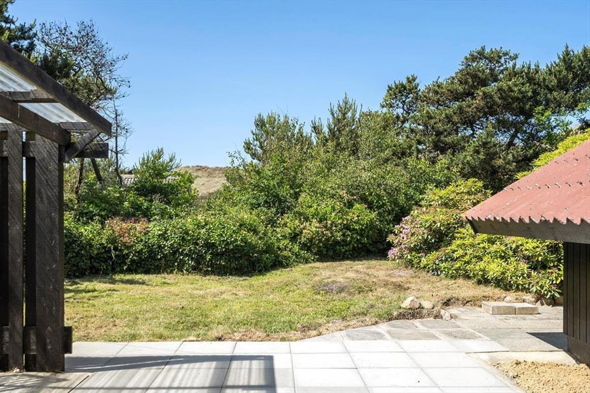 Von der nach Osten ausgerichteten Terrasse des Hauses führt ein Weg zur Anhöhe des Grundstücks mit einer kleinen Granitbank. Ein herrlicher Platz, um morgens die Sonne über dem Ringkøbing Fjord und Tipperne aufgehen zu sehen. Hier spürst du wirklich die echte, ursprüngliche Natur und die offenen Weiten. Das Haus hat vier Terrassen, eine Sektion davon ist überdacht, sodass du immer ein sonniges und windgeschütztes Plätzchen findest. Zum Haus gehört ein Schuppen, in dem Fahrräder und andere Ausrüstung verschlossen verwahrt werden können und: die, ebenfalls in einem verschließbaren Raum liegende, gasbeheizten Außendusche, ermöglicht dir praktisch das Abgewaschen von Salz und Sand.