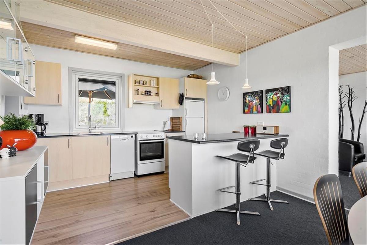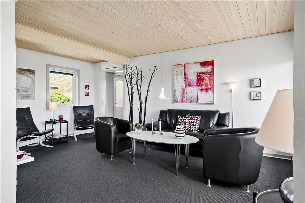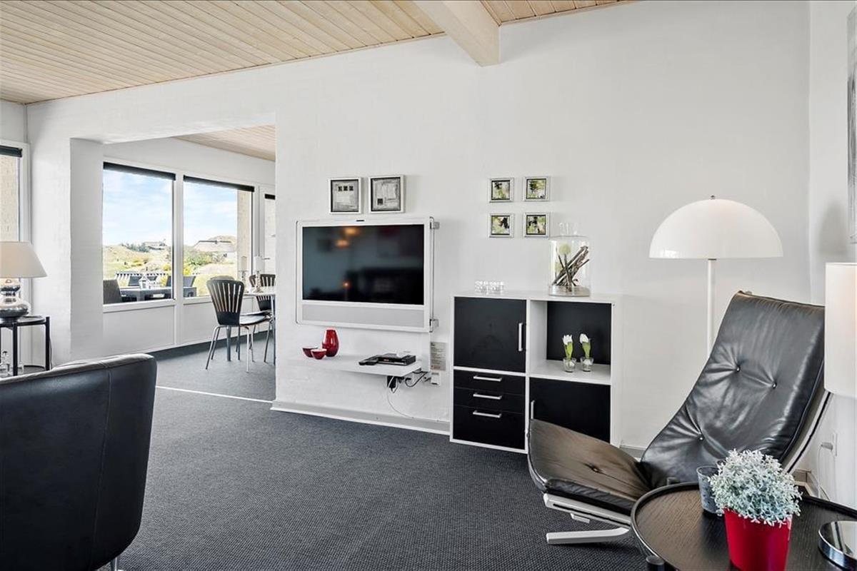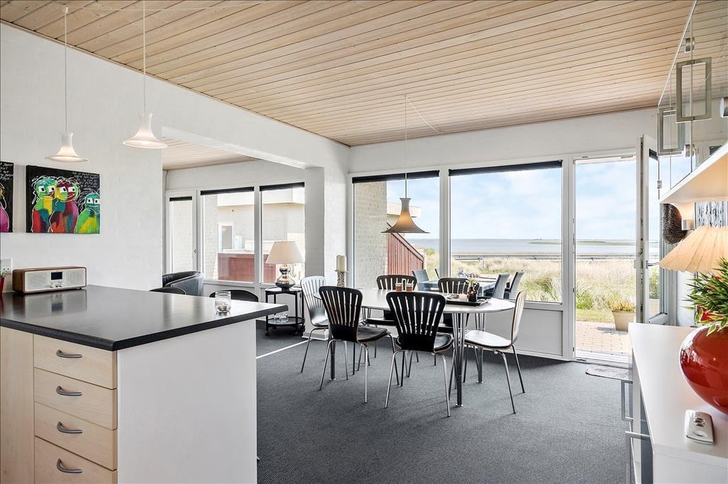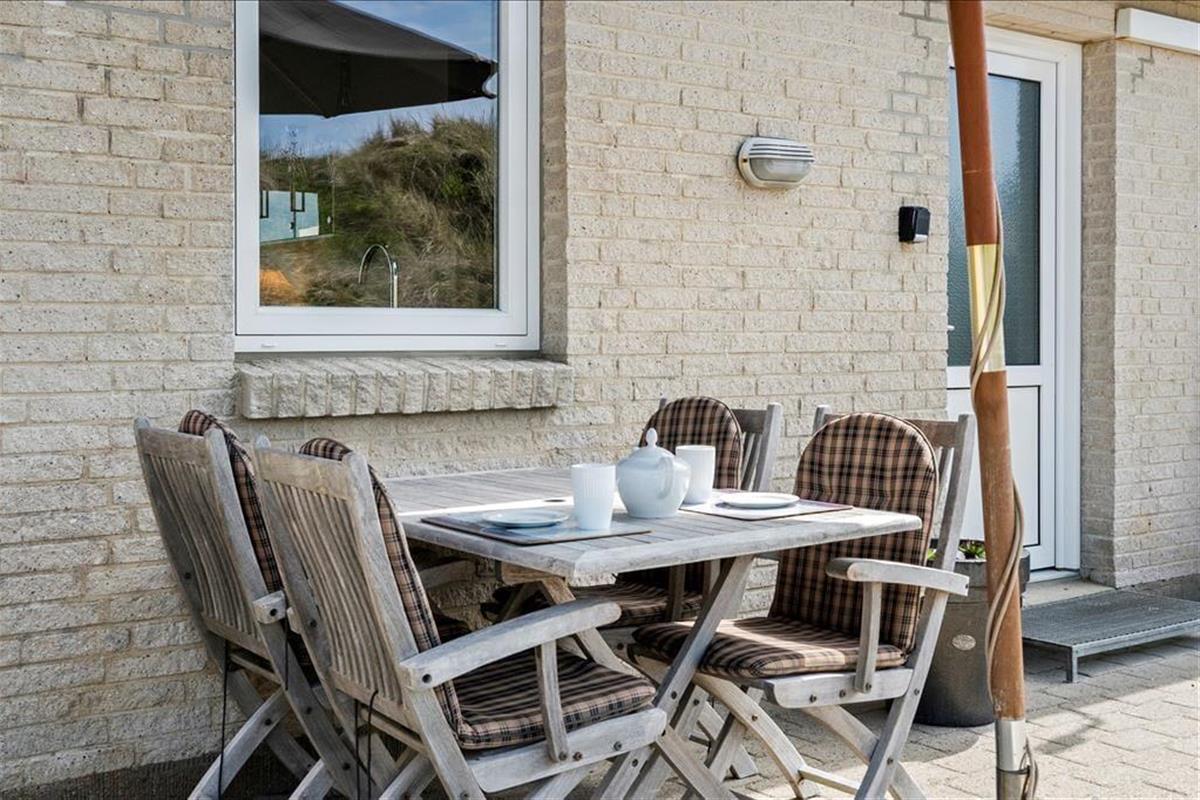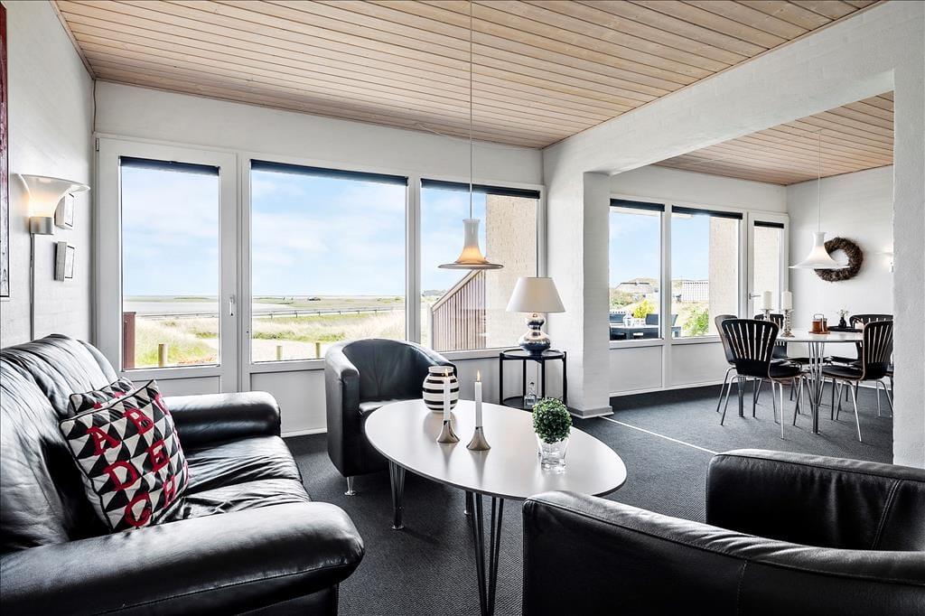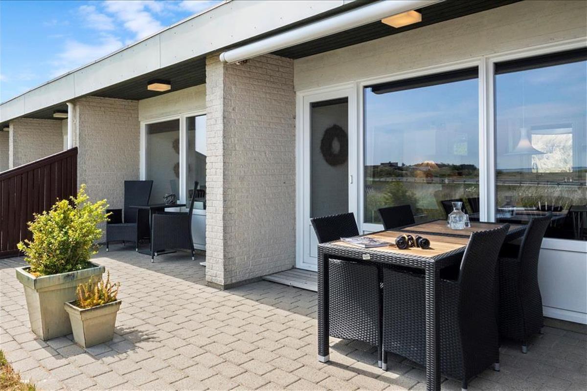 Diese große Ferienwohnung auf Holmsland Klit überzeugt mit einer modernen Einrichtung und einer sehr guten Raumaufteilung, die perfekt auf den Urlaub zweier befreundeter Paare zugeschnitten ist. An beide Seiten des Mietobjekts schließen sonnige Terrassen. Auf der gen Osten ausgerichteten Terrasse genießen Sie einen traumhaftem Panoramablick über den Ringkøbing Fjord.
