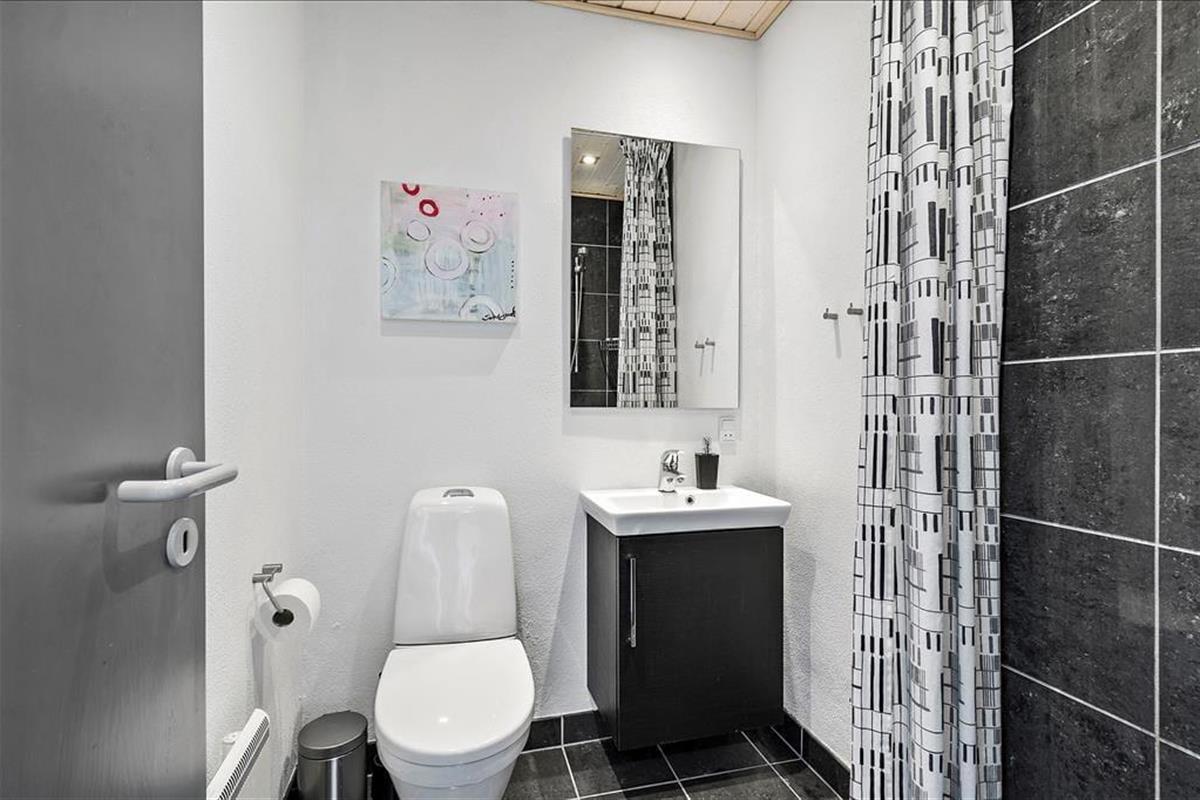 Vom Aufenthaltsbereich und von den beiden Schlafzimmern aus treten Sie direkt auf das nach Südosten weisende Terrassenareal, das mit einem beeindruckenden Fjordblick zu glänzen weiß. Die an den Seiten platzierten Holzumrandungen spenden Windschutz. An warmen Tagen sorgt eine Markise für kühlen Schatten. An die Nordwestseite der Wohnung schließt eine weitere schöne, große Terrasse mit Gartenmöbeln, einem Sonnenschirm und Abendsonne.