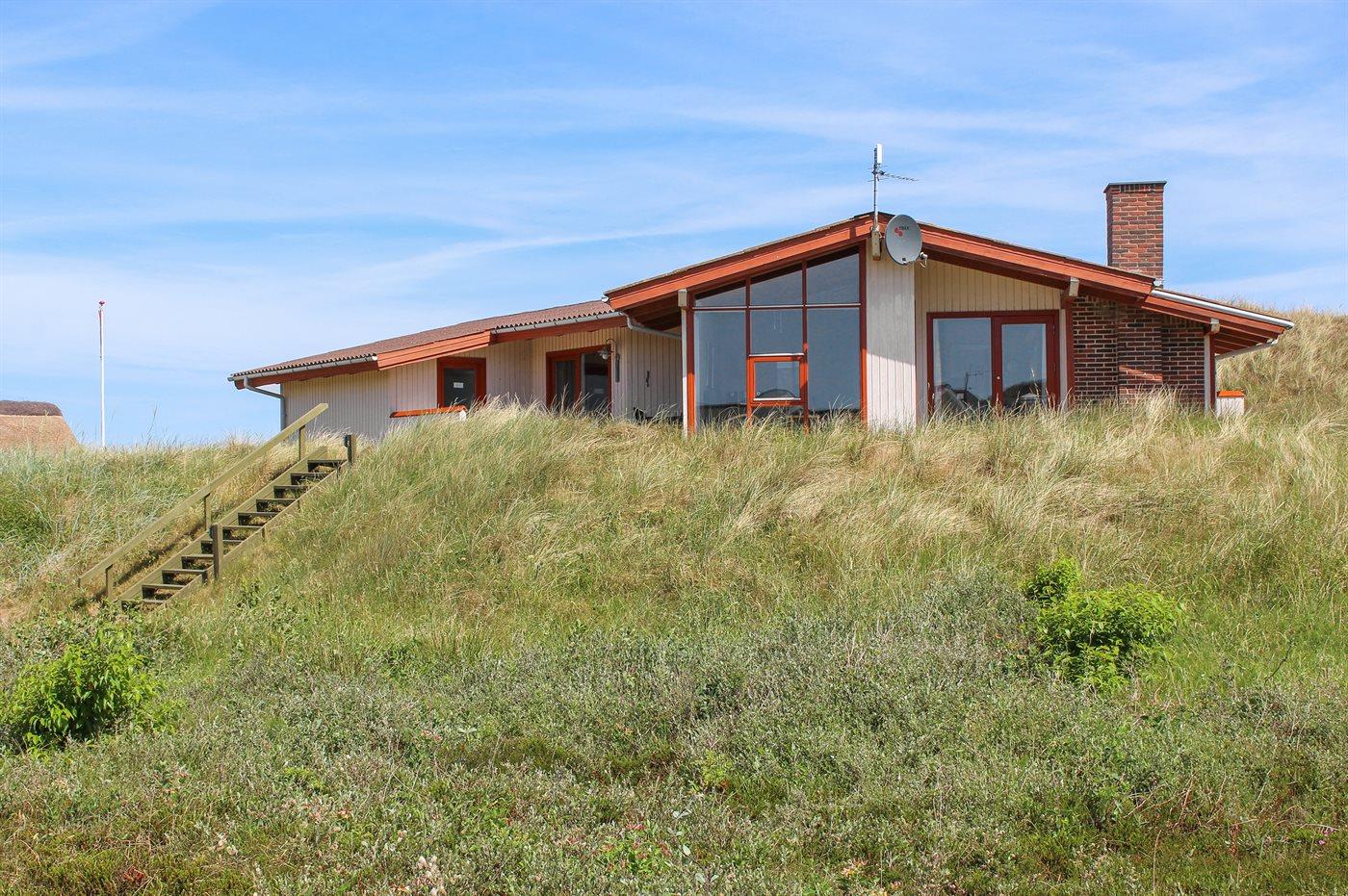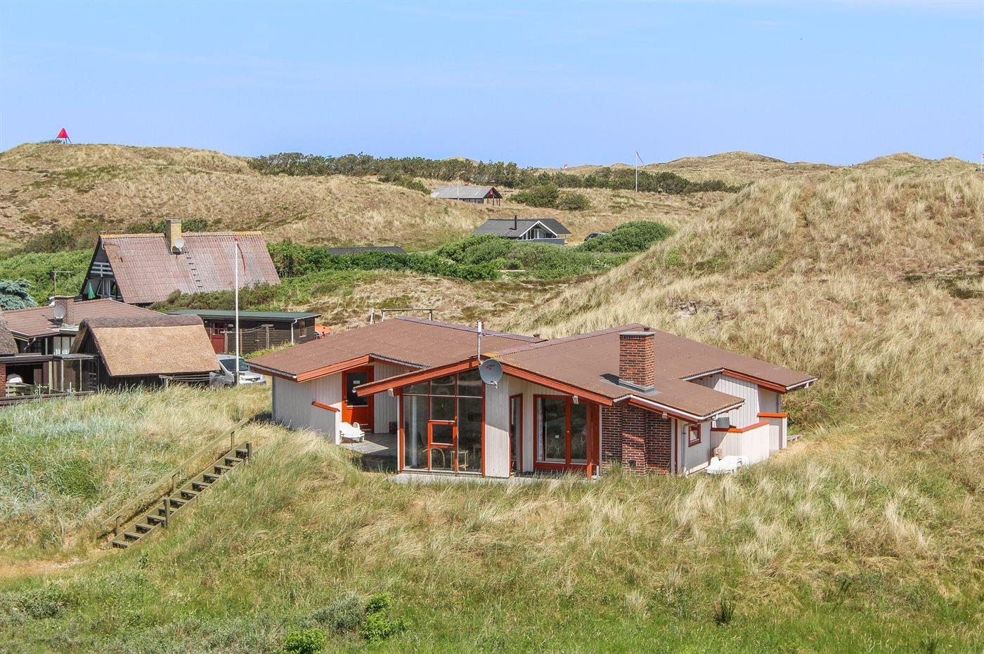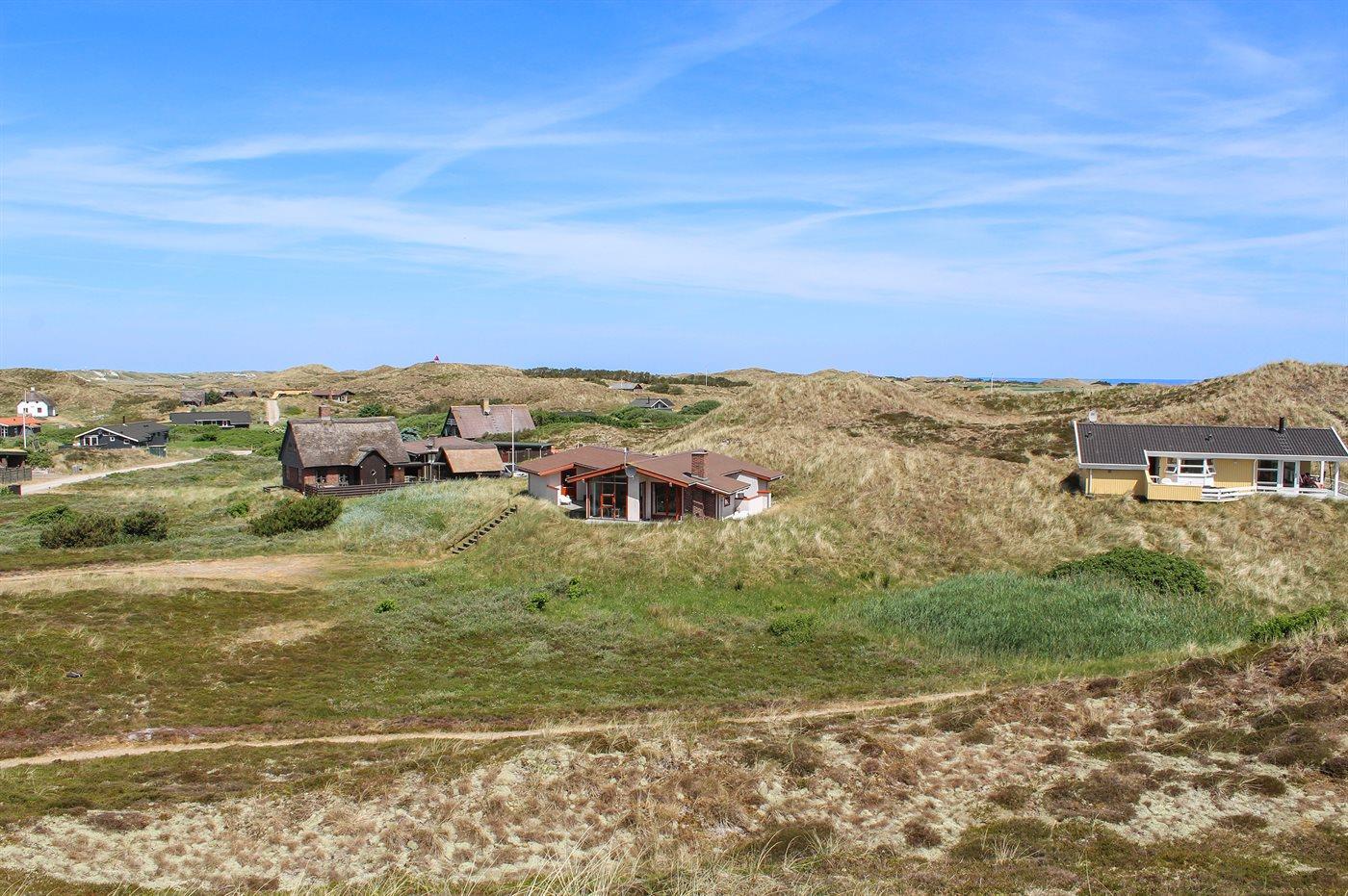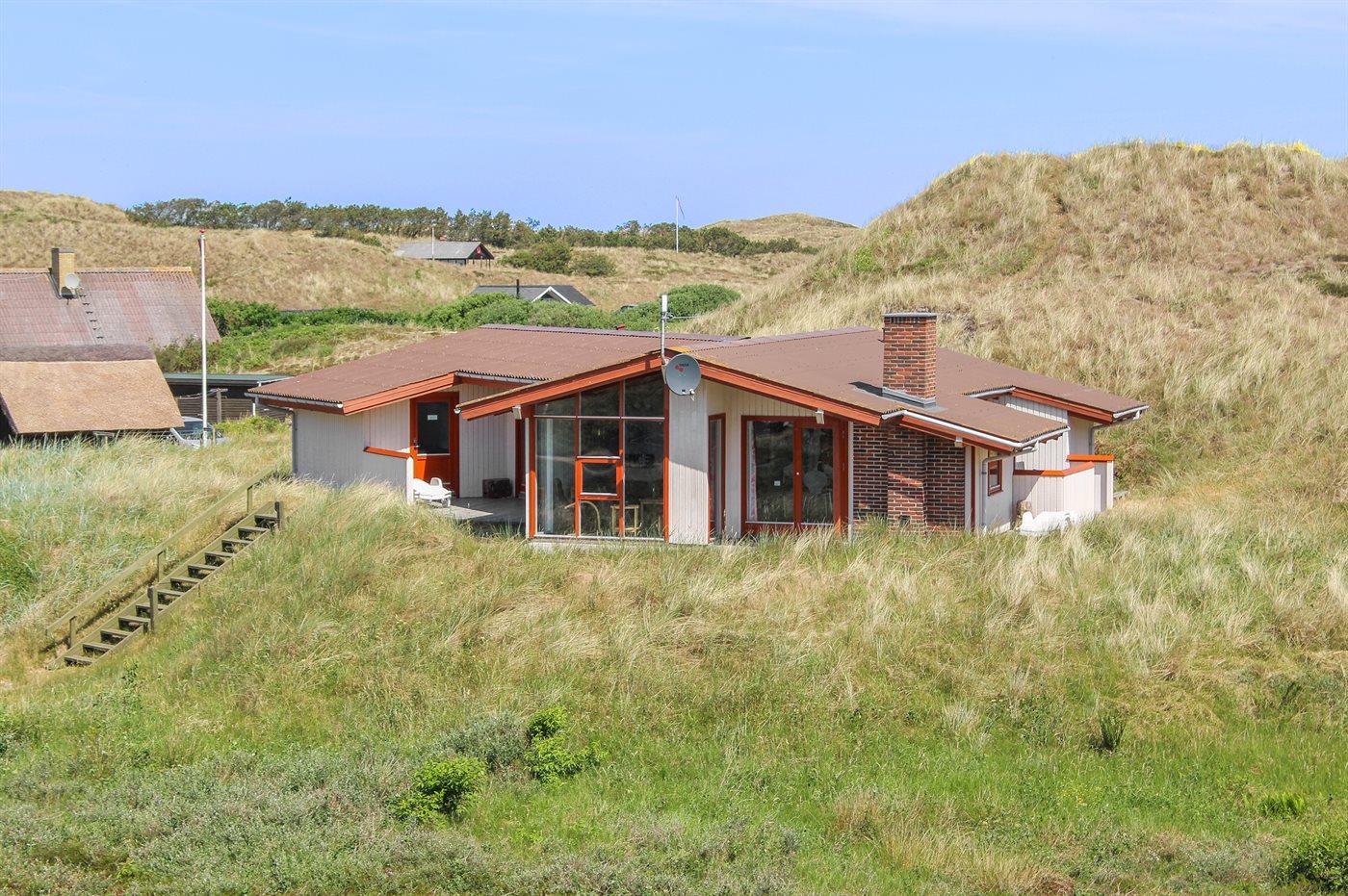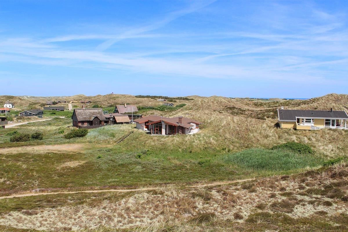 De vakantiewoning is gelegen op een 3200 m² groot Duingrond. Afstand tot de zee 800 m. Afstand tot de fjord 250 m. Dichtstbijzijnde winkel 2500 m. Bij de vakantiewoning hoort 30 m² terras. Daarnaast is er een 10 m² groot overdekt terras. Het huis heeft een stopcontact voor het opladen van een elektrische auto. Oplaadstekker type 2. Met 11 kW-laadvermogen. Parkeerplaats bij het huis.