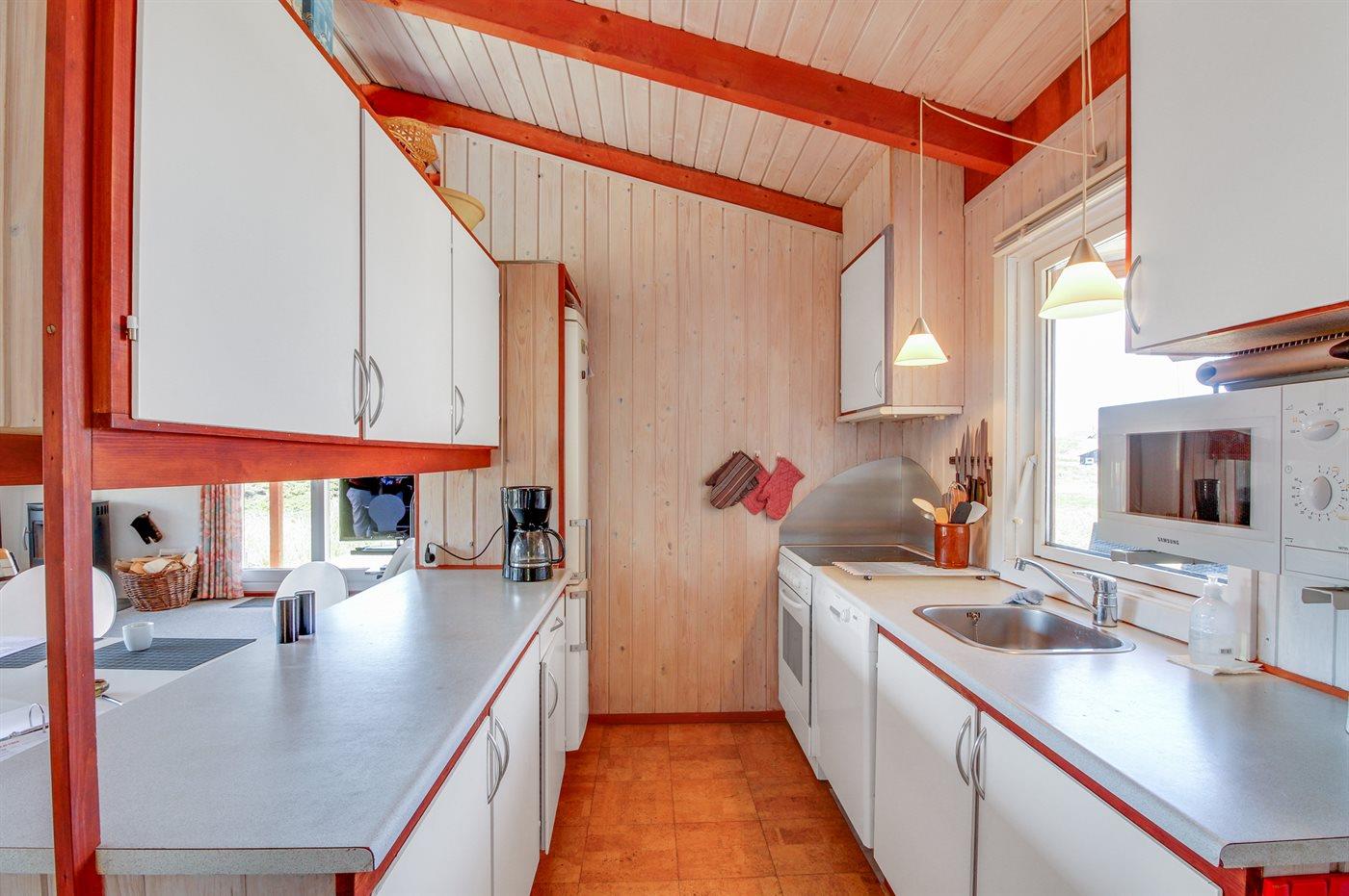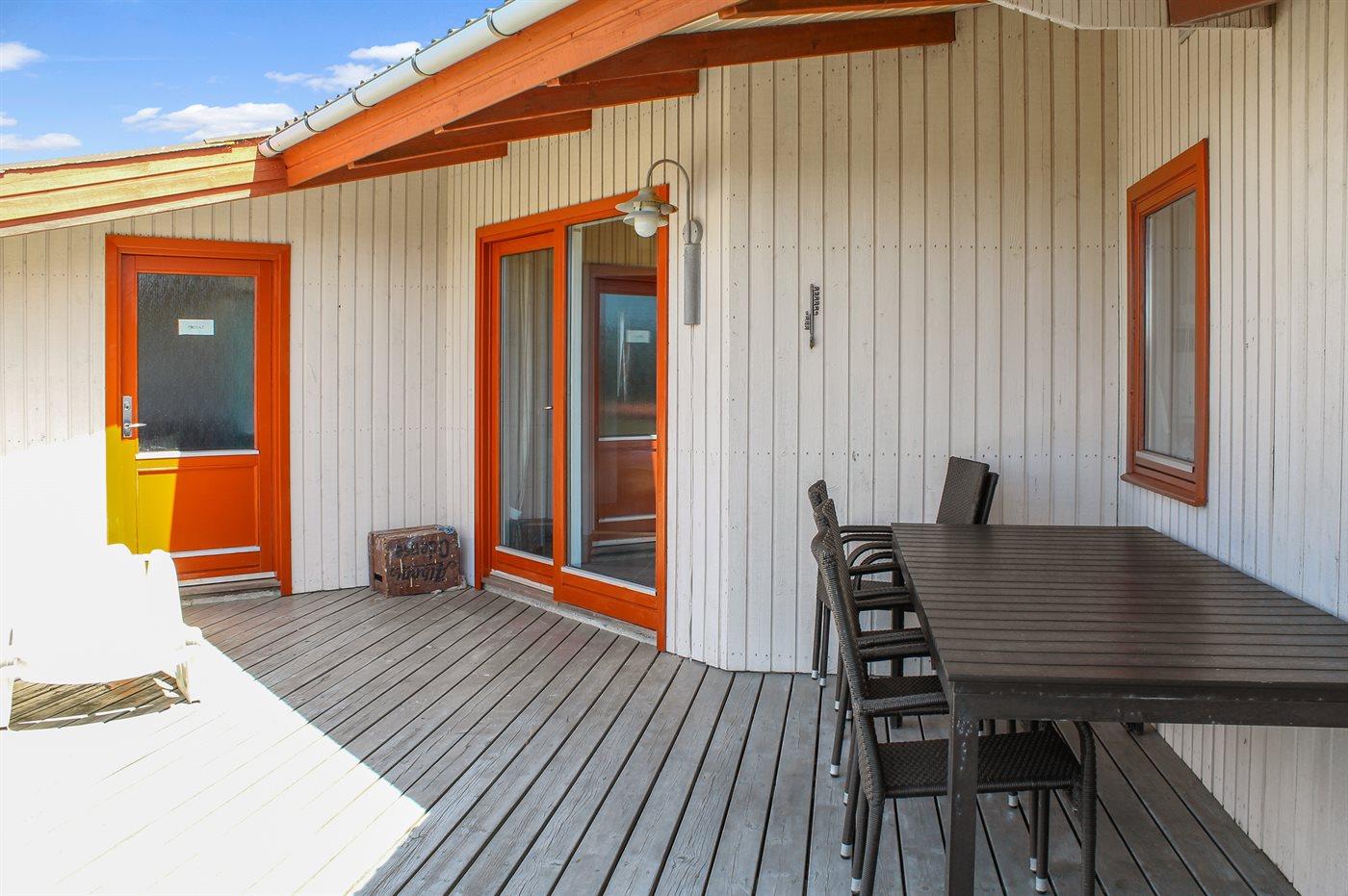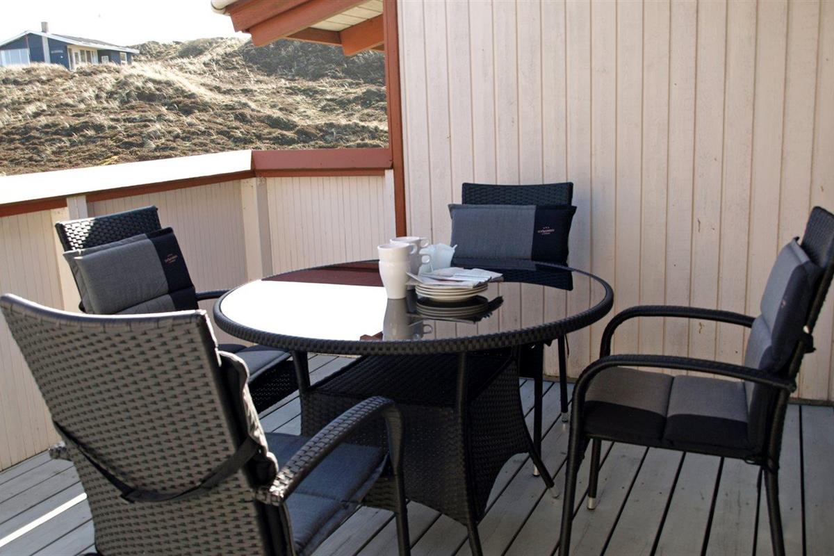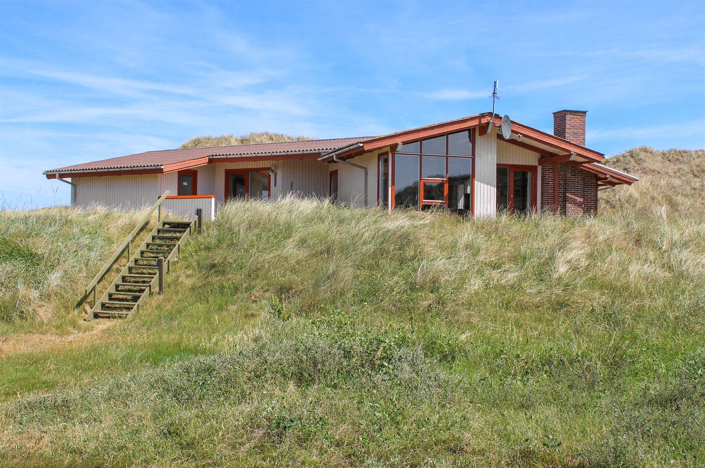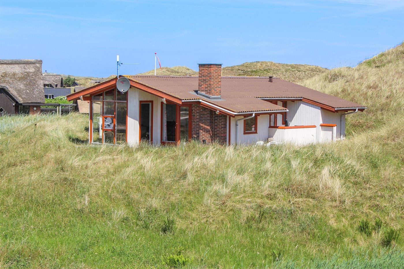 De vakantiewoning is gelegen op een 3200 m² groot Duingrond. Afstand tot de zee 800 m. Afstand tot de fjord 250 m. Dichtstbijzijnde winkel 2500 m. Bij de vakantiewoning hoort 30 m² terras. Daarnaast is er een 10 m² groot overdekt terras. Het huis heeft een stopcontact voor het opladen van een elektrische auto. Oplaadstekker type 2. Met 11 kW-laadvermogen. Parkeerplaats bij het huis.