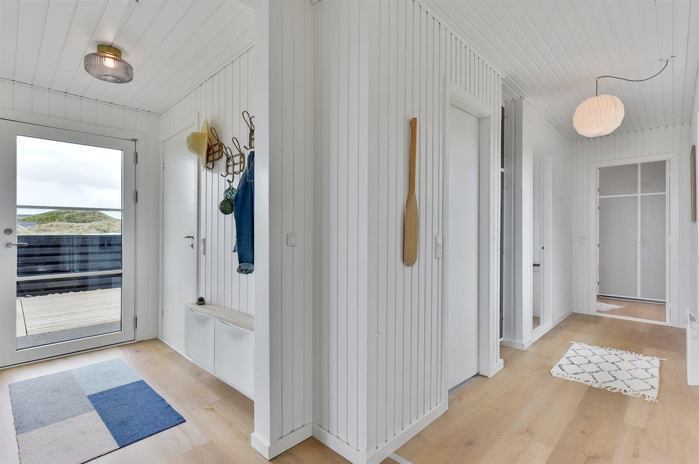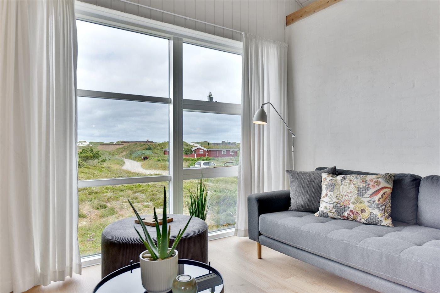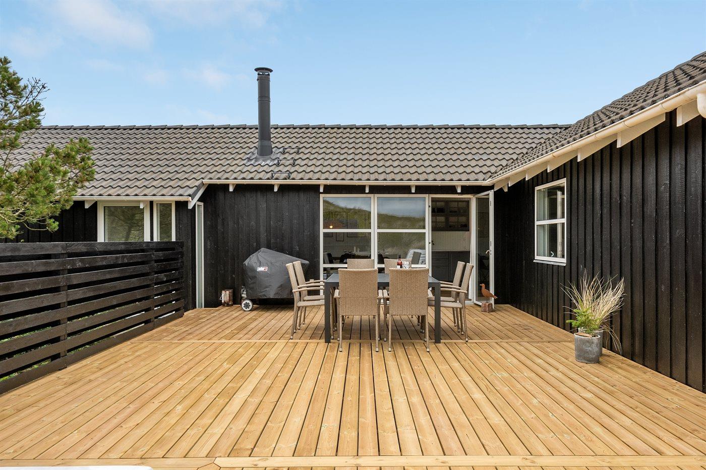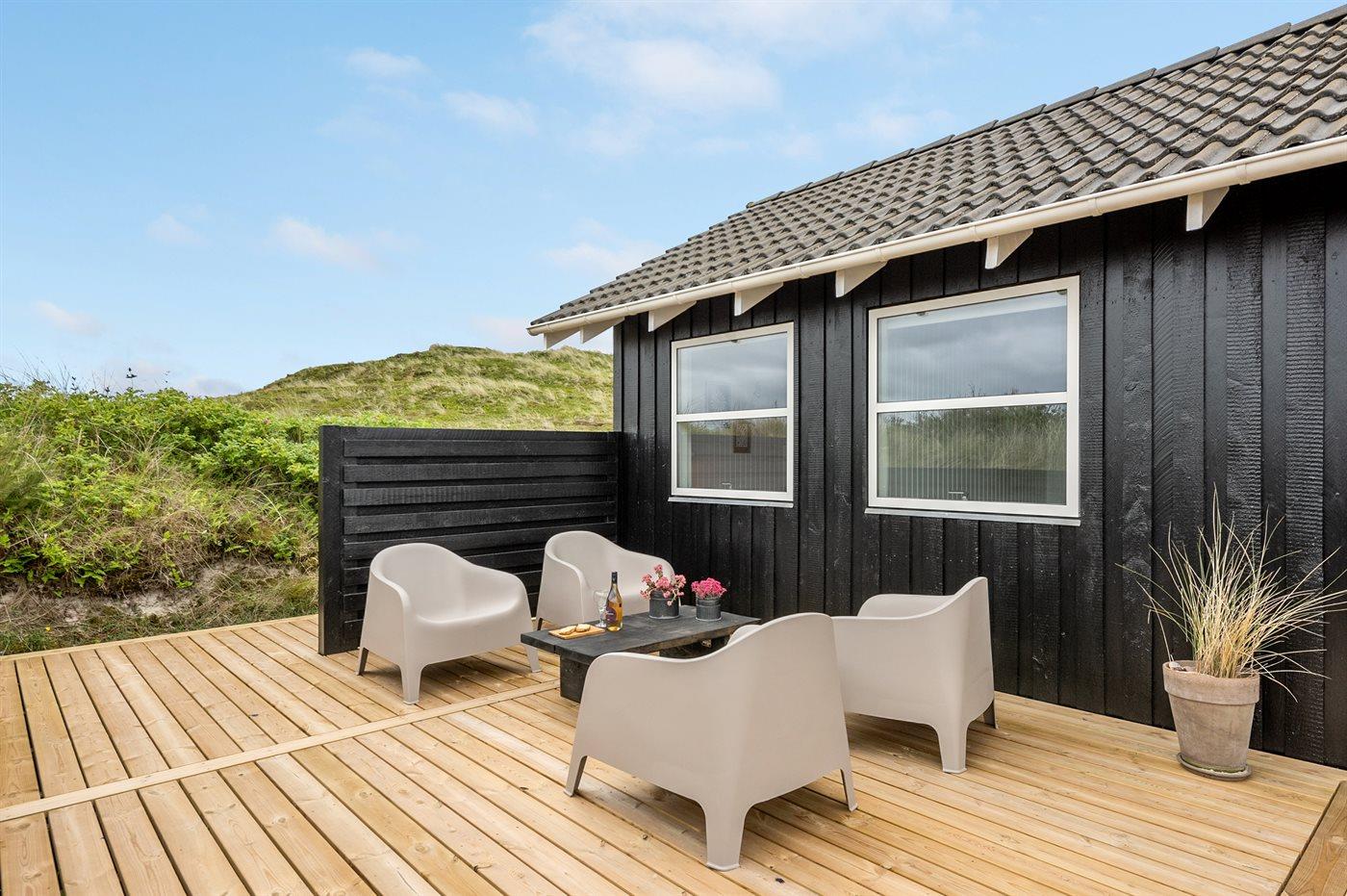 De vakantiewoning is gelegen op een 4185 m² groot Duingrond. Afstand tot de zee 400 m. Afstand tot de fjord 5000 m. Dichtstbijzijnde winkel 3800 m. Bij de vakantiewoning hoort 120 m² terras. Gereedschapsruimte. Afstand tot speelplaats 3800 m. Buitensauna. Parkeerplaats bij het huis.
