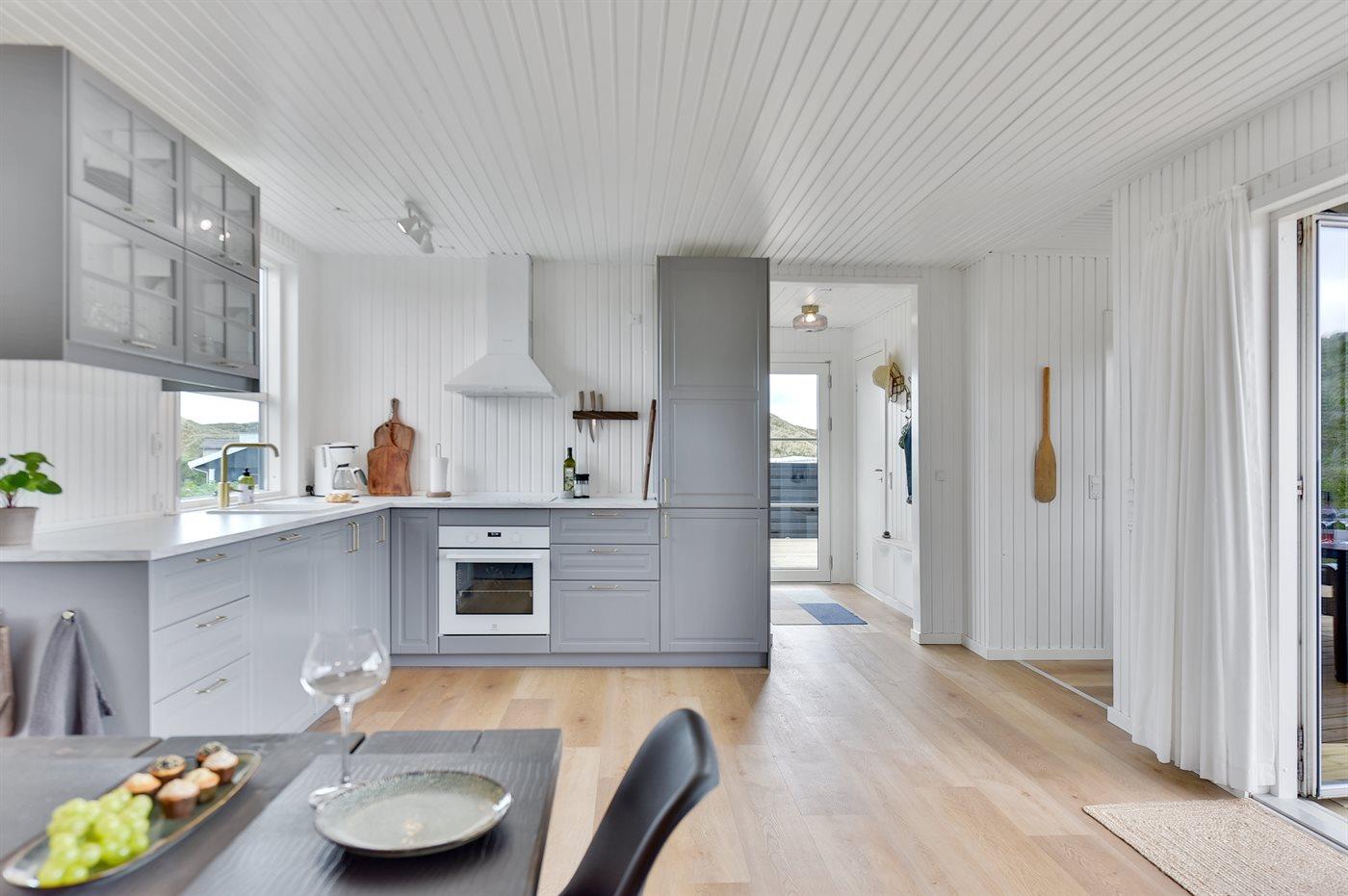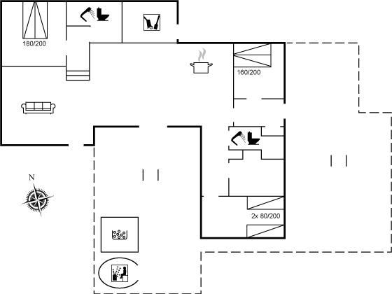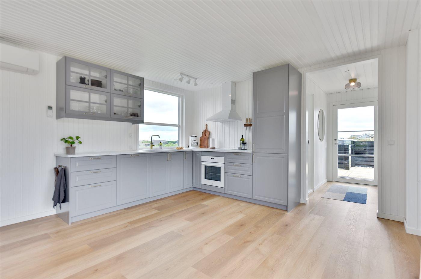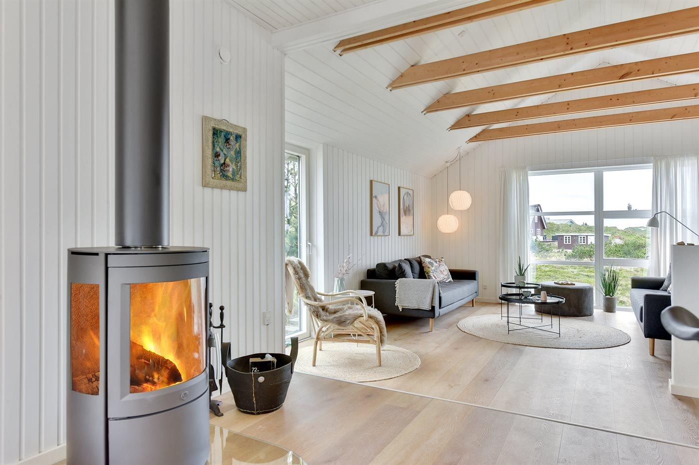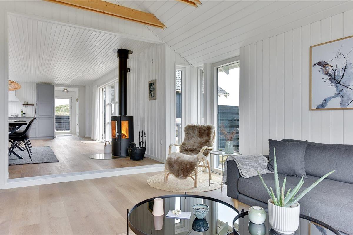 De vakantiewoning is gelegen op een 4185 m² groot Duingrond. Afstand tot de zee 400 m. Afstand tot de fjord 5000 m. Dichtstbijzijnde winkel 3800 m. Bij de vakantiewoning hoort 120 m² terras. Gereedschapsruimte. Afstand tot speelplaats 3800 m. Buitensauna. Parkeerplaats bij het huis.