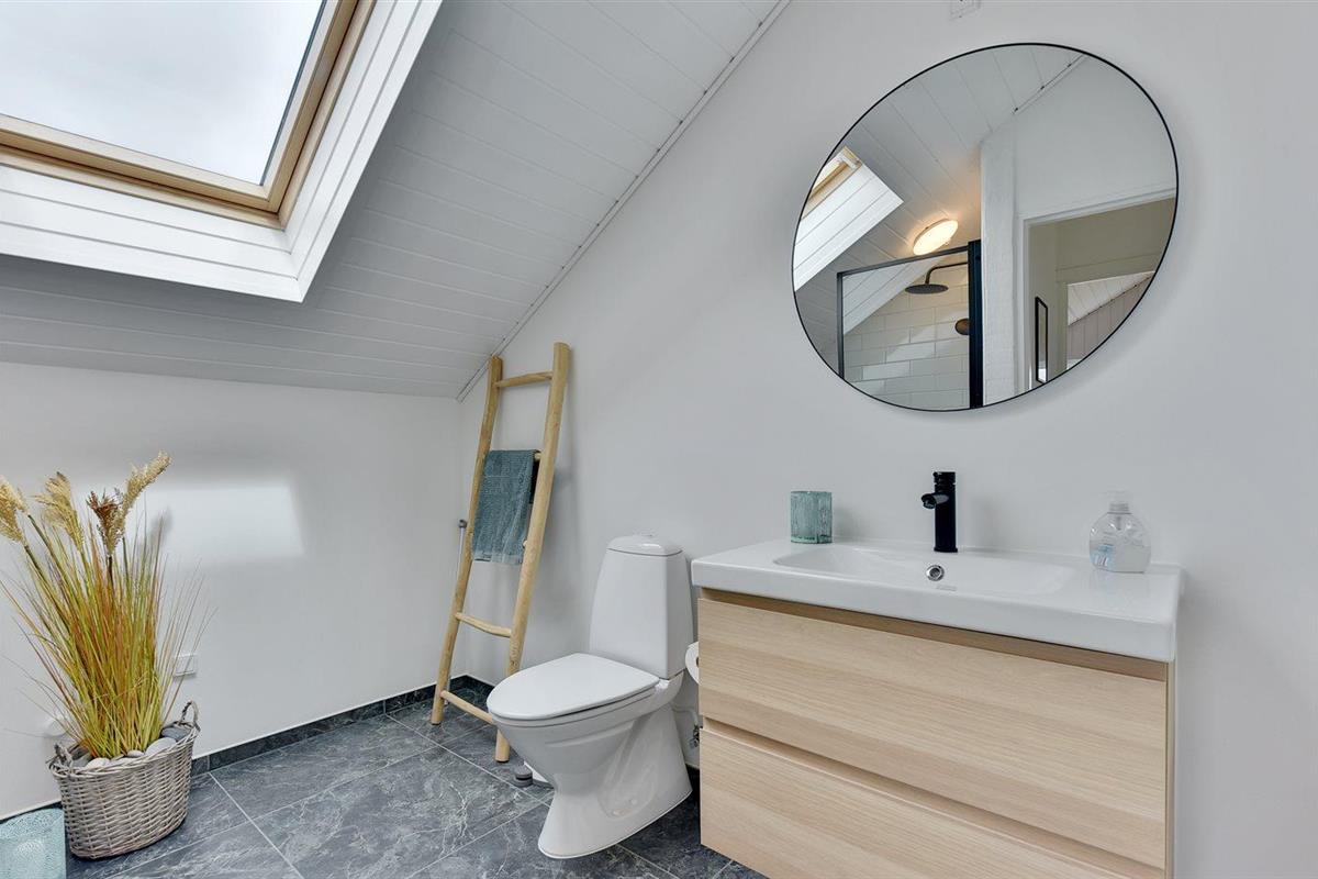 Er is 2 badkamers met douchehok en 2 toiletten. Er is vloerverwarming in 2 van de badkamers.