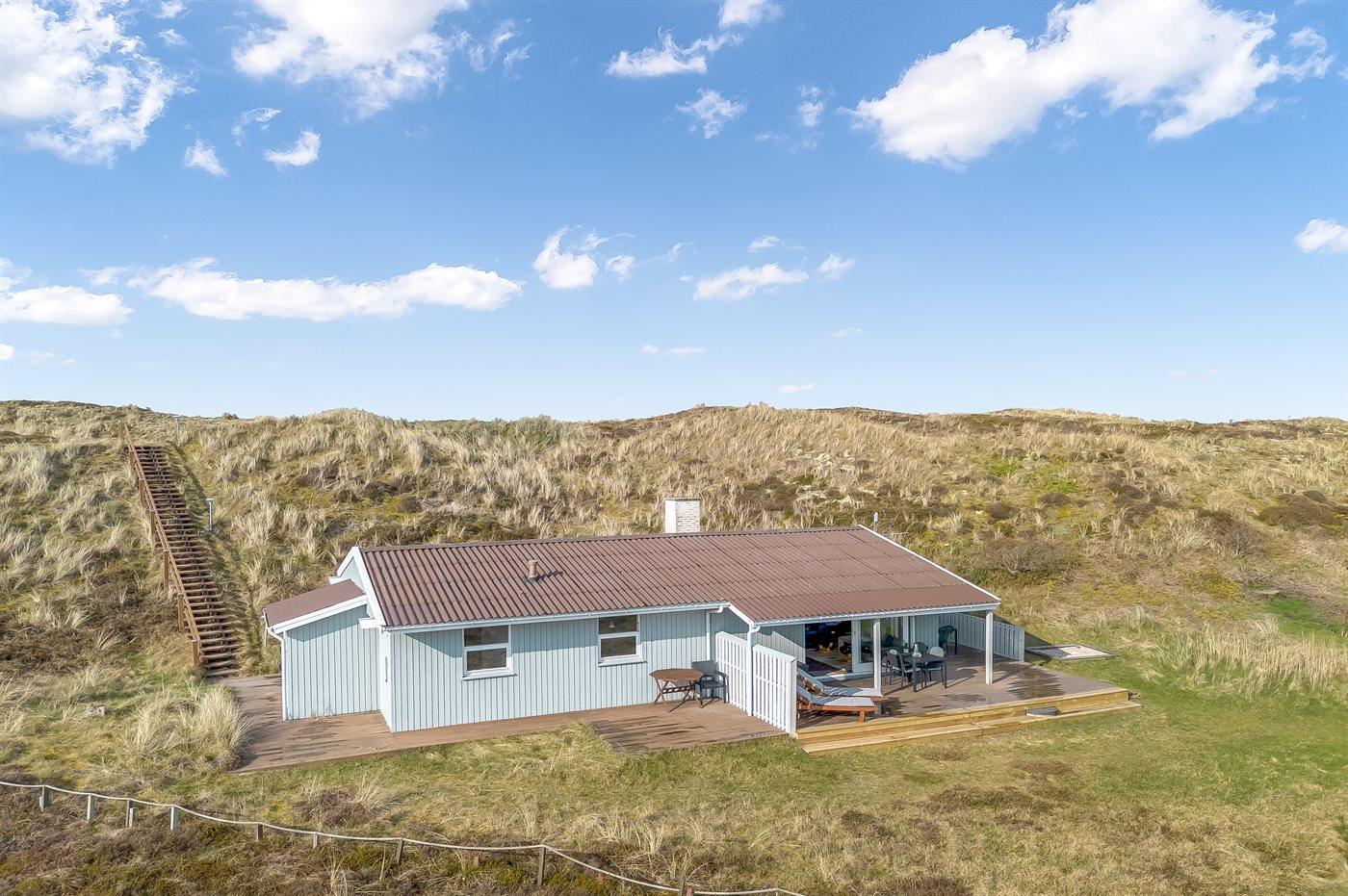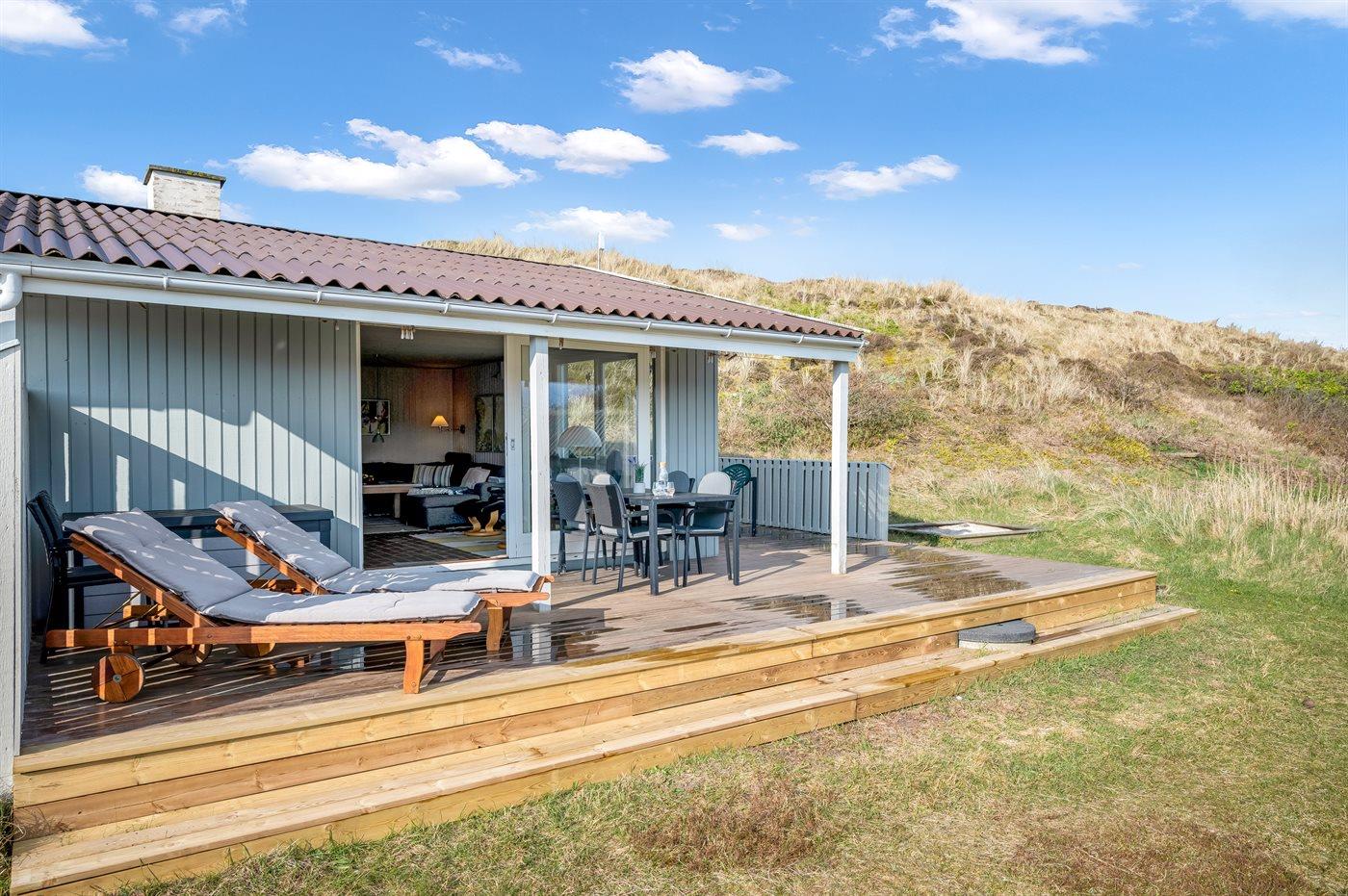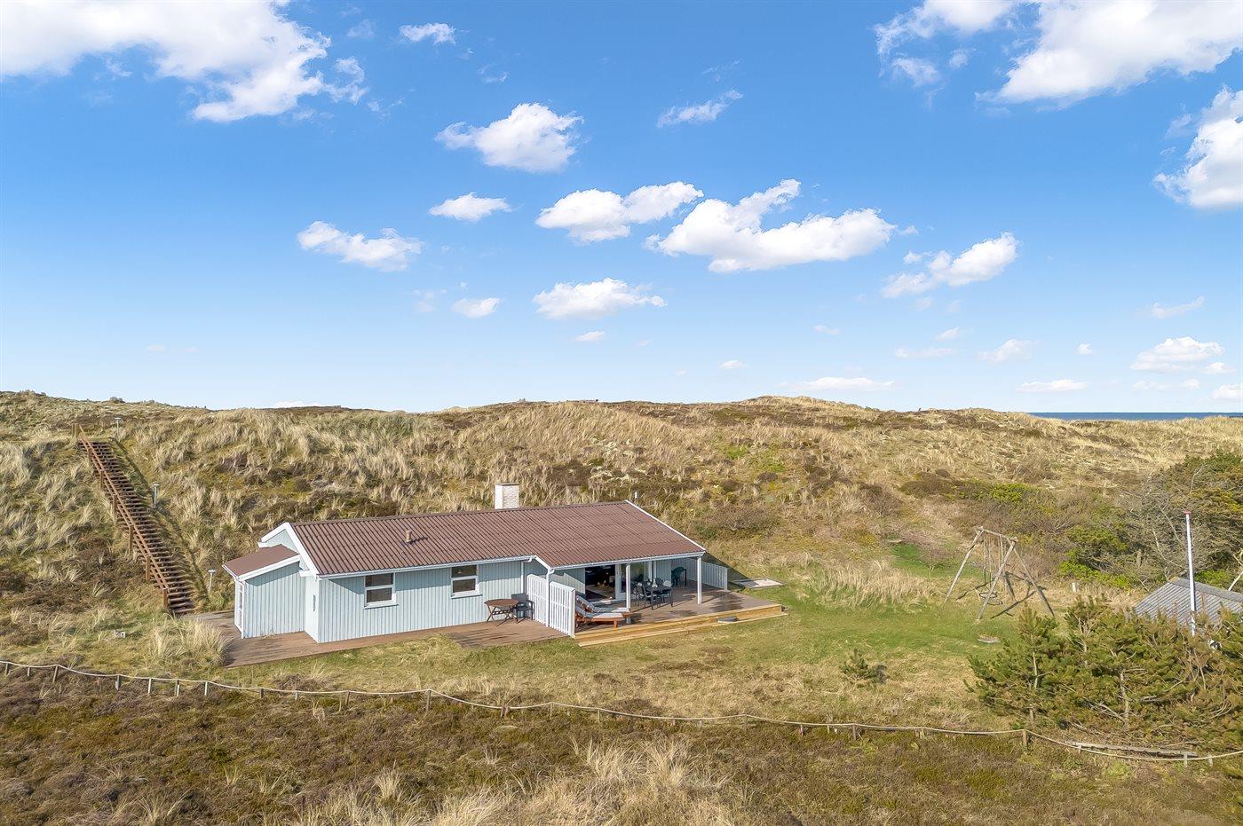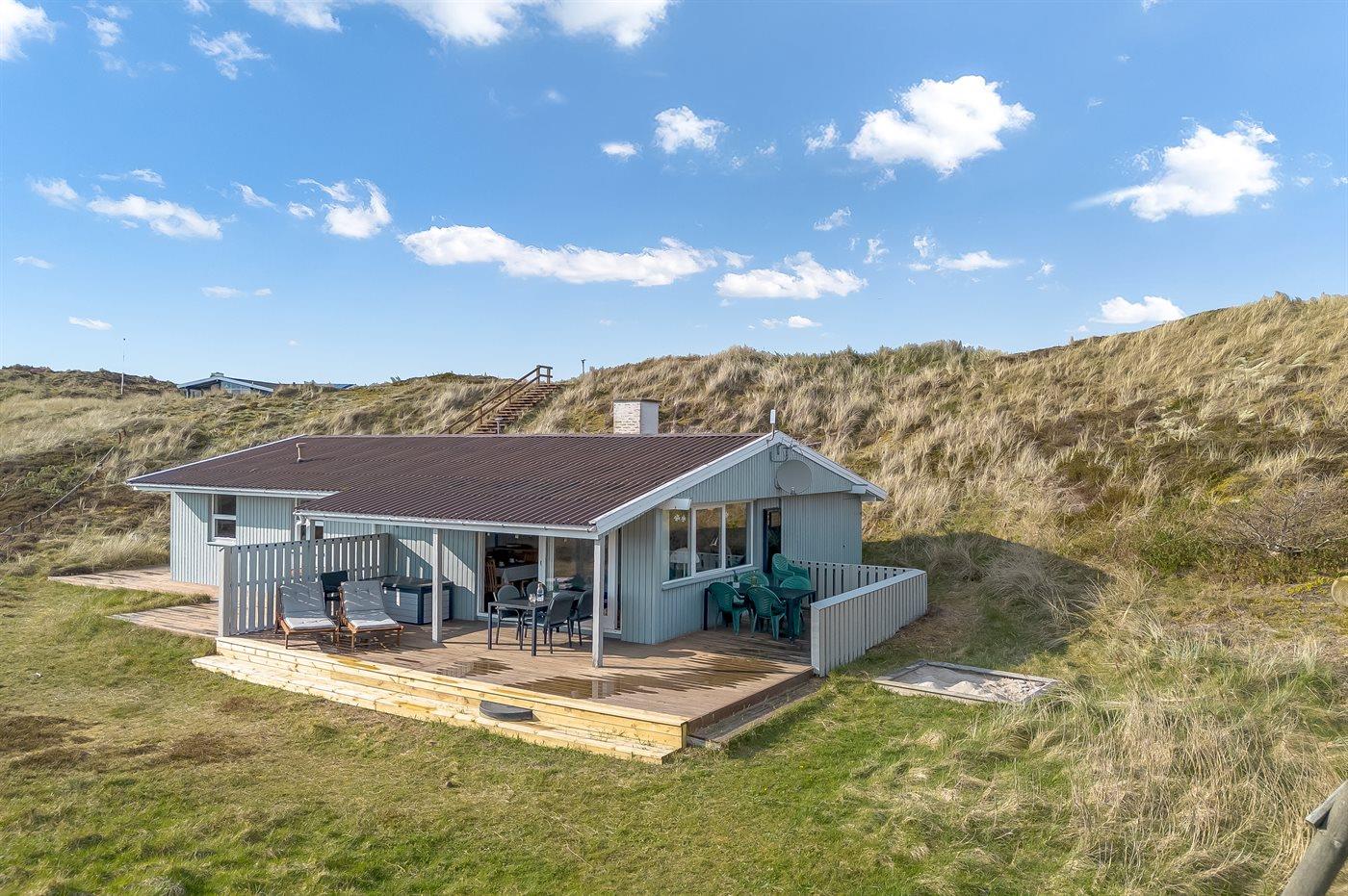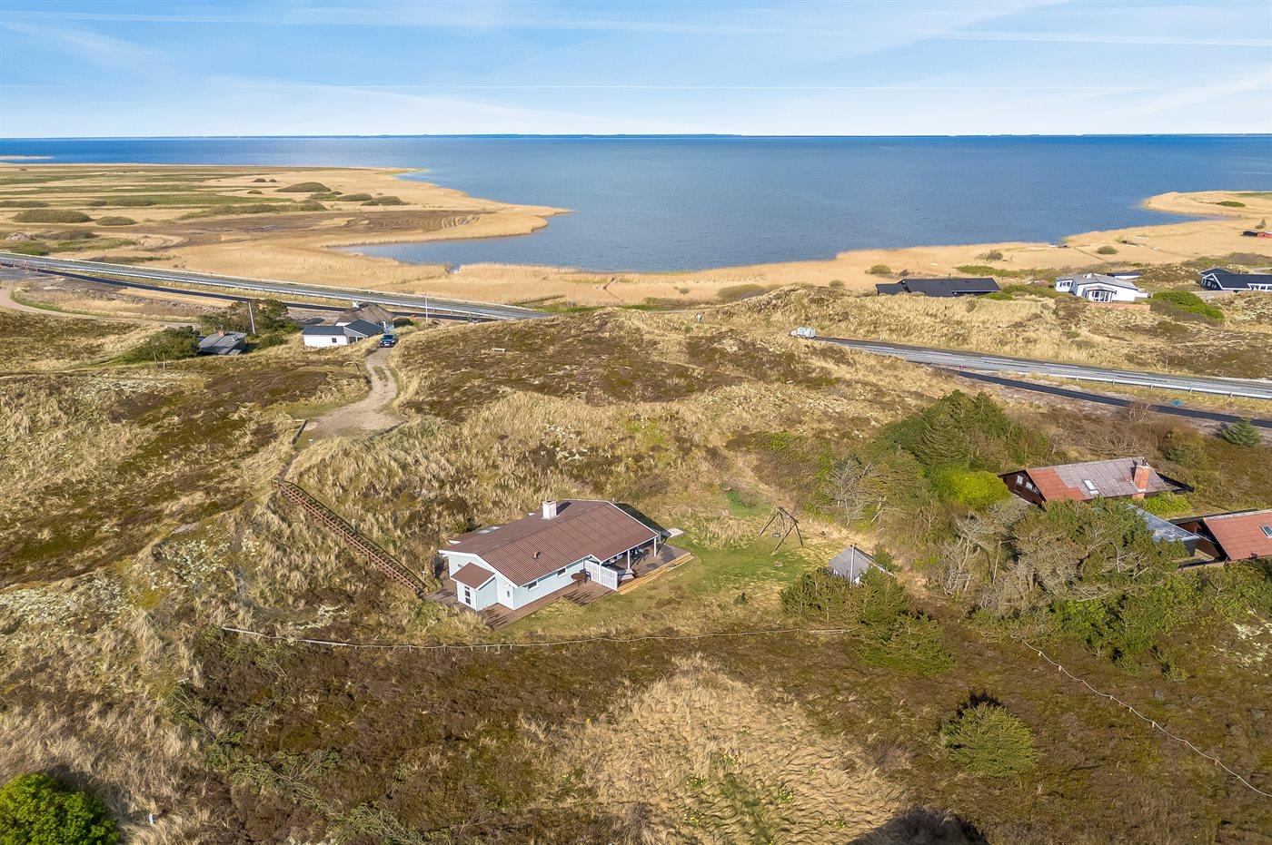 De vakantiewoning is gelegen op een 6000 m² groot Duingrond. Afstand tot de zee 700 m. Afstand tot de fjord 200 m. Dichtstbijzijnde winkel 3500 m. Bij de vakantiewoning hoort 69 m² terras. Daarnaast is er een 18 m² groot overdekt terras. Schommel. Zandbak.