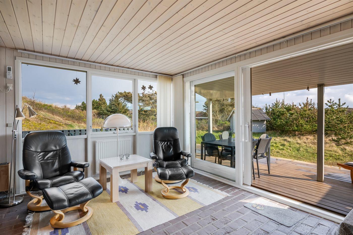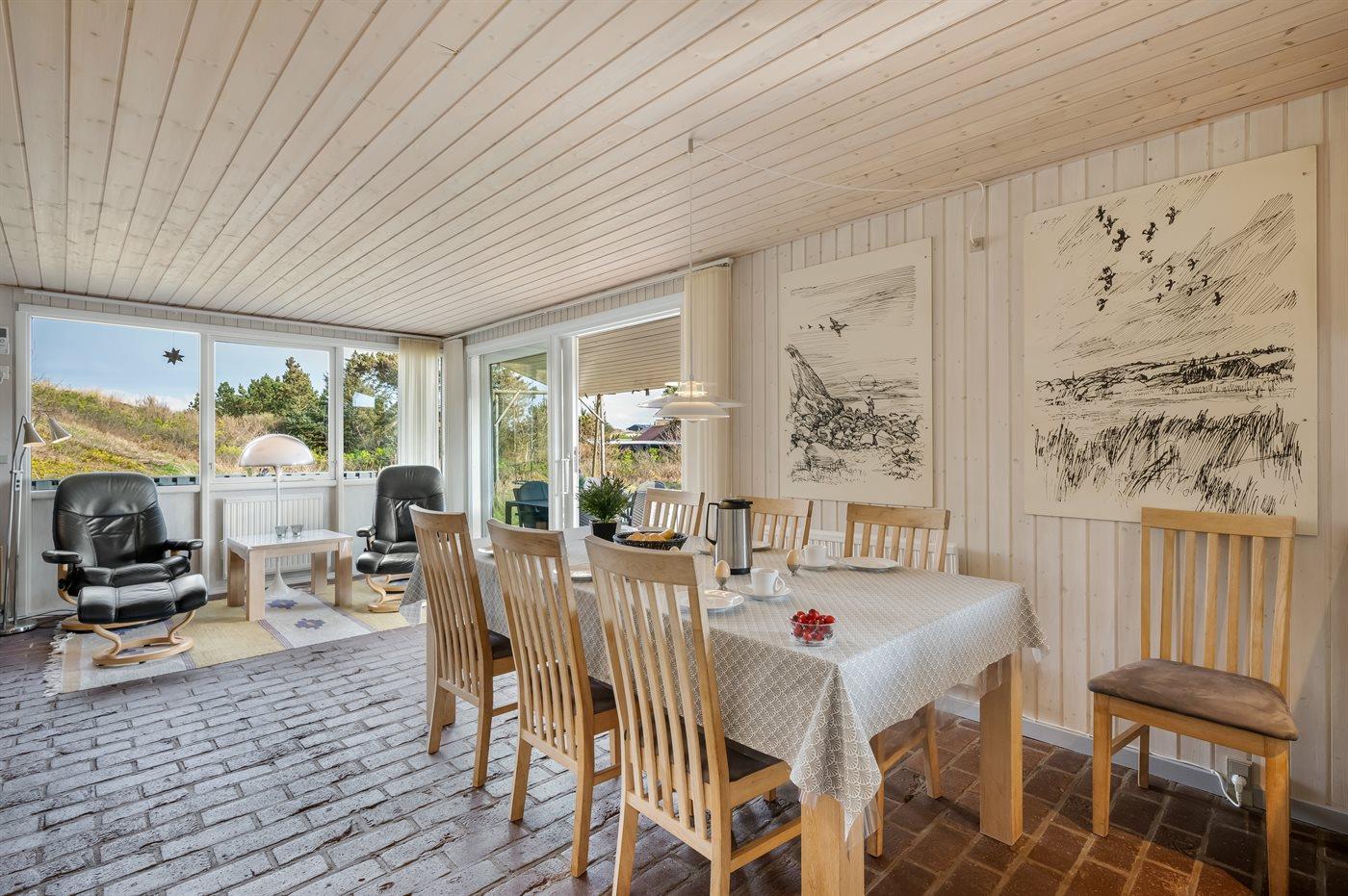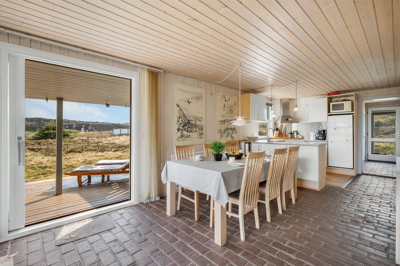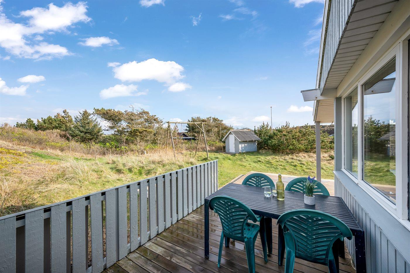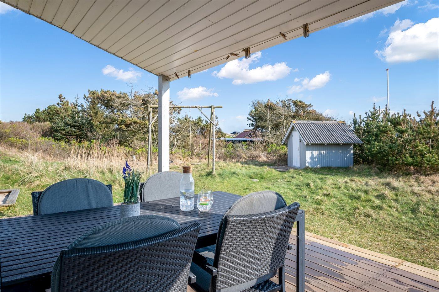 De vakantiewoning is gelegen op een 6000 m² groot Duingrond. Afstand tot de zee 700 m. Afstand tot de fjord 200 m. Dichtstbijzijnde winkel 3500 m. Bij de vakantiewoning hoort 69 m² terras. Daarnaast is er een 18 m² groot overdekt terras. Schommel. Zandbak.