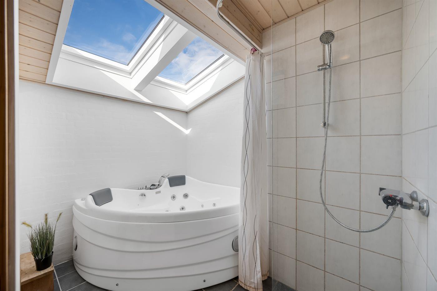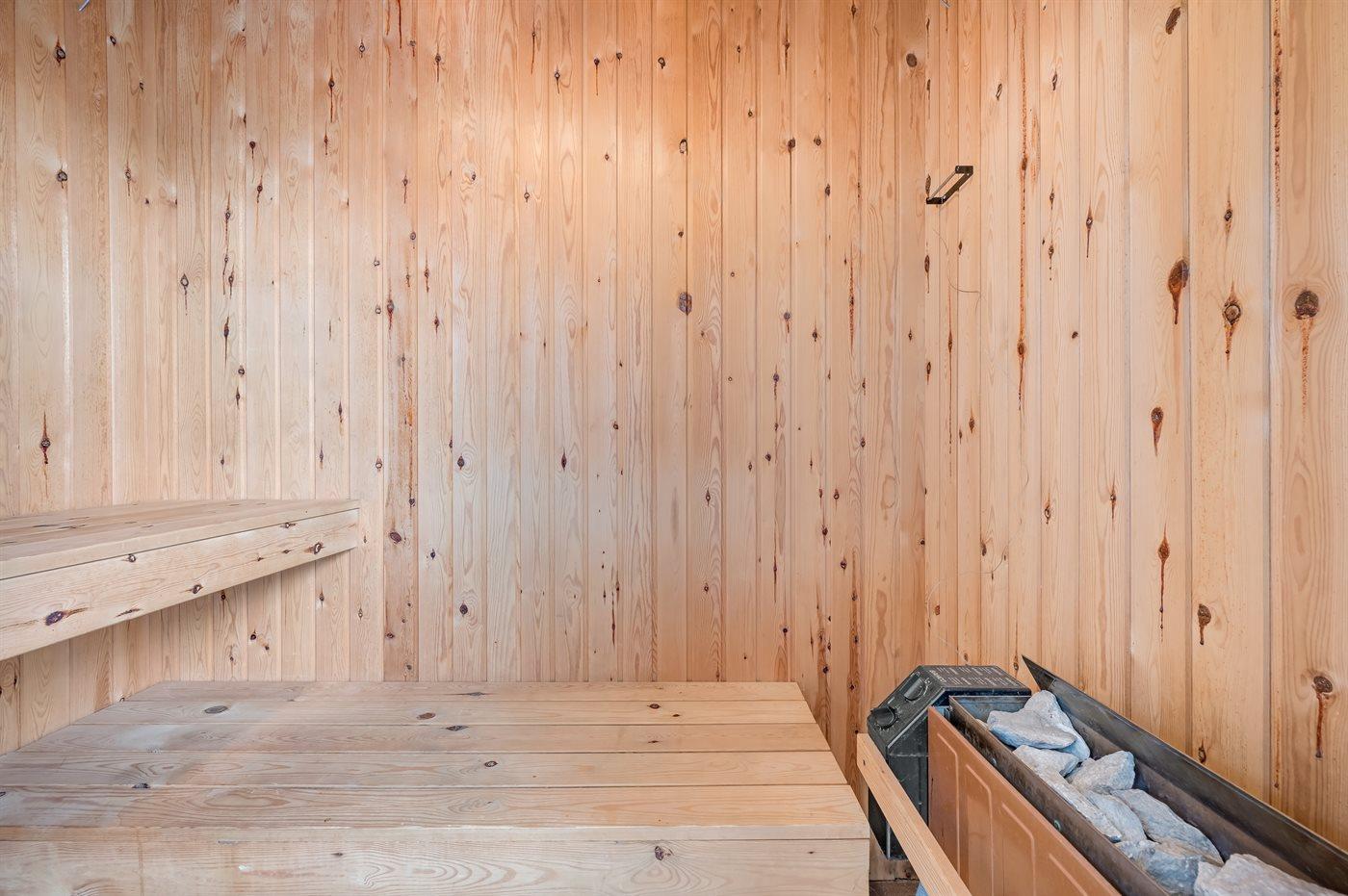 Er is 1 badkamer met douchehok en 1 toilet. De sauna biedt de gelegenheid tot ontspanning.