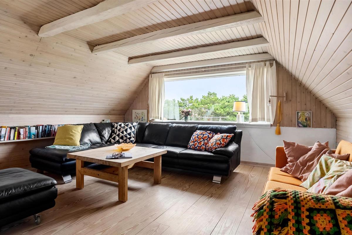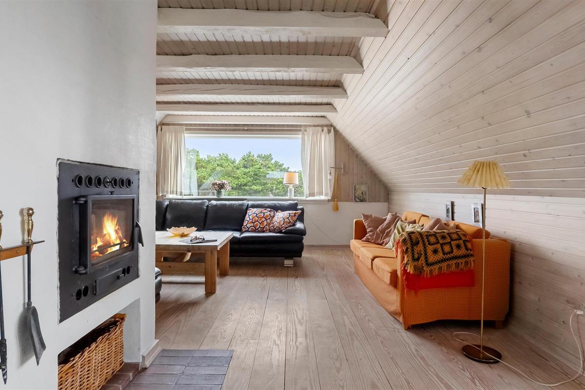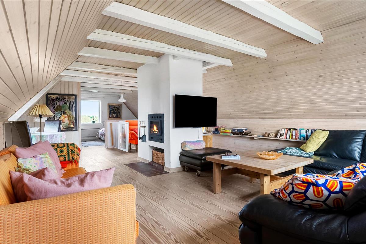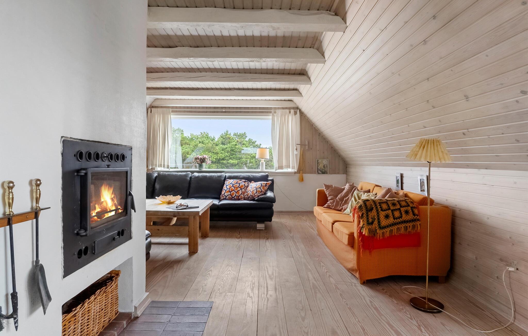 Breng een ontspannen vakantie door in je uitnodigende vakantiehuis, dat natuur, rust en sfeer harmonieus combineert. Het huis biedt een prachtig uitzicht op het omliggende landschap en het nabijgelegen Ringkøbing Fjord. Maak het jezelf gemakkelijk op de bovenverdieping, waar twee gezellige zithoeken met uitzicht op het groen op je wachten. Ontspan voor de tv, blader door een goed boek of geniet gewoon van het uitzicht door het panoramische raam. Op de begane grond nodigt een lichte, open woonkamer met open haard en eethoek je uit om samen tijd door te brengen. De keuken is praktisch uitgerust en biedt uitzicht op de groene duinen.