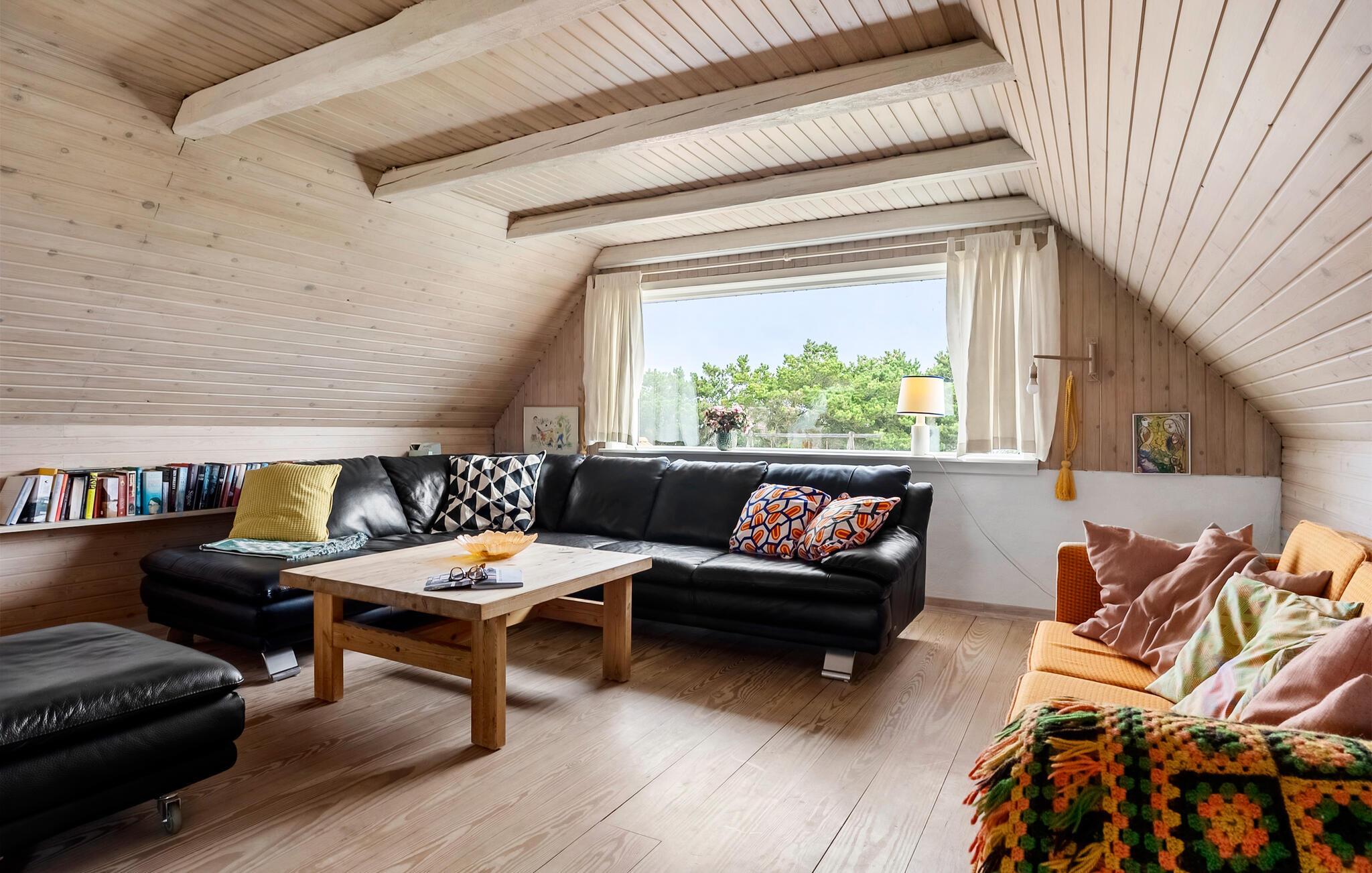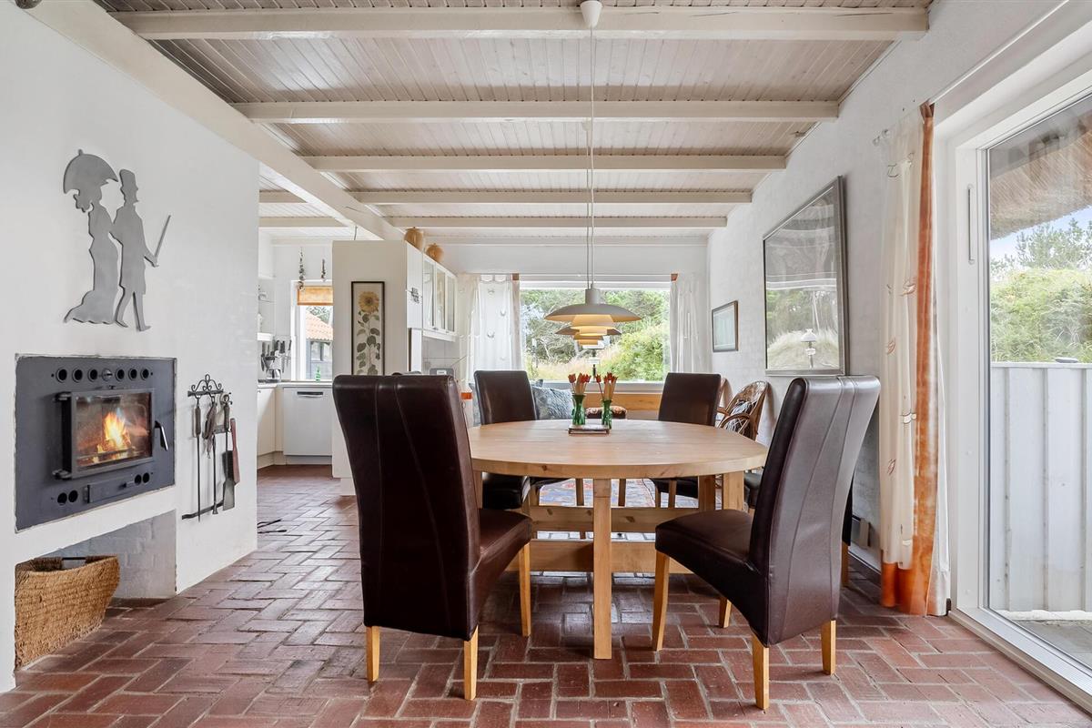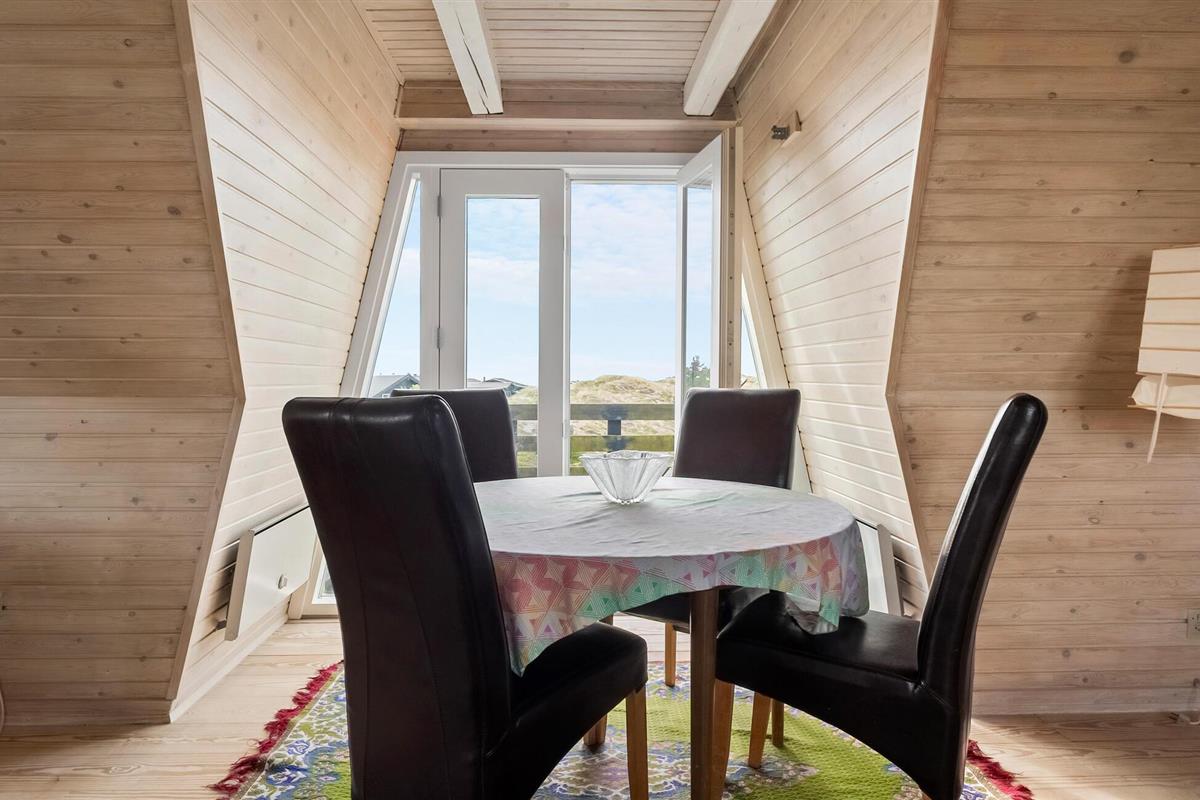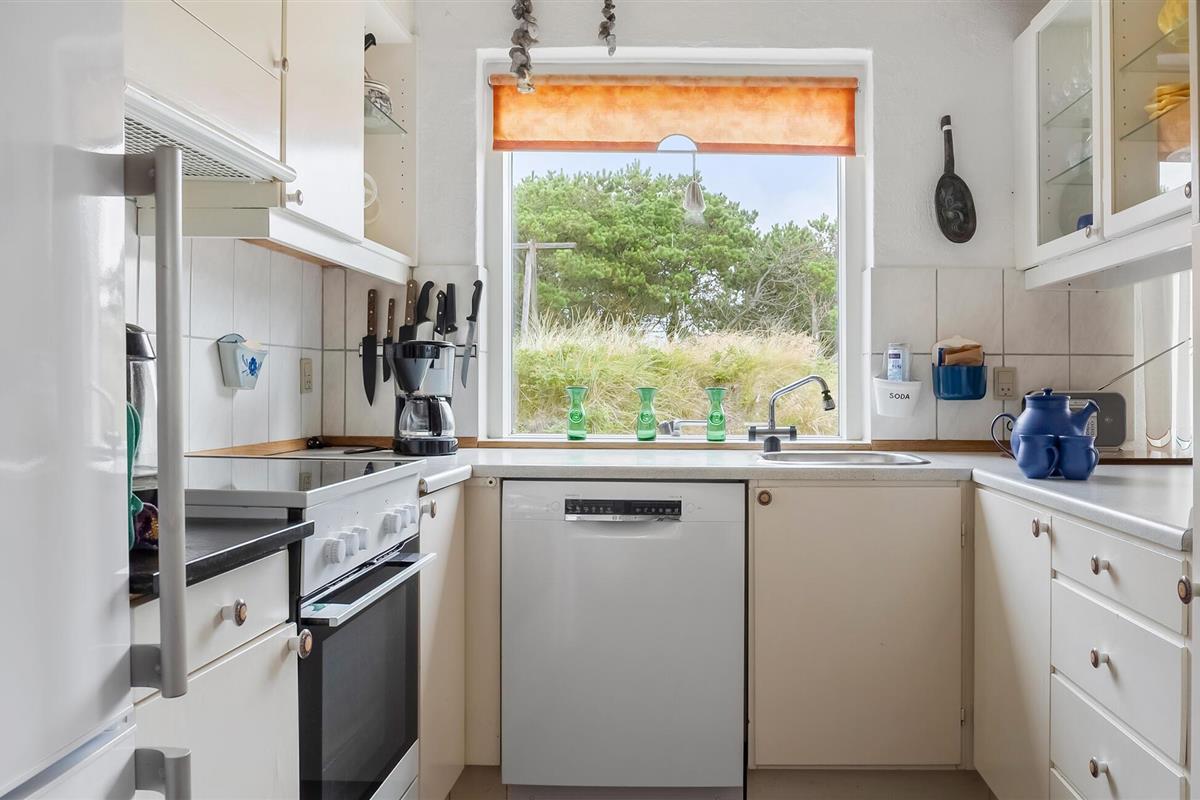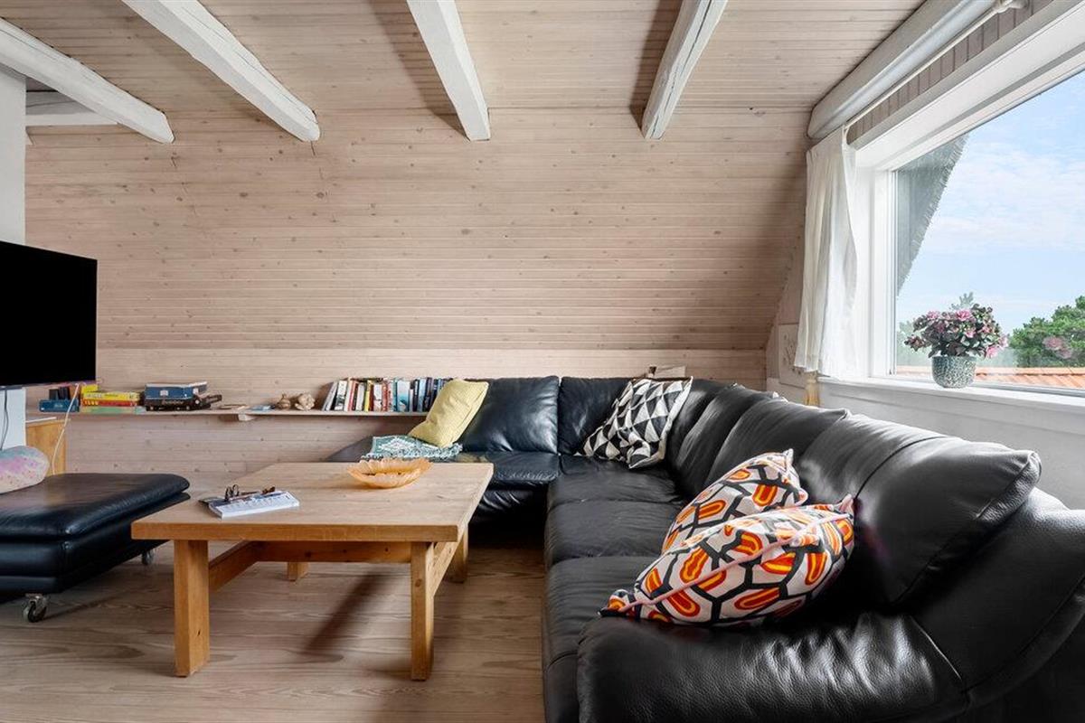 Breng een ontspannen vakantie door in je uitnodigende vakantiehuis, dat natuur, rust en sfeer harmonieus combineert. Het huis biedt een prachtig uitzicht op het omliggende landschap en het nabijgelegen Ringkøbing Fjord. Maak het jezelf gemakkelijk op de bovenverdieping, waar twee gezellige zithoeken met uitzicht op het groen op je wachten. Ontspan voor de tv, blader door een goed boek of geniet gewoon van het uitzicht door het panoramische raam. Op de begane grond nodigt een lichte, open woonkamer met open haard en eethoek je uit om samen tijd door te brengen. De keuken is praktisch uitgerust en biedt uitzicht op de groene duinen.