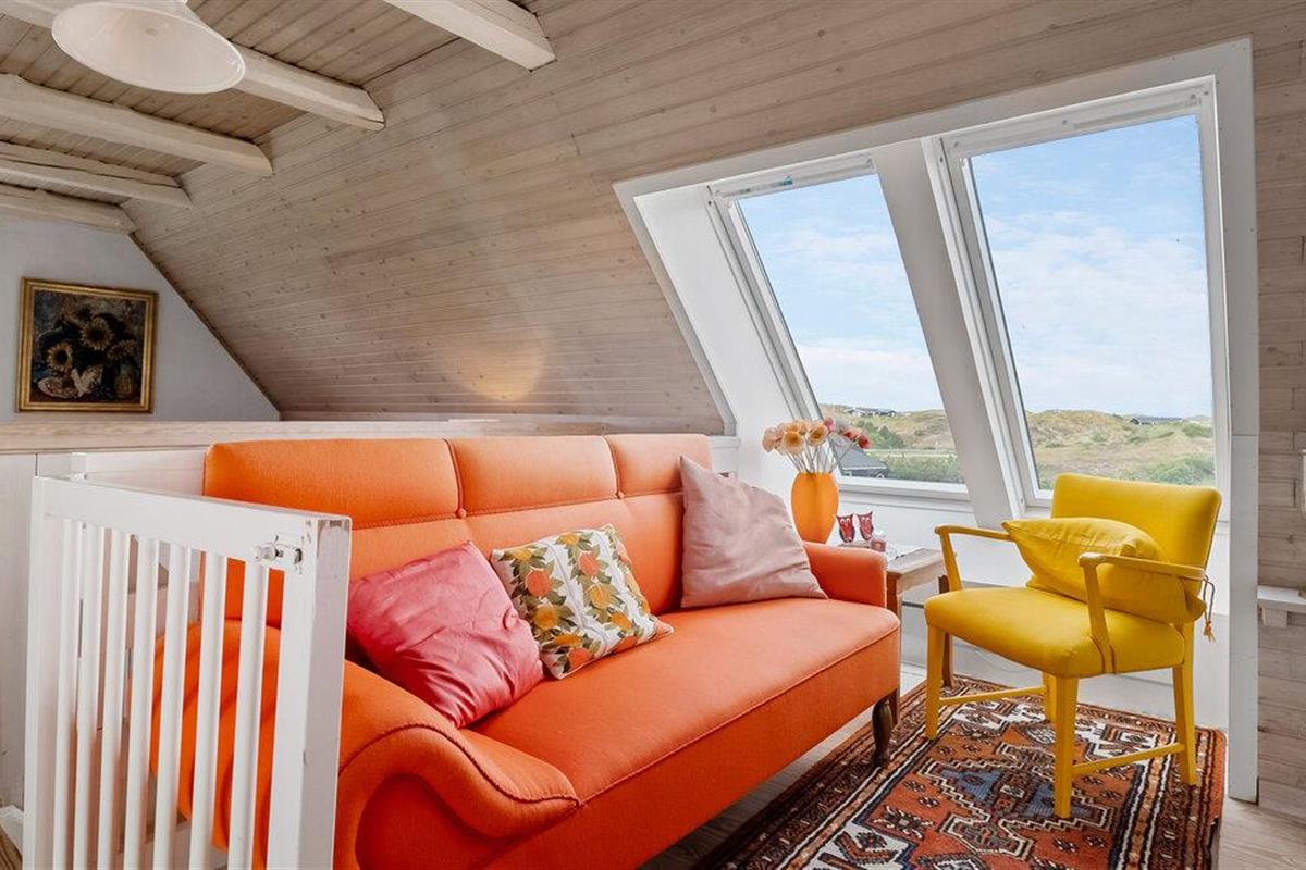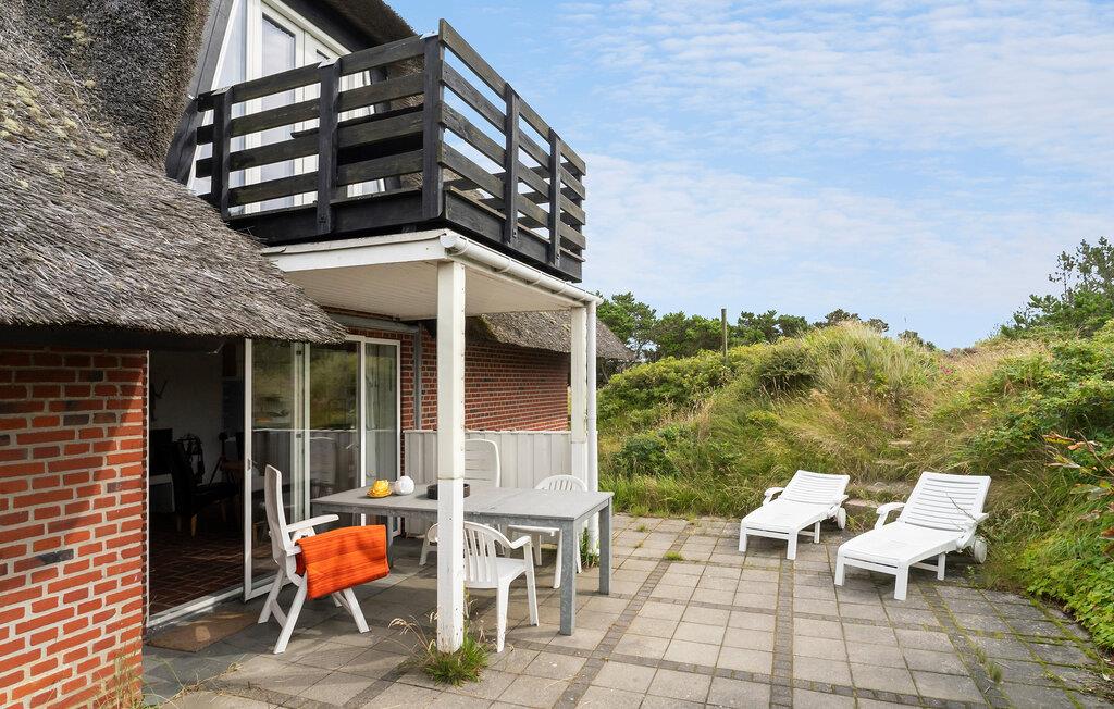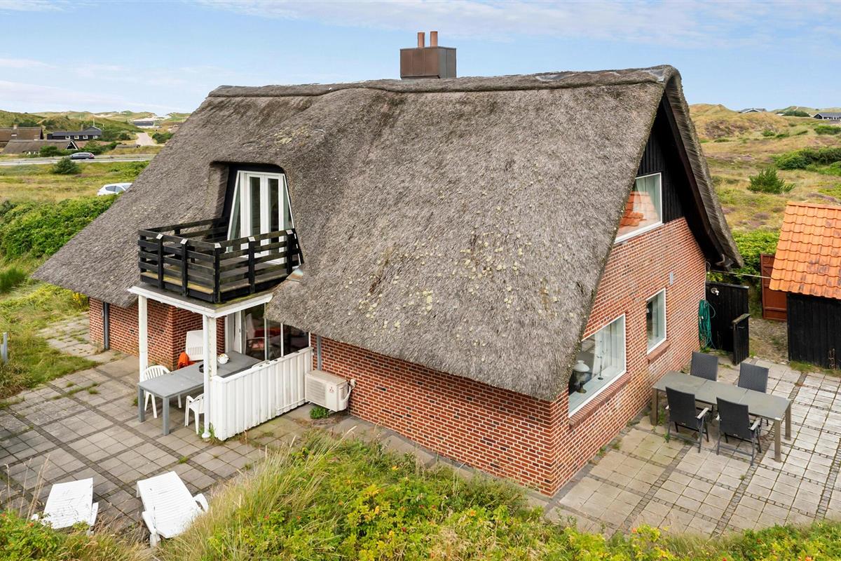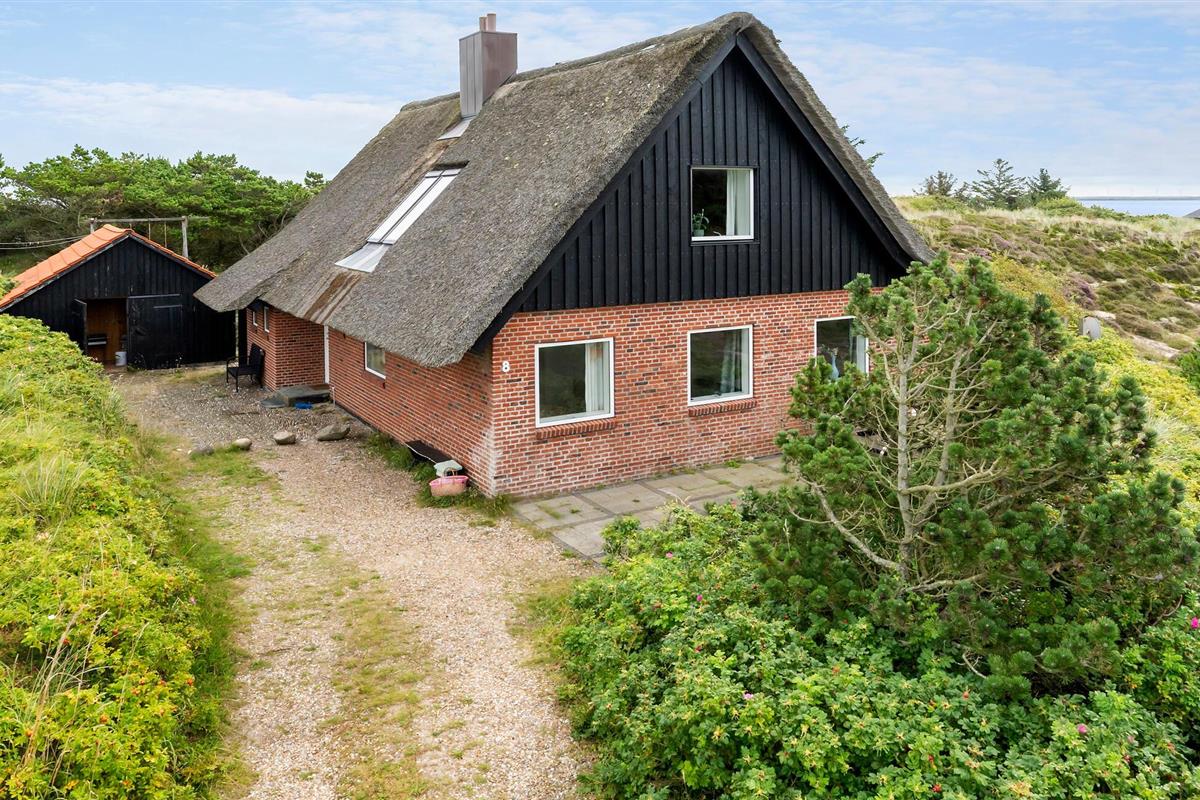 Geniet van het panoramische uitzicht over de duinen en het fjord in dit rietgedekte vakantiehuis met een bijzondere charme.