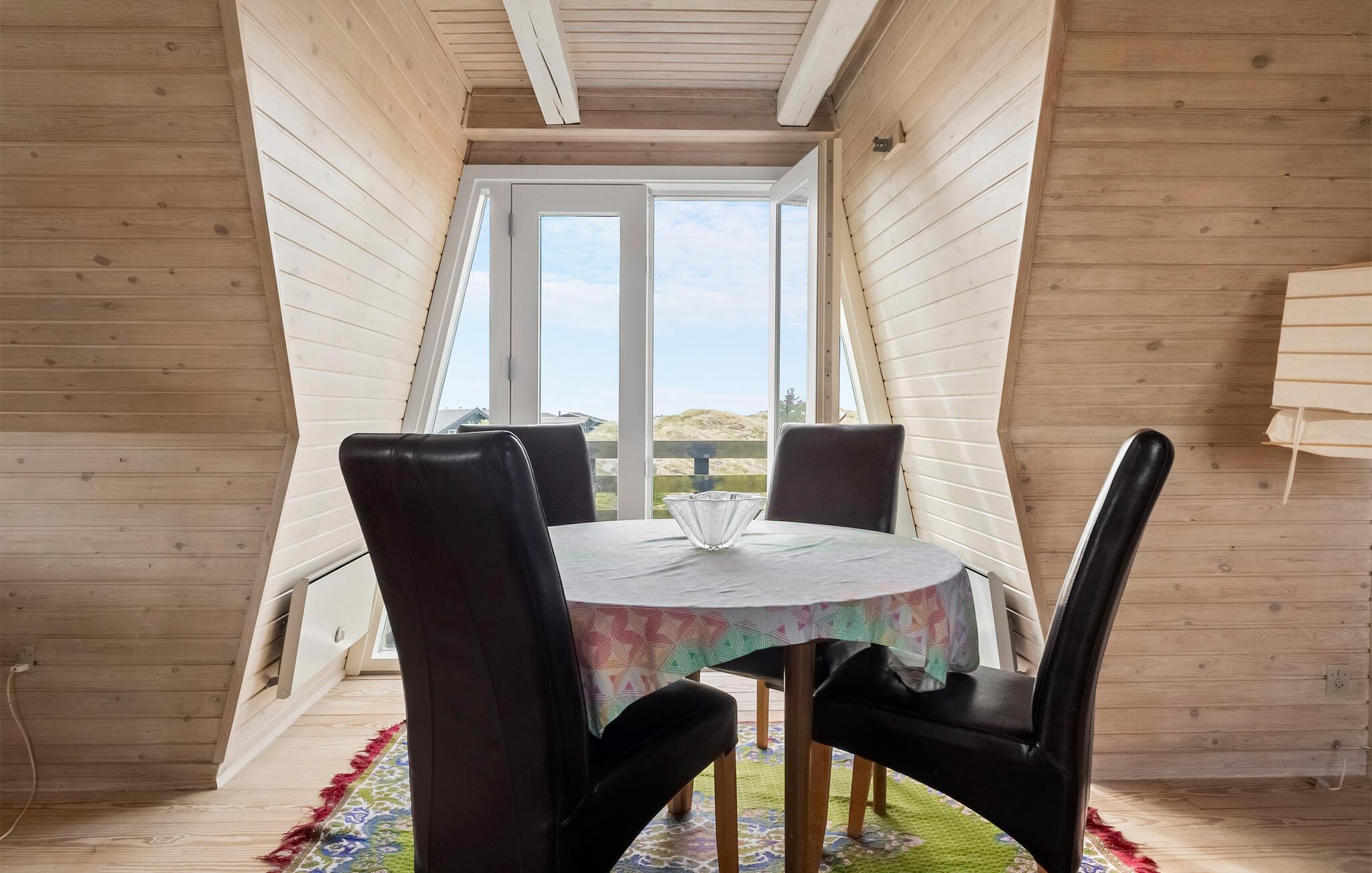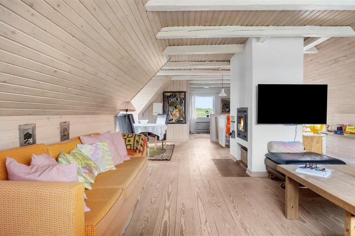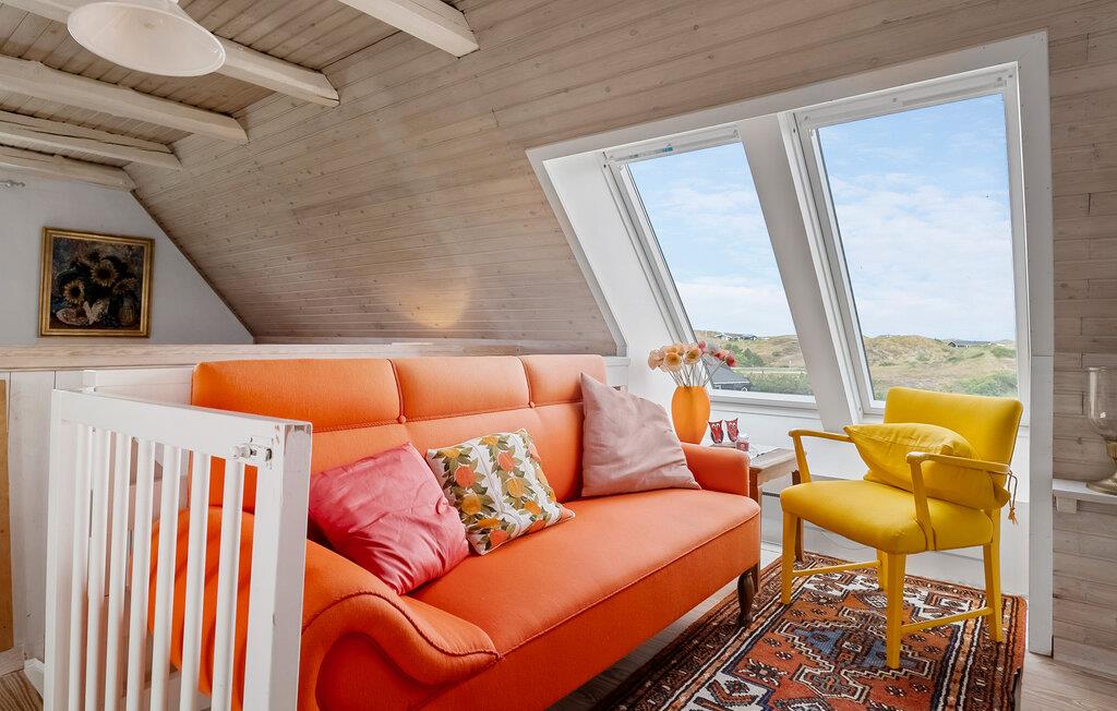Geniet van het panoramische uitzicht over de duinen en het fjord in dit rietgedekte vakantiehuis met een bijzondere charme.