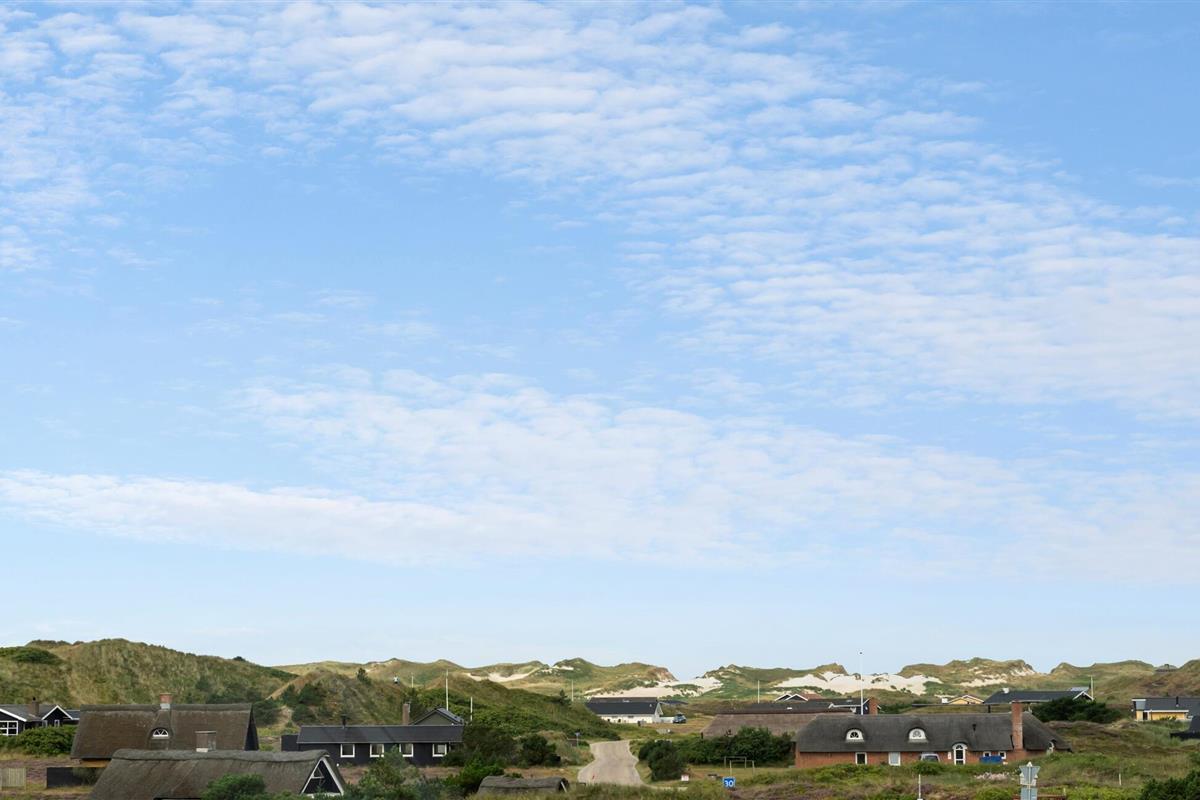 Rietgedekt vakantiehuis met panoramisch uitzicht op duinen en Ringkøbing Fjord, ideaal voor rust en natuur.