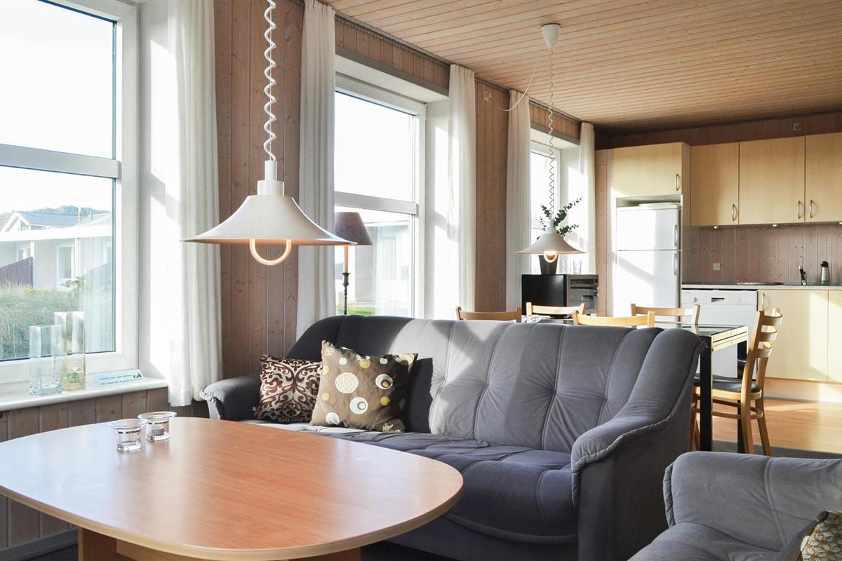Mooie, lichte vakantiewoning in Skodbjerge met een prachtig panoramisch uitzicht over Ringkøbing Fjord, hier kunt u genieten van de zonsopgang over het water. Met 800 m afstand tot de Noordzee bent u niet ver van kilometerslange stranden en het geluid van golven. Het Skodjerge gebied wordt gekenmerkt door een mooi strand en grote duingebieden, waar u in de zomer kunt zwemmen en het hele jaar door ontspannende wandelingen kunt maken.