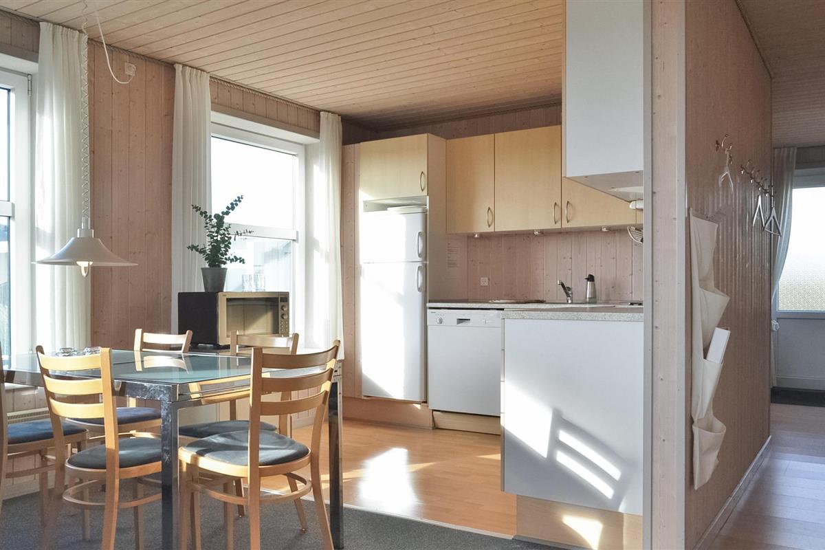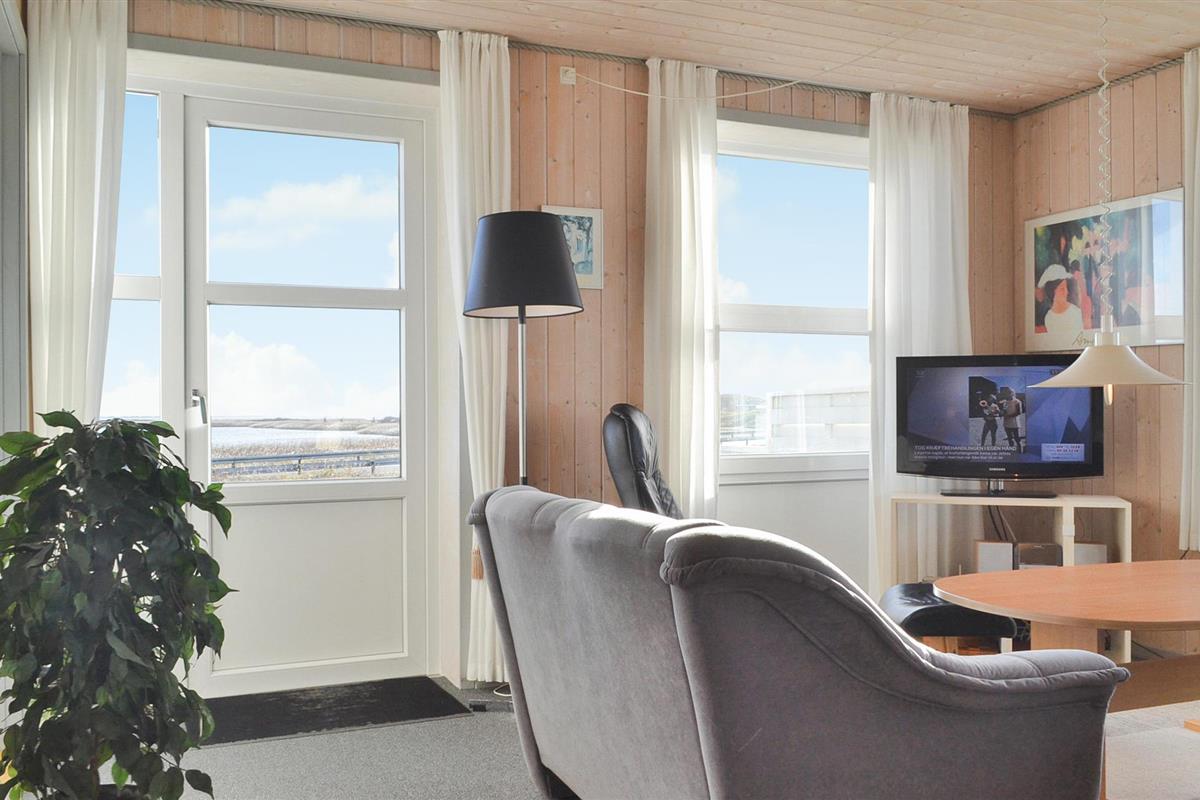 In de woonkamer, die in verbinding staat met de open, goed uitgeruste keuken, heeft u een prachtige lichtinval en een panoramisch uitzicht over het water. Het interieur van het appartement is licht, goed onderhouden en gezellig. Er zijn drie slaapkamers, twee met tweepersoonsbedden en één met twee eenpersoonsbedden. In de badkamer bevindt zich een sauna en een whirlpool waar u zich kunt opwarmen na een lange strandwandeling. De flat heeft twee terrassen, beide voorzien van tuinmeubilair. Vanaf het zuidelijke terras heeft u een prachtig uitzicht op Ringkøbing Fjord, het andere terras ligt op het westen, hier kunt u genieten van het uitzicht op het prachtige duinlandschap.