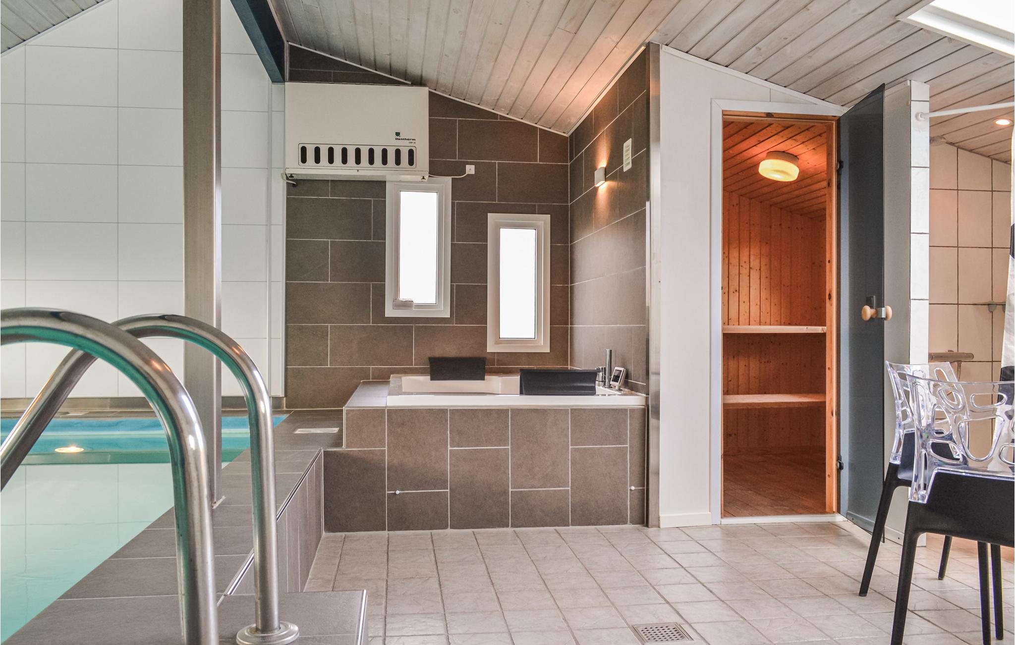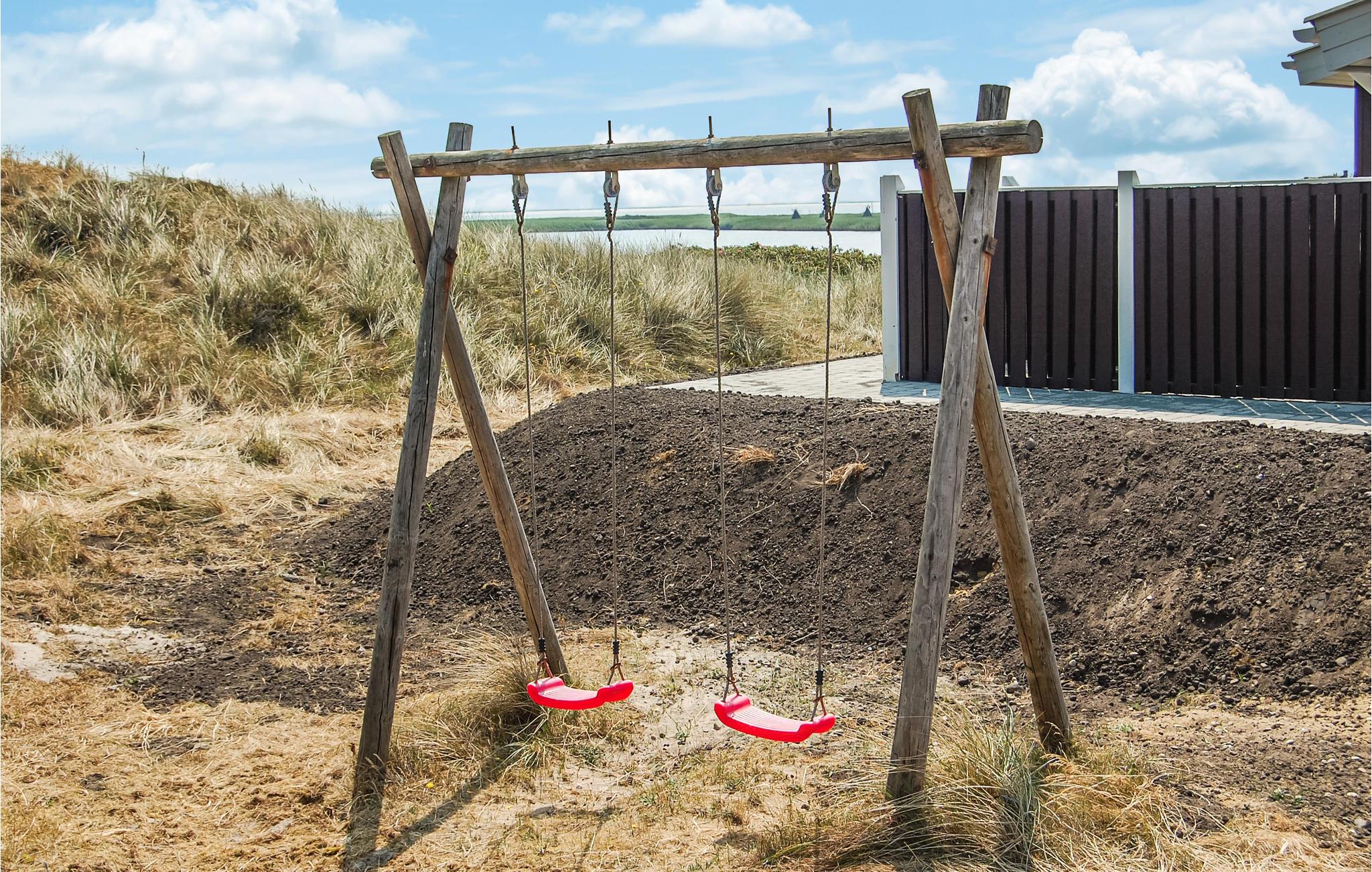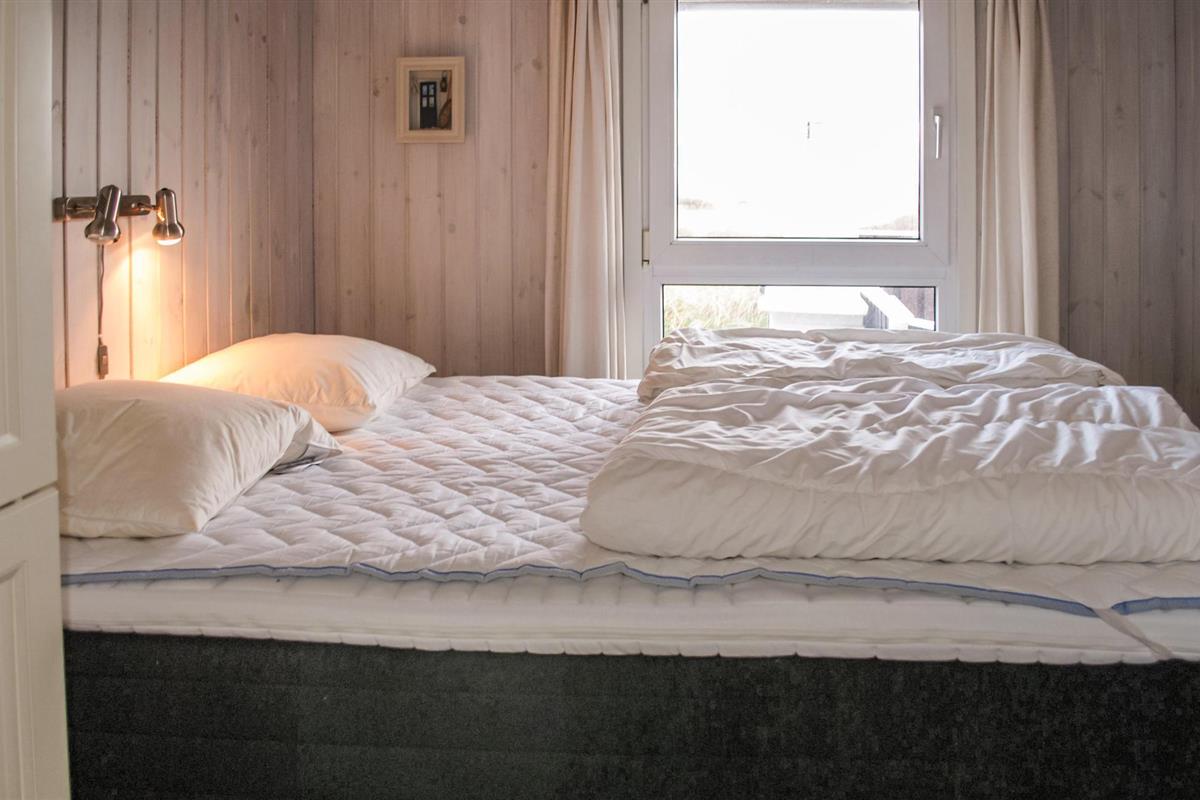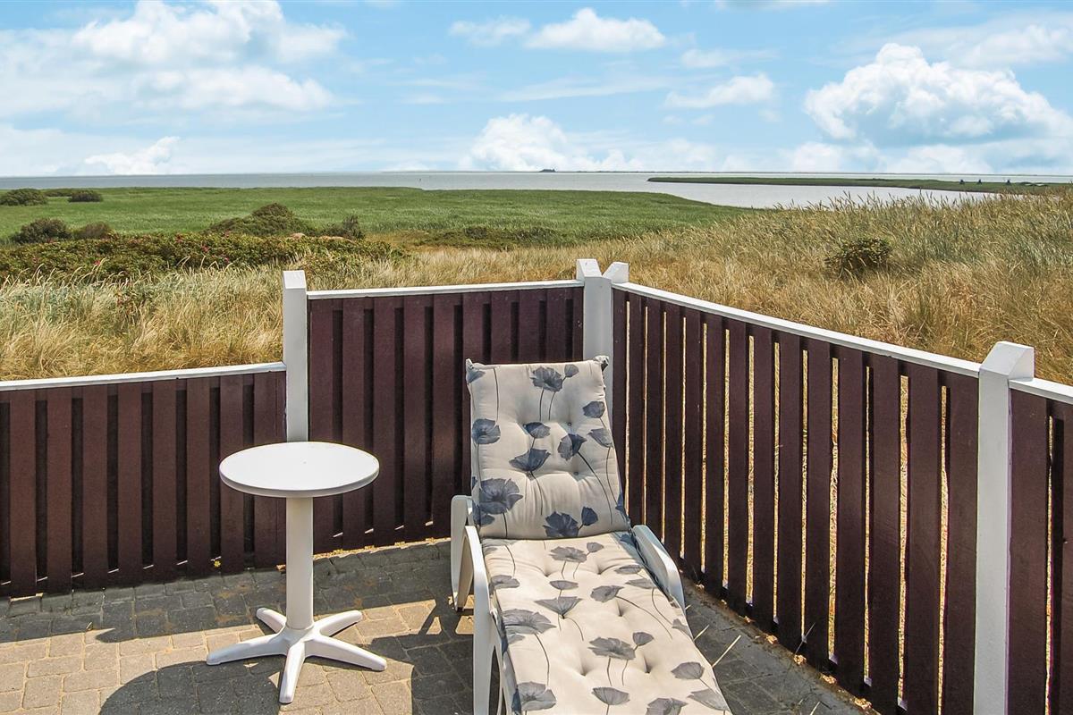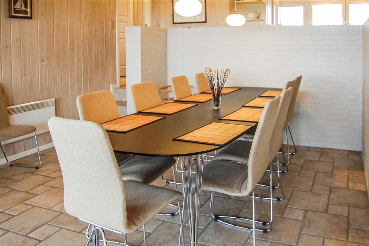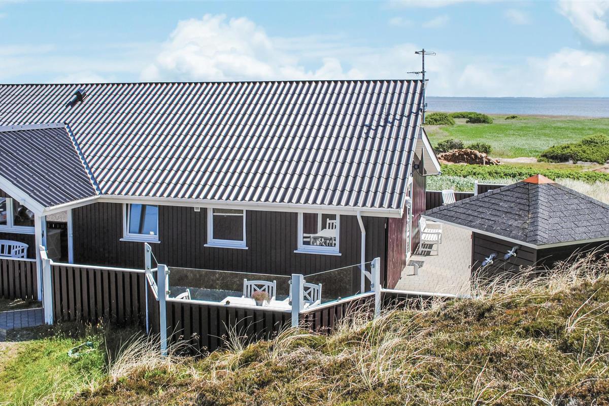 Dit mooie en verspringende vakantiehuis ligt hoog in de duinen. Vanuit de woonkamer en het zuidelijke of oostelijke terras heeft u uitzicht op het Ringkøbing fjord op slechts 100 meter van het huis. De goed uitgeruste keuken is modern en stijlvol ingericht. Het huis heeft deels betegelde vloeren, deels vloerbedekking, dus het is zowel praktisch als gezellig. Plons rond in het 17 vierkante meter grote zwembad of ontspan in de whirlpool voor twee. Als je een sauna neemt, heb je ook uitzicht op het fjord. Vanaf de zuidelijke en oostelijke terrassen heeft u ook uitzicht op de fjord en op het gedeeltelijk overdekte westelijke terras kunt u ook genieten van de avondzon. Op verschillende stukken strand vindt u hier goede omstandigheden om te windsurfen.