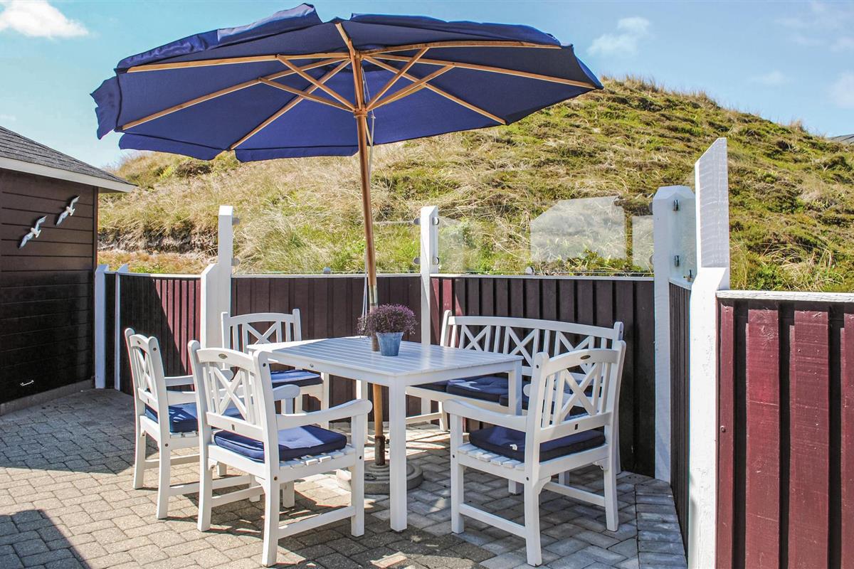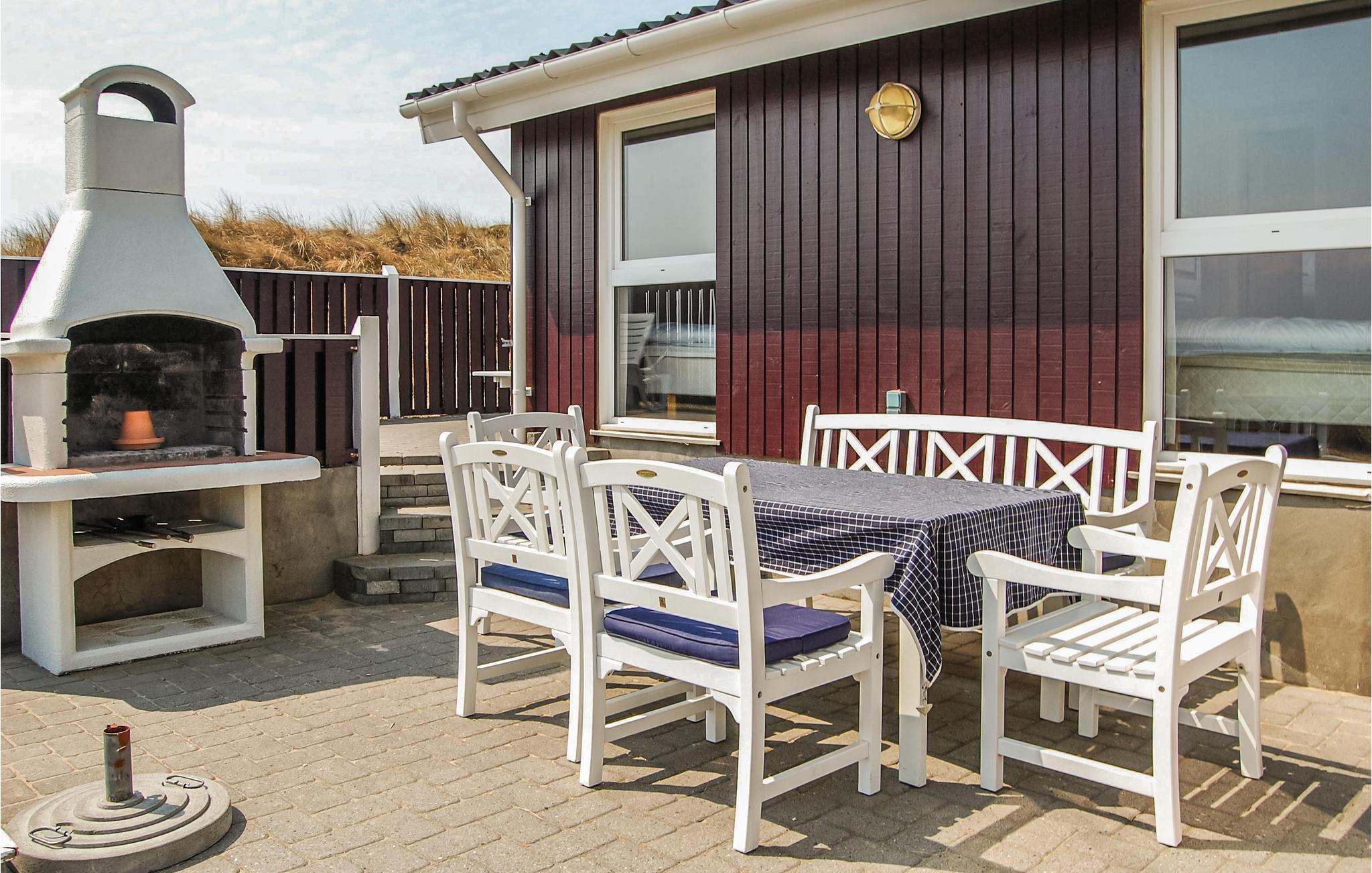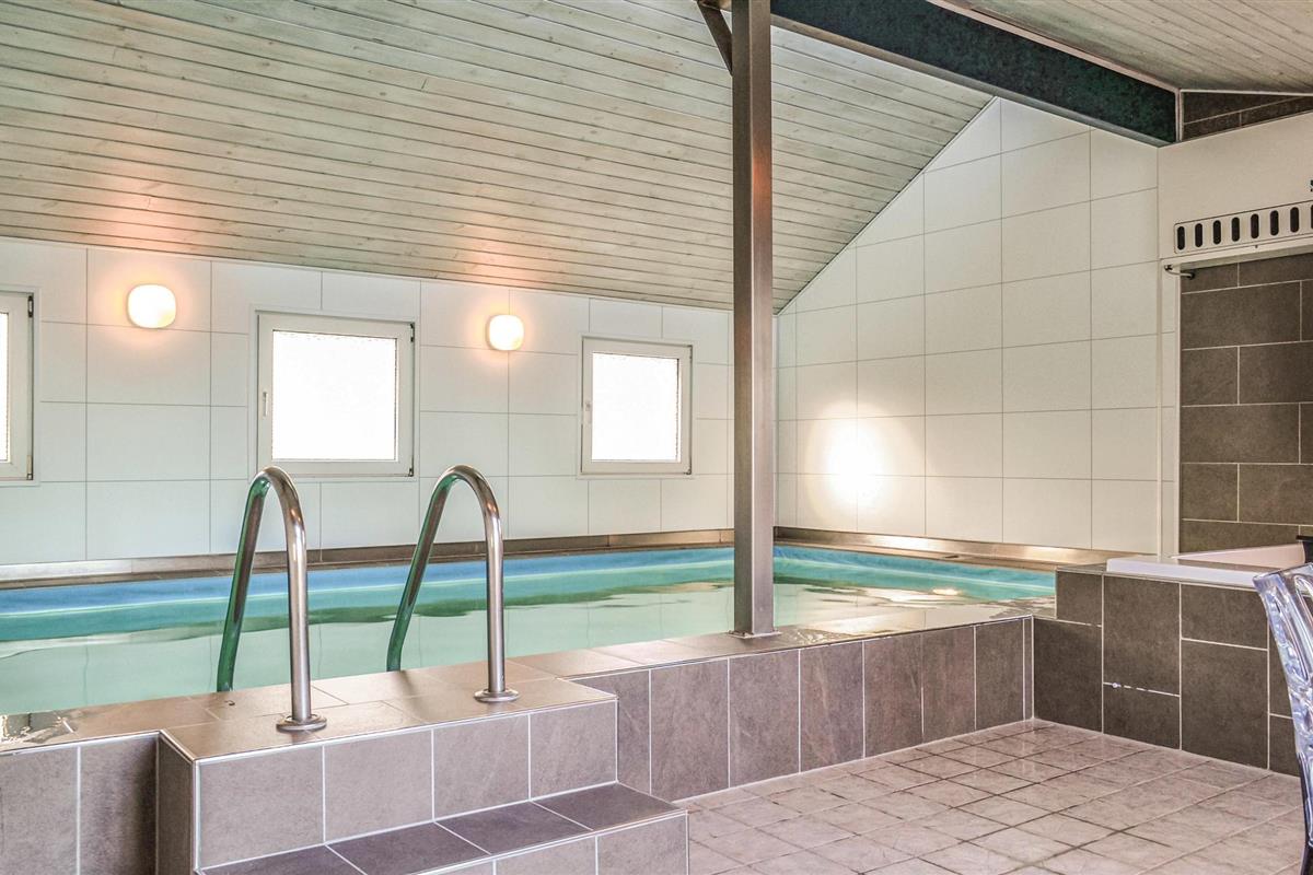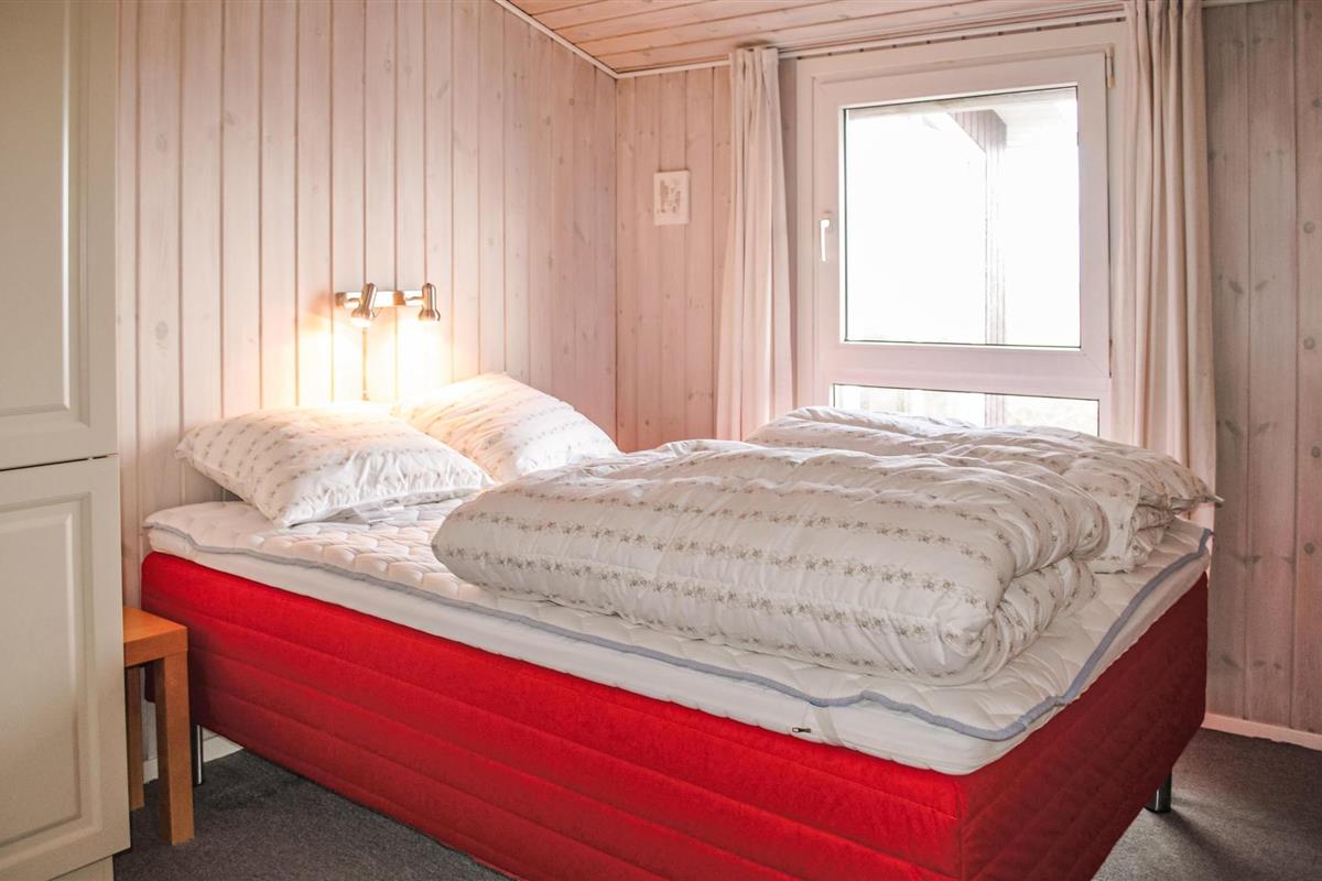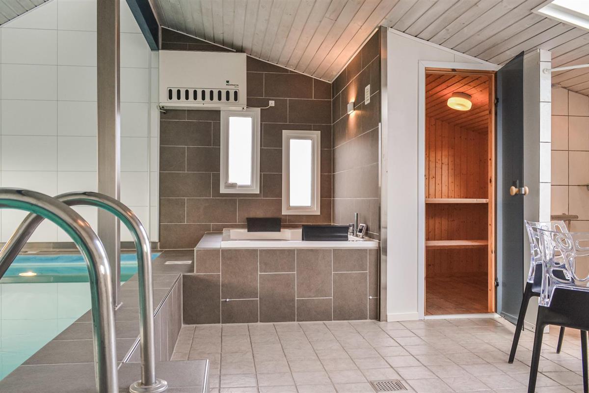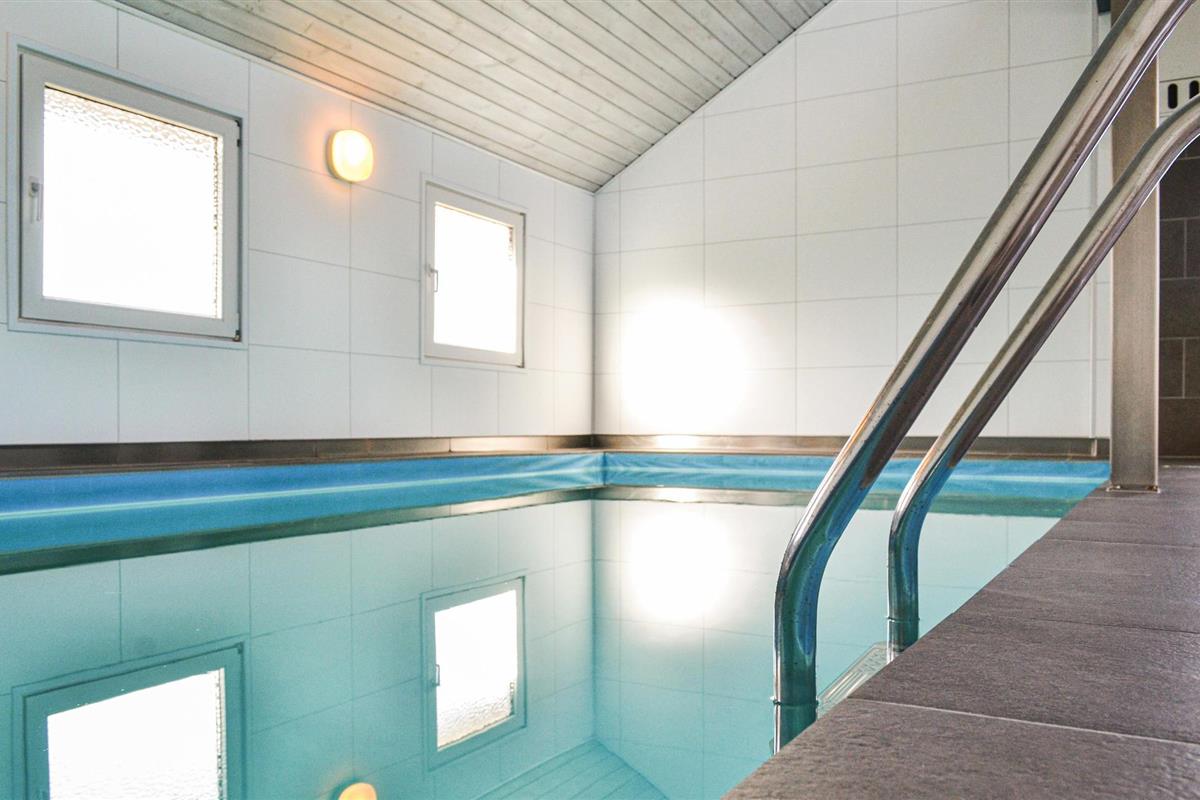 Dit mooie en verspringende vakantiehuis ligt hoog in de duinen. Vanuit de woonkamer en het zuidelijke of oostelijke terras heeft u uitzicht op het Ringkøbing fjord op slechts 100 meter van het huis. De goed uitgeruste keuken is modern en stijlvol ingericht. Het huis heeft deels betegelde vloeren, deels vloerbedekking, dus het is zowel praktisch als gezellig. Plons rond in het 17 vierkante meter grote zwembad of ontspan in de whirlpool voor twee. Als je een sauna neemt, heb je ook uitzicht op het fjord. Vanaf de zuidelijke en oostelijke terrassen heeft u ook uitzicht op de fjord en op het gedeeltelijk overdekte westelijke terras kunt u ook genieten van de avondzon. Op verschillende stukken strand vindt u hier goede omstandigheden om te windsurfen.