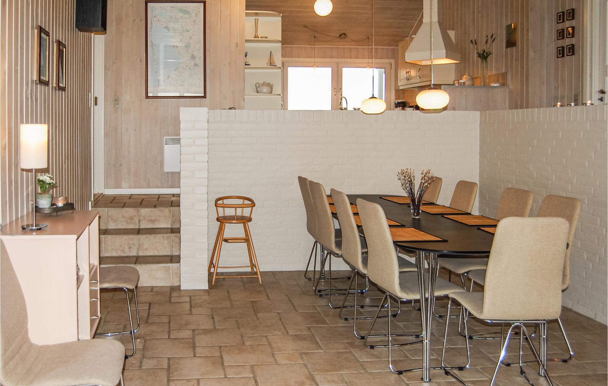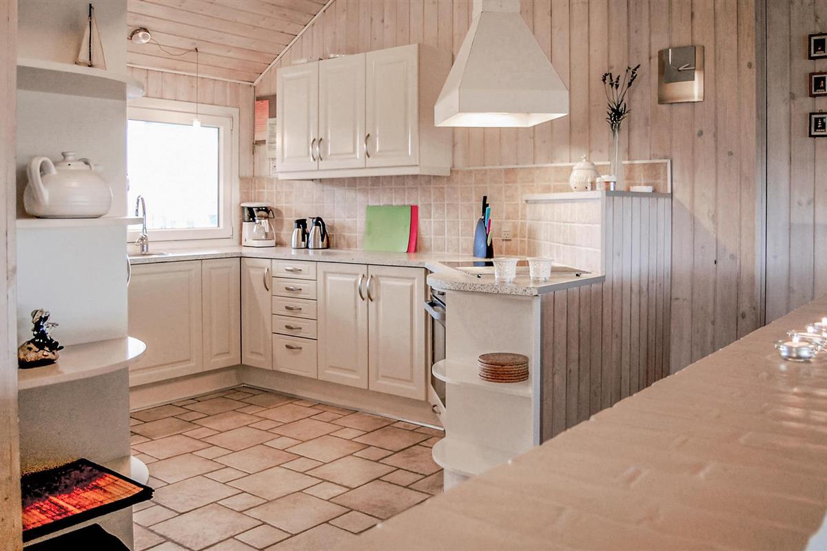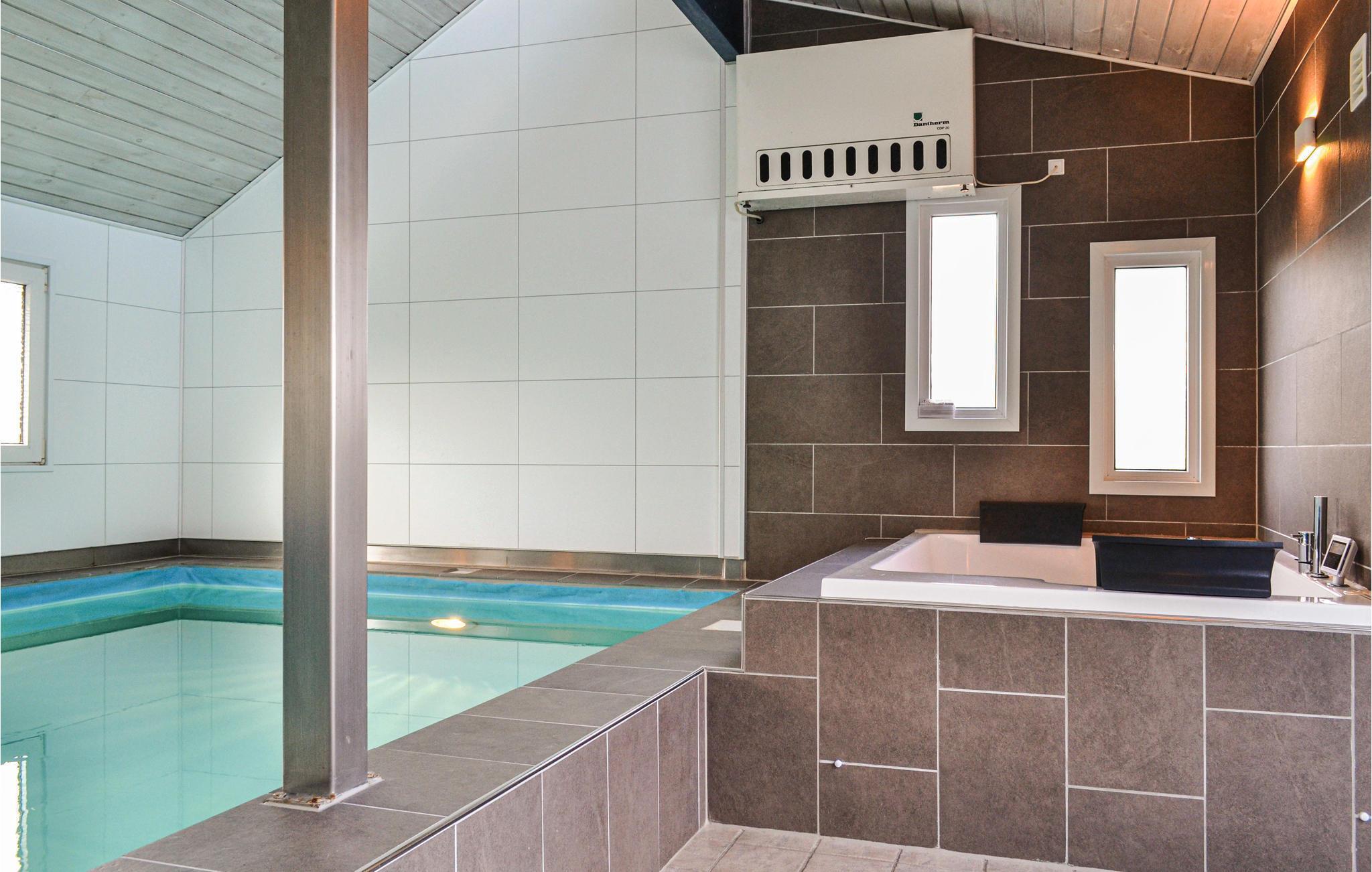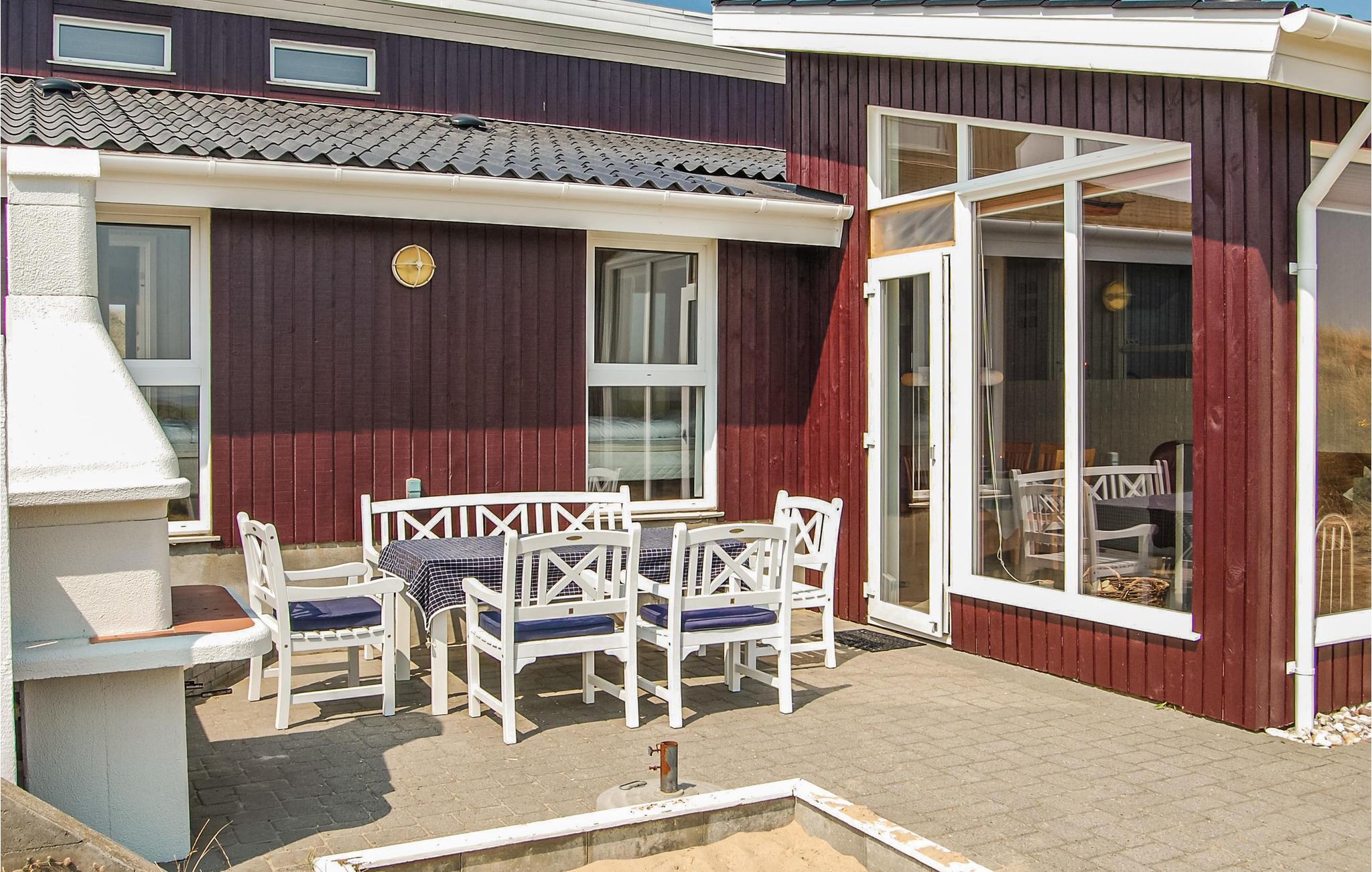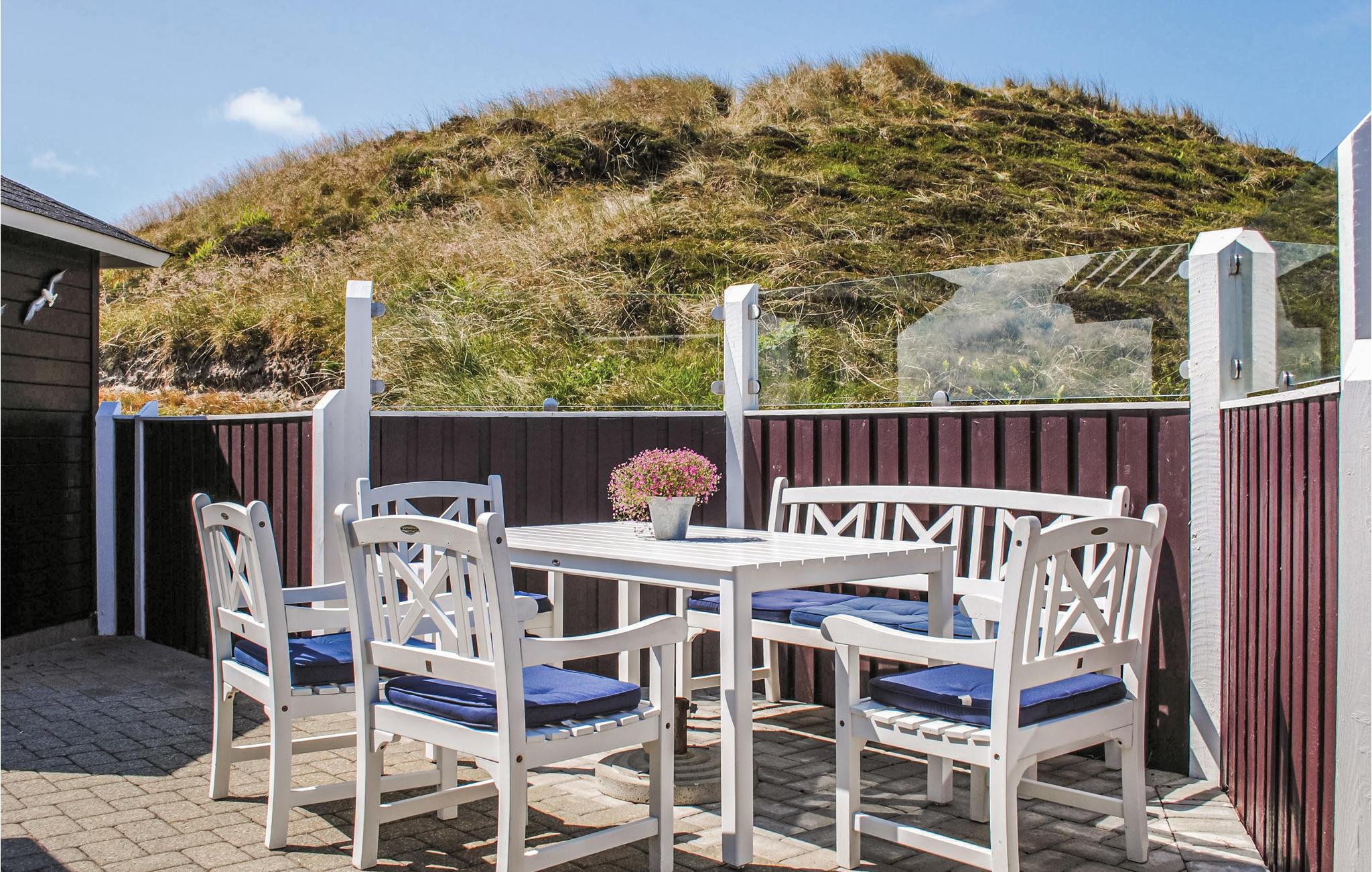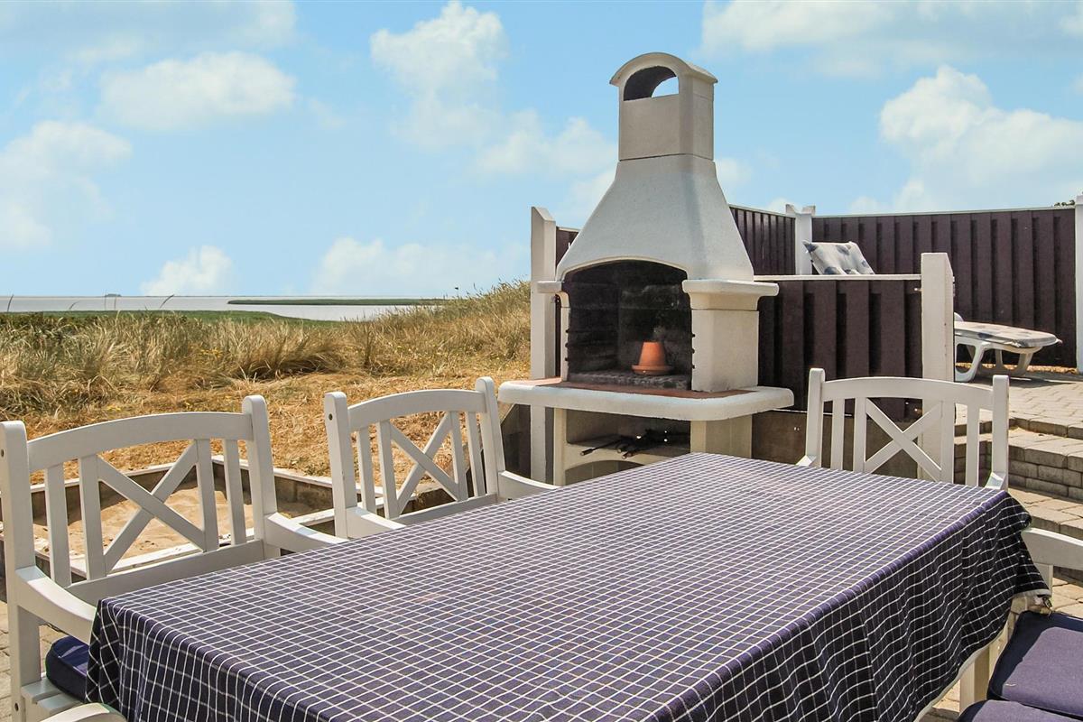 Dit mooie en verspringende vakantiehuis ligt hoog in de duinen. Vanuit de woonkamer en het zuidelijke of oostelijke terras heeft u uitzicht op het Ringkøbing fjord op slechts 100 meter van het huis. De goed uitgeruste keuken is modern en stijlvol ingericht. Het huis heeft deels betegelde vloeren, deels vloerbedekking, dus het is zowel praktisch als gezellig. Plons rond in het 17 vierkante meter grote zwembad of ontspan in de whirlpool voor twee. Als je een sauna neemt, heb je ook uitzicht op het fjord. Vanaf de zuidelijke en oostelijke terrassen heeft u ook uitzicht op de fjord en op het gedeeltelijk overdekte westelijke terras kunt u ook genieten van de avondzon. Op verschillende stukken strand vindt u hier goede omstandigheden om te windsurfen.