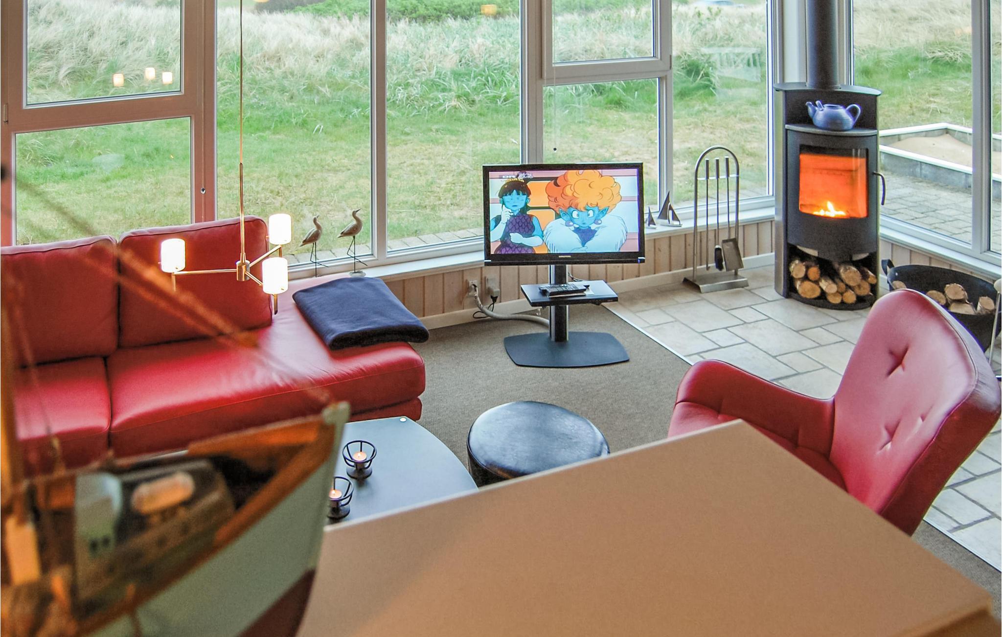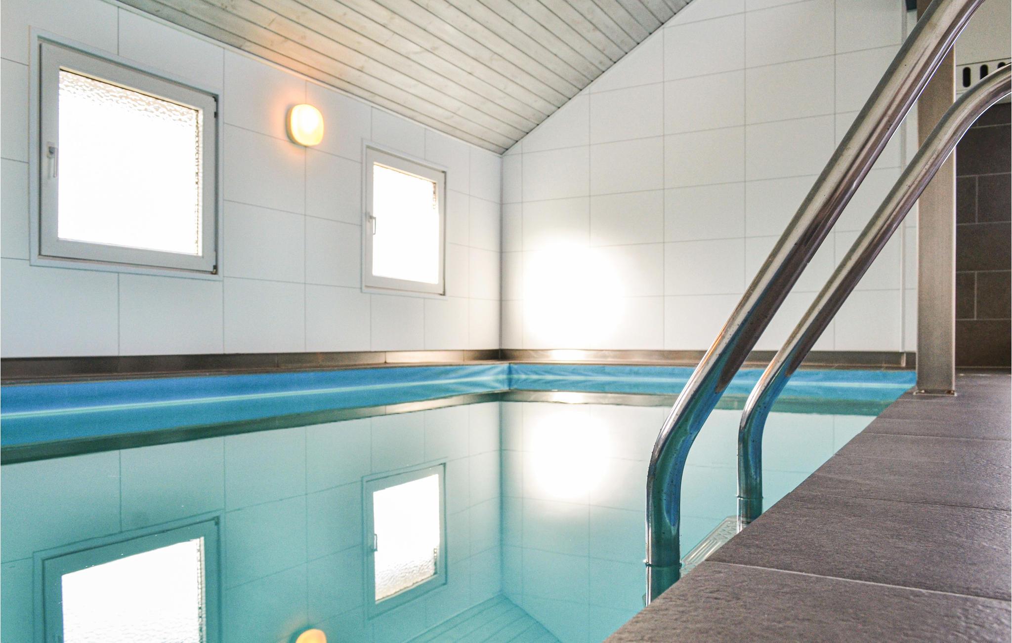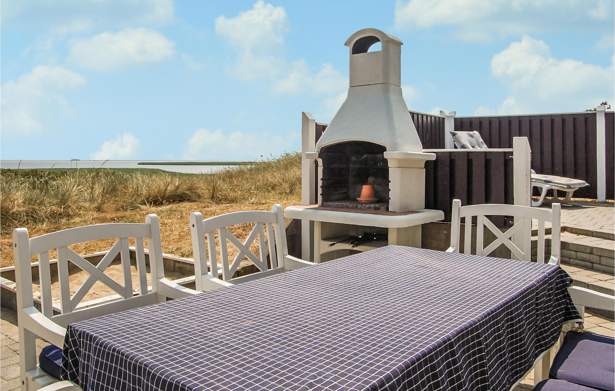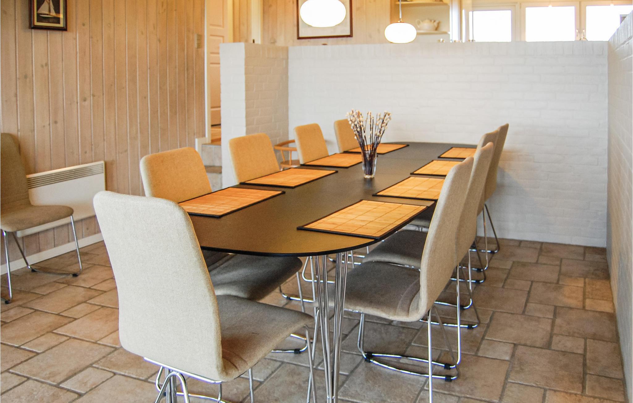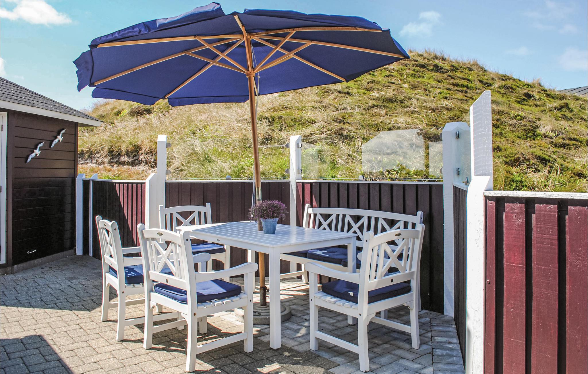Dit mooie en verspringende vakantiehuis ligt hoog in de duinen. Vanuit de woonkamer en het zuidelijke of oostelijke terras heeft u uitzicht op het Ringkøbing fjord op slechts 100 meter van het huis. De goed uitgeruste keuken is modern en stijlvol ingericht. Het huis heeft deels betegelde vloeren, deels vloerbedekking, dus het is zowel praktisch als gezellig. Plons rond in het 17 vierkante meter grote zwembad of ontspan in de whirlpool voor twee. Als je een sauna neemt, heb je ook uitzicht op het fjord. Vanaf de zuidelijke en oostelijke terrassen heeft u ook uitzicht op de fjord en op het gedeeltelijk overdekte westelijke terras kunt u ook genieten van de avondzon. Op verschillende stukken strand vindt u hier goede omstandigheden om te windsurfen.