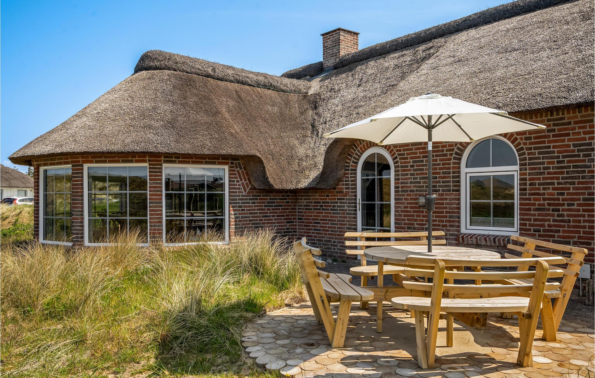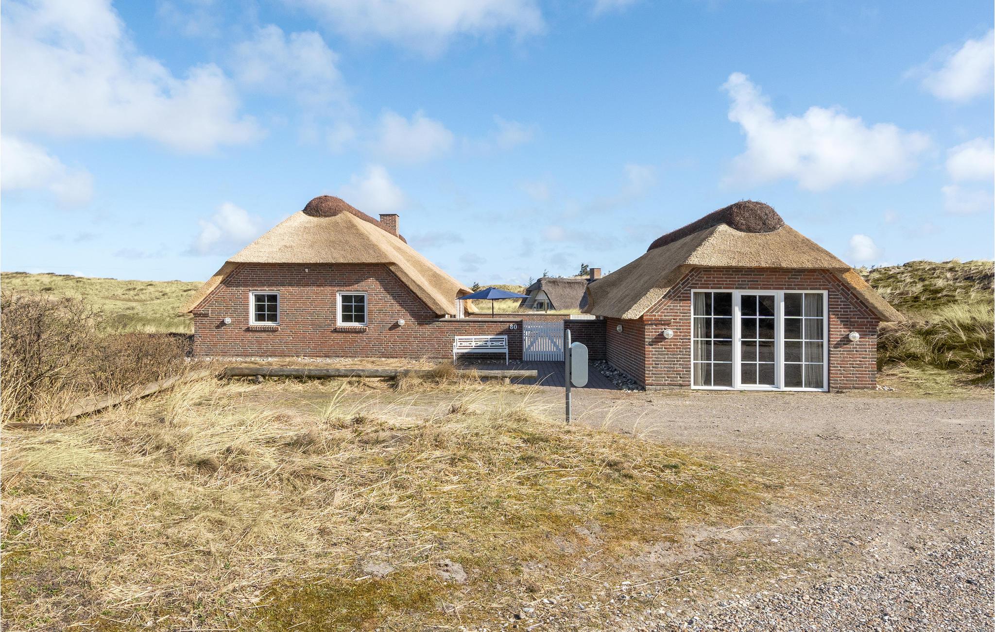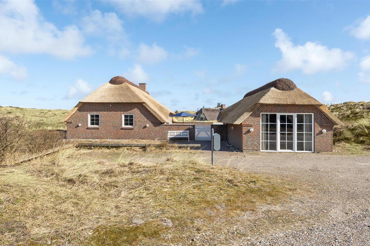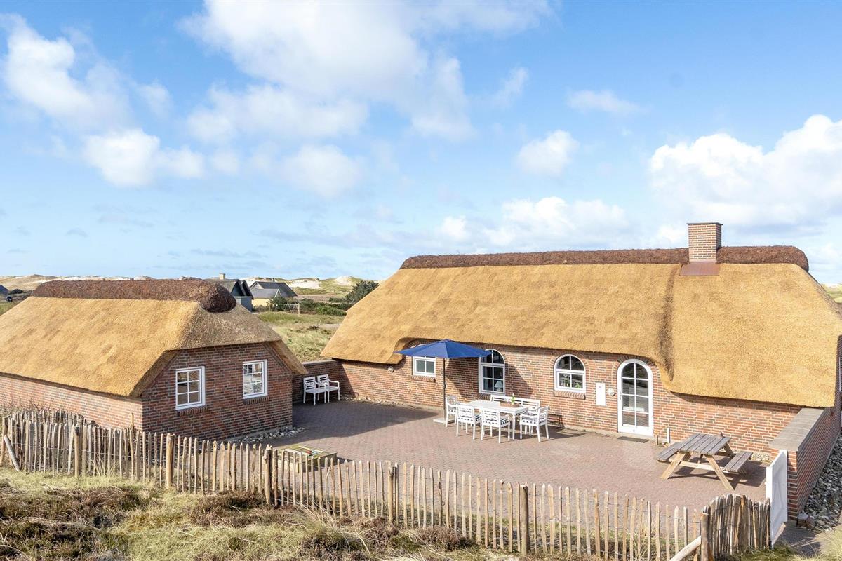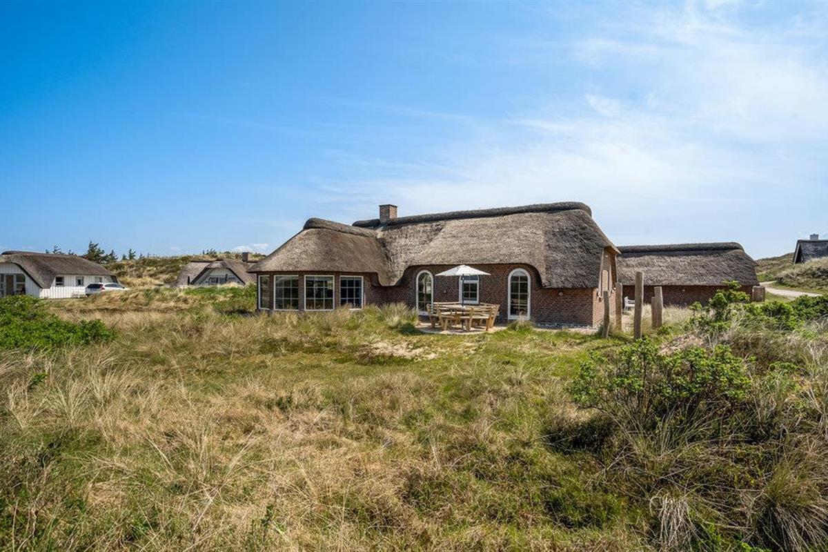 Mooie en ruime rietgedekte woning op een uitzichtvrij duingrondstuk. Het is zeer ruim, de slaapkamers en de woonkamer zijn zeer groot. De woonkamer, die open staat voor de keuken, heeft een grote raampartij aan de voorkant, die zorgt voor een goede lichtinval en een prachtig uitzicht over het duinlandschap. Een van de twee badkamers heeft een 5-persoons whirlpool en een sauna. Het huis heeft een groot en goed afgeschermd terras. In de ligstoelen zult u heerlijke uren doorbrengen. Het huis ligt vlakbij een groot natuurgebied en is ideaal voor natuurliefhebbers. Het natuurgebied reikt tot aan het strand. U kunt ook gemakkelijk het fietspad bereiken dat van Hvide Sande naar Nymindegab loopt. Bij de garage is een wasruimte met bijkeuken, wasmachine en droger. Hier vindt u ook een extra koelkast en vriezer.
