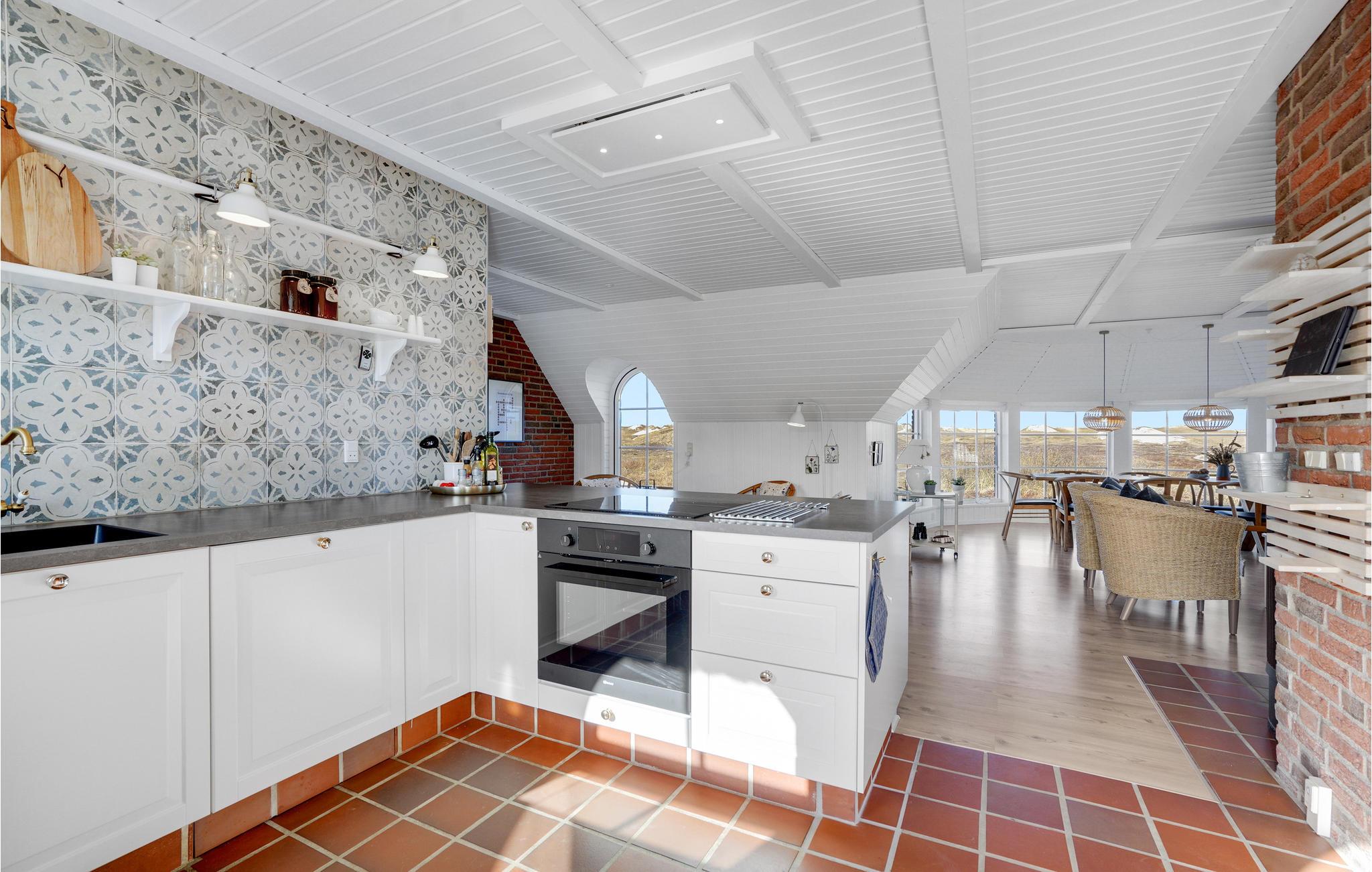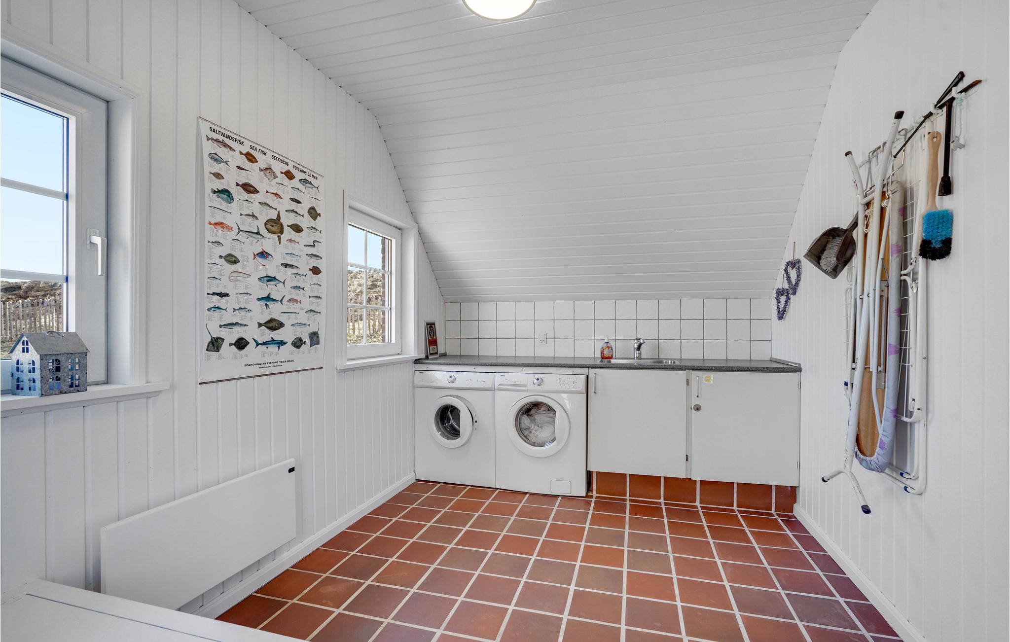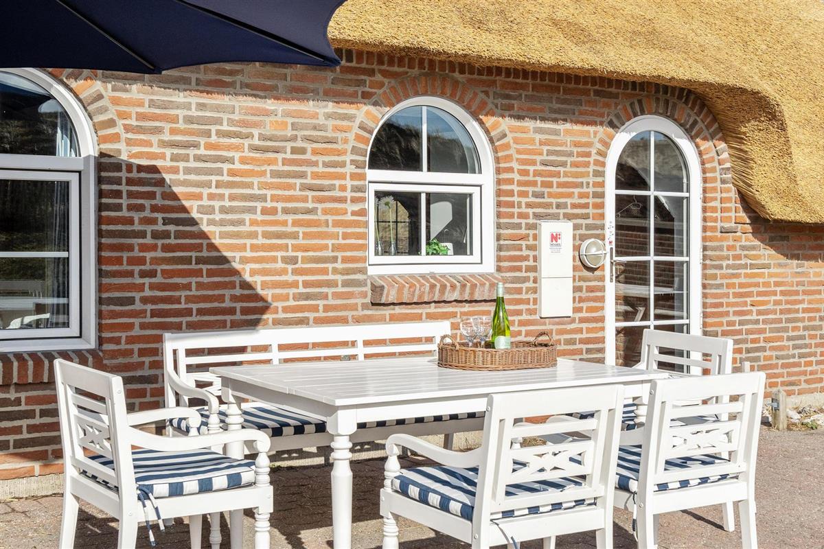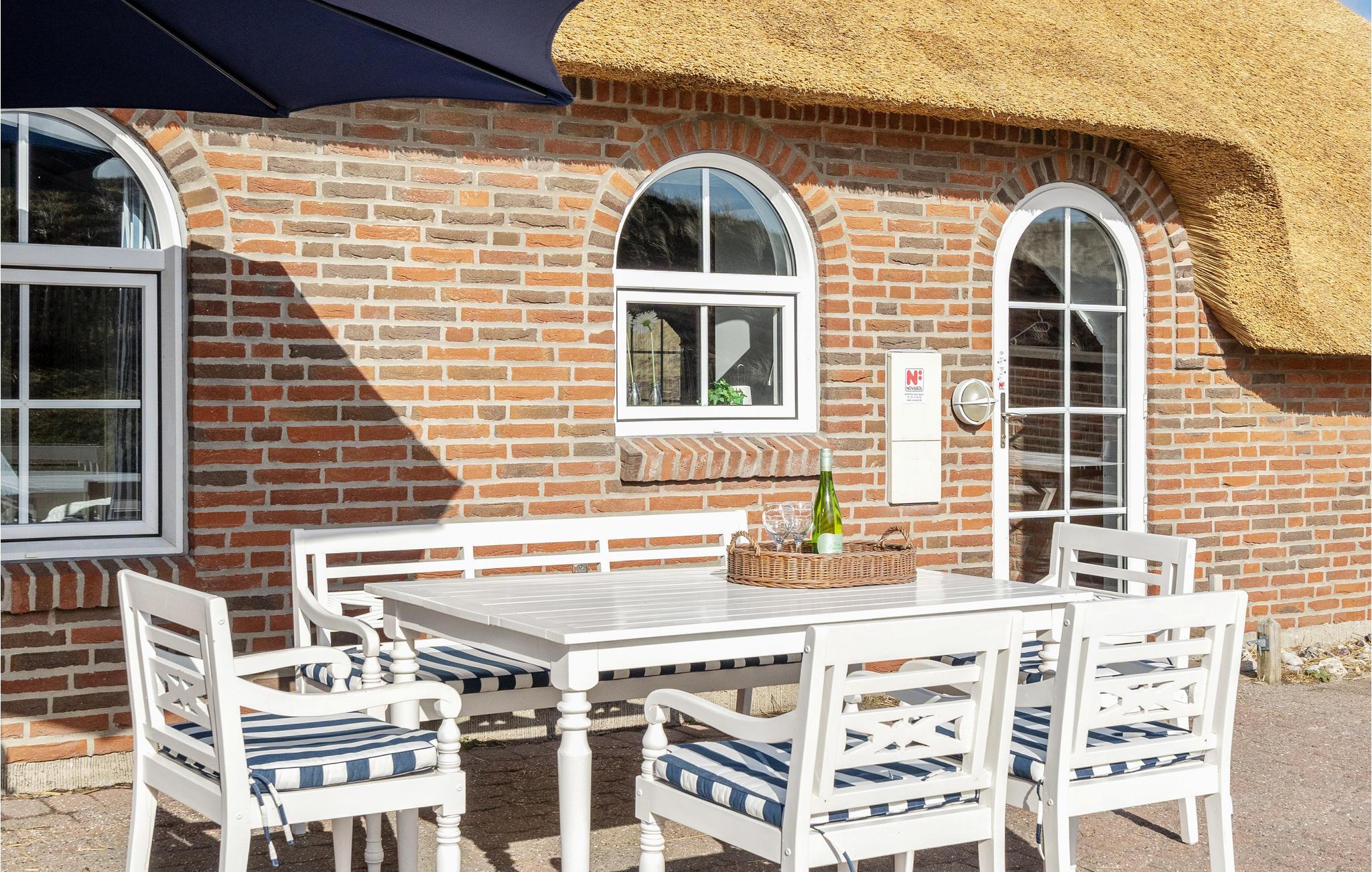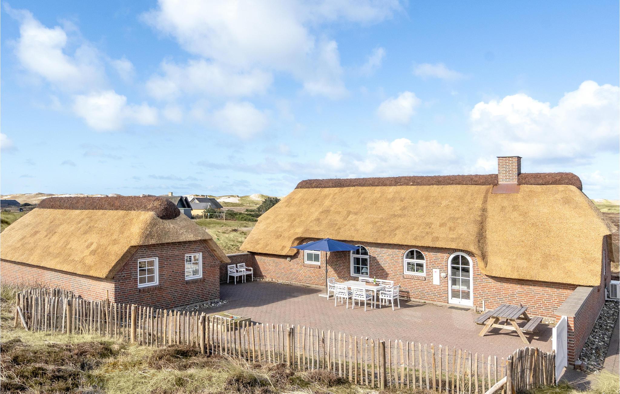 Mooie en ruime rietgedekte woning op een uitzichtvrij duingrondstuk. Het is zeer ruim, de slaapkamers en de woonkamer zijn zeer groot. De woonkamer, die open staat voor de keuken, heeft een grote raampartij aan de voorkant, die zorgt voor een goede lichtinval en een prachtig uitzicht over het duinlandschap. Een van de twee badkamers heeft een 5-persoons whirlpool en een sauna. Het huis heeft een groot en goed afgeschermd terras. In de ligstoelen zult u heerlijke uren doorbrengen. Het huis ligt vlakbij een groot natuurgebied en is ideaal voor natuurliefhebbers. Het natuurgebied reikt tot aan het strand. U kunt ook gemakkelijk het fietspad bereiken dat van Hvide Sande naar Nymindegab loopt. Bij de garage is een wasruimte met bijkeuken, wasmachine en droger. Hier vindt u ook een extra koelkast en vriezer.