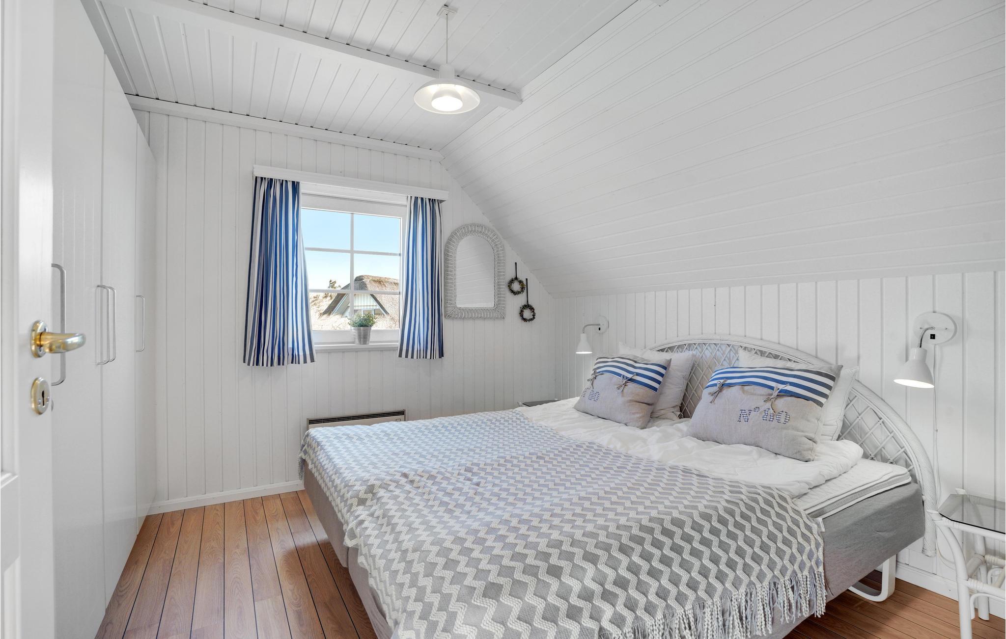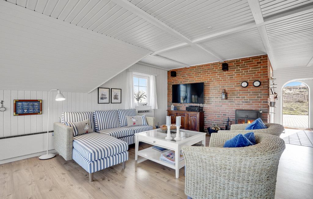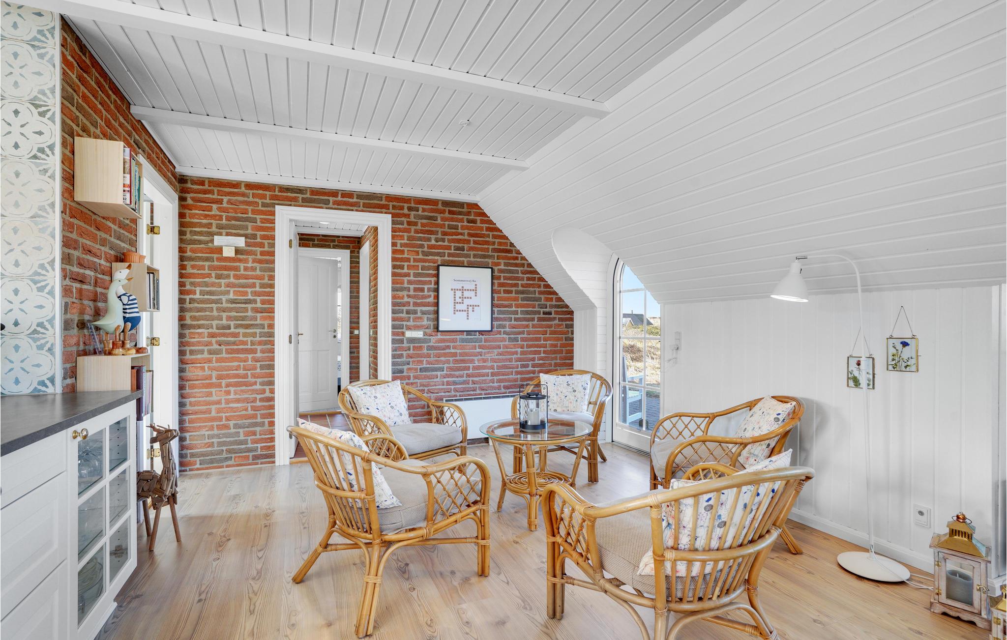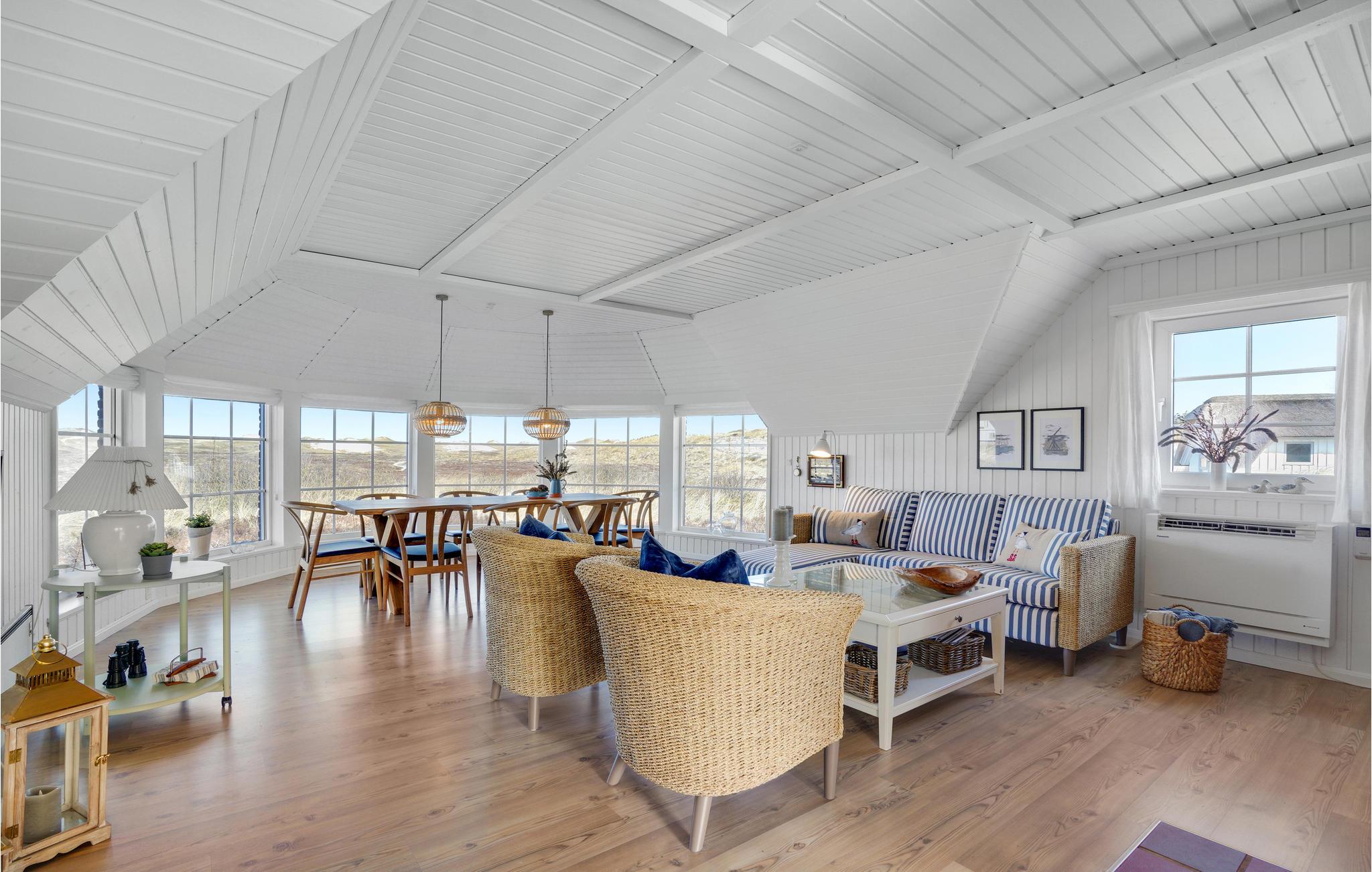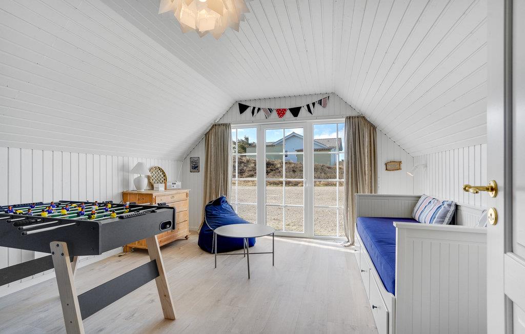 Mooie en ruime rietgedekte woning op een uitzichtvrij duingrondstuk. Het is zeer ruim, de slaapkamers en de woonkamer zijn zeer groot. De woonkamer, die open staat voor de keuken, heeft een grote raampartij aan de voorkant, die zorgt voor een goede lichtinval en een prachtig uitzicht over het duinlandschap. Een van de twee badkamers heeft een 5-persoons whirlpool en een sauna. Het huis heeft een groot en goed afgeschermd terras. In de ligstoelen zult u heerlijke uren doorbrengen. Het huis ligt vlakbij een groot natuurgebied en is ideaal voor natuurliefhebbers. Het natuurgebied reikt tot aan het strand. U kunt ook gemakkelijk het fietspad bereiken dat van Hvide Sande naar Nymindegab loopt. Bij de garage is een wasruimte met bijkeuken, wasmachine en droger. Hier vindt u ook een extra koelkast en vriezer.