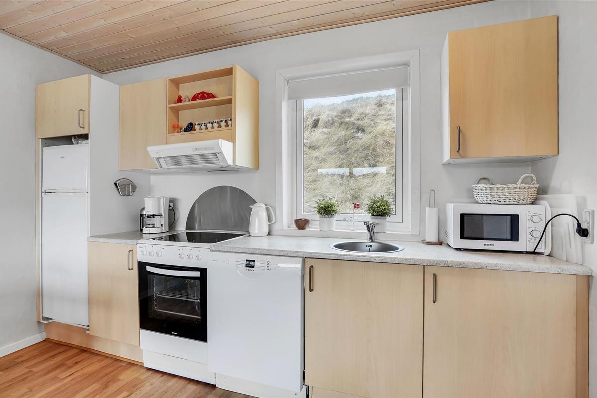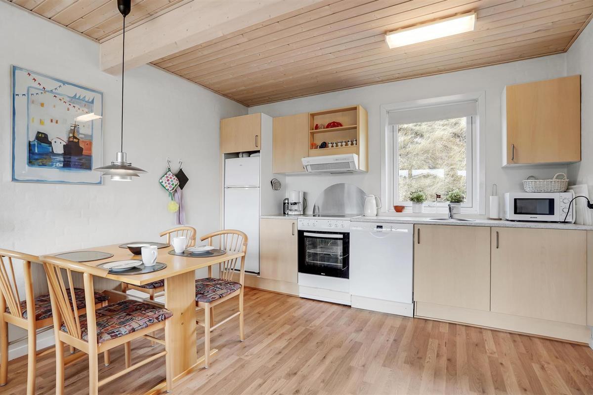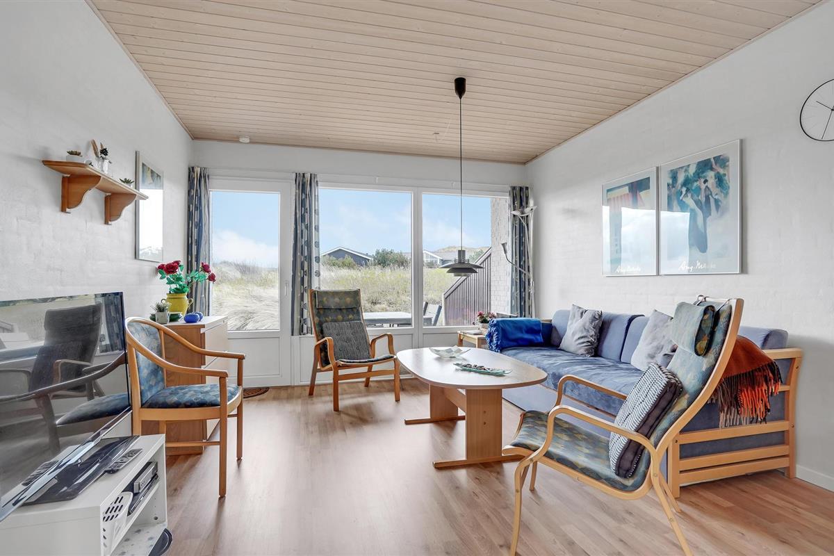 Mooi en ruim vakantiehuis, gelegen in een rustige omgeving in unieke natuur, en op korte afstand van het strand. Hier, direct tussen de Noordzee en Ringkøbing Fjord, is veel moois te beleven aan de fjord, de zee, de duinen en de heide. Het gebied is perfect voor verschillende activiteiten, zoals windsurfen, vissen, deltavliegen, fietsen en wandelen. De flat is comfortabel ingericht. Slaapkamer met tweepersoonsbed en stapelbed, de uittrekbare bank in de woonkamer biedt plaats aan twee personen. De woonkamer is verbonden met de keuken en biedt toegang tot een mooi terras met ligstoelen en tuinmeubelen. Vanuit de tuin leidt een wandelpad direct naar de Noordzee. De dichtstbijzijnde stad is Hvide Sande met diverse restaurants, gezellige havensfeer en vele gespecialiseerde winkels.