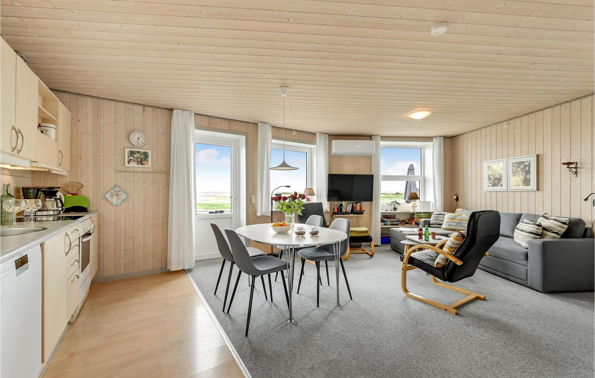 Goed onderhouden vakantiehuis met een prachtig uitzicht op Ringkøbing Fjord. Het heeft een centrale ligging in het gebied en wacht op u niet ver van de inkomende golven van de Noordzee, de lange witte stranden en de hoge duinen. Niet ver weg ligt het vissersdorp Hvide Sande met zijn haven, museum, goede winkels, restaurants en zomerleven. Het appartement is modern ingericht. Er is tuinmeubilair op beide terrassen, die op het oosten en westen liggen en uitnodigen tot een goed buitengevoel.