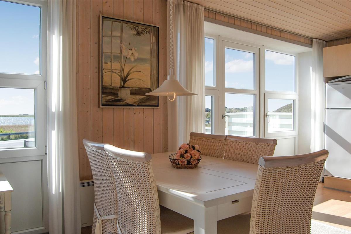 Dit vakantiehuis biedt een prachtig panorama op de Ringkøbing fjord vanuit de woonkamer, de keuken en het oostelijke terras. Op het westelijke terras kunt u van de avondzon genieten.