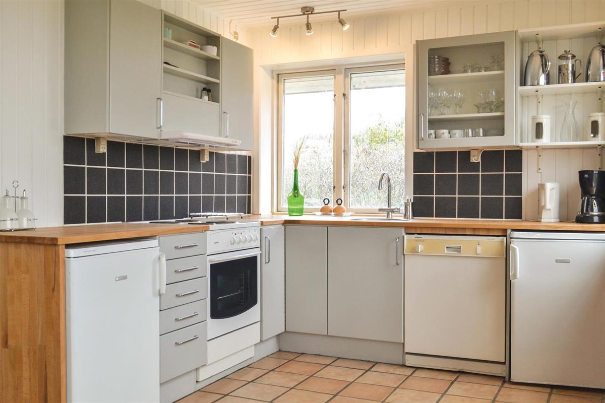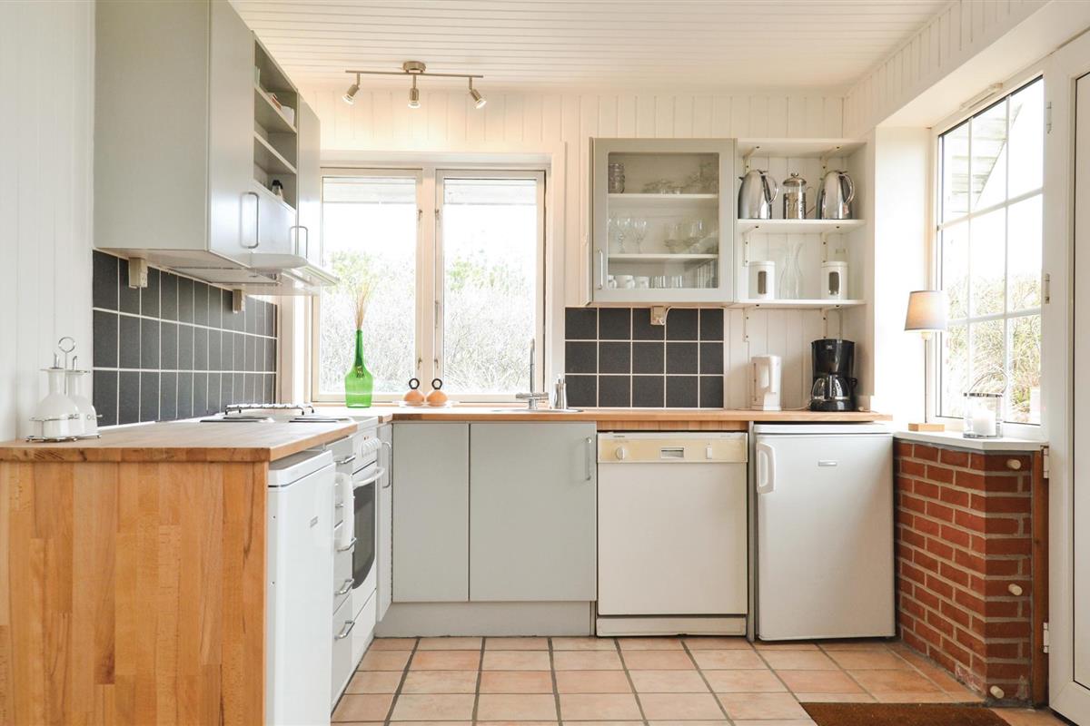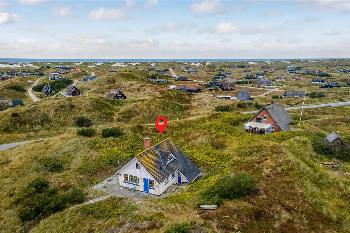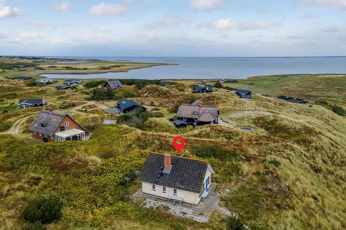 Charmant vakantiehuis bovenop een duin, met een fantastisch uitzicht op de fjord. In het eetgedeelte kunt u genieten van uw ochtendkoffie in de zon. Het huis is licht en gezellig ingericht. Er is een open haard in de keuken-woonkamer. Mooie slaapkamers en badkamer met wasmachine. Kleine berging voor schoenen en jassen. U zult zeker genieten van het doorbrengen van de zomerdagen op het terras, hier heeft u een prachtig uitzicht op de duinen en het fjord. Een trap leidt naar het huis, de auto wordt onderaan de trap geparkeerd. Hvide Sande is het dichtstbijzijnde stadje, het is levendig en heeft restaurants en winkels. U kunt direct vanaf de pier vissen. Diverse watersporten zijn mogelijk in het fjord, ook in de Noordzee, die in elk seizoen prachtig is.