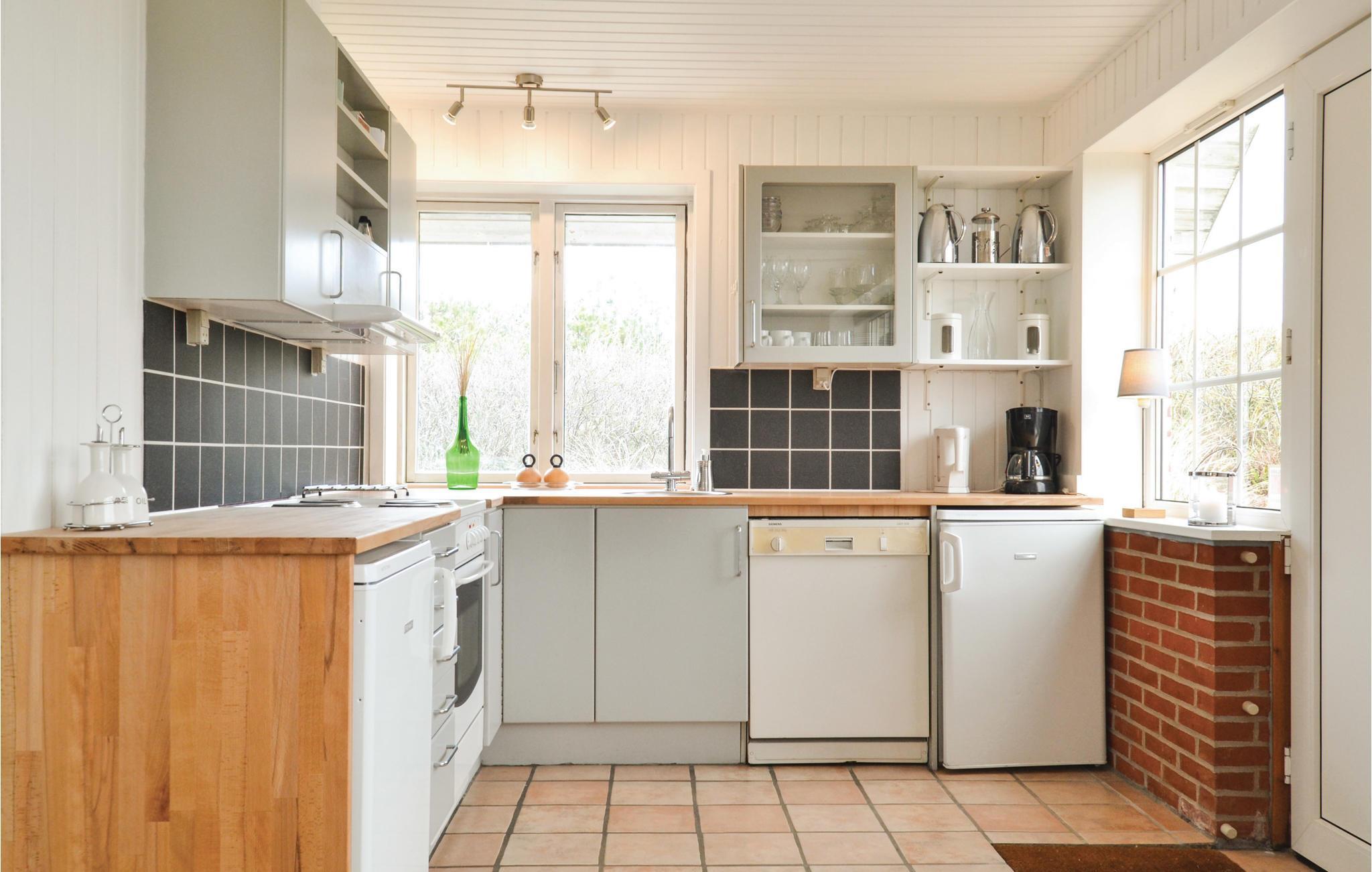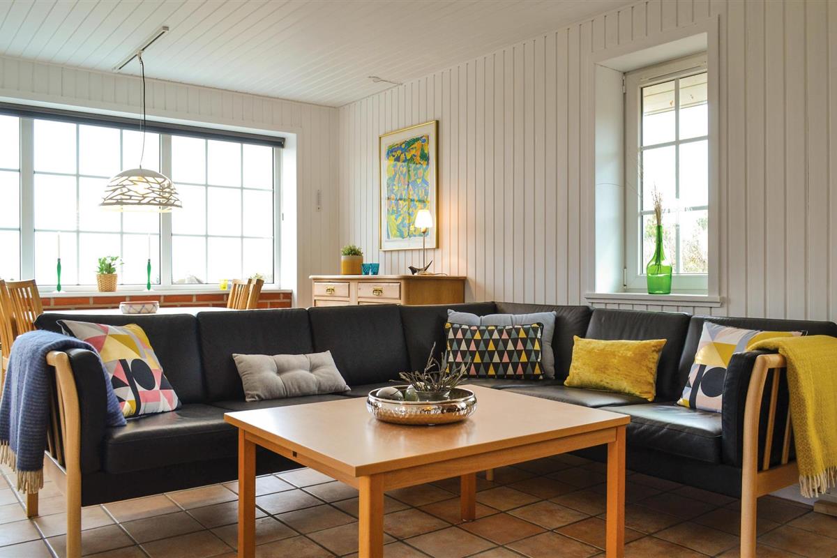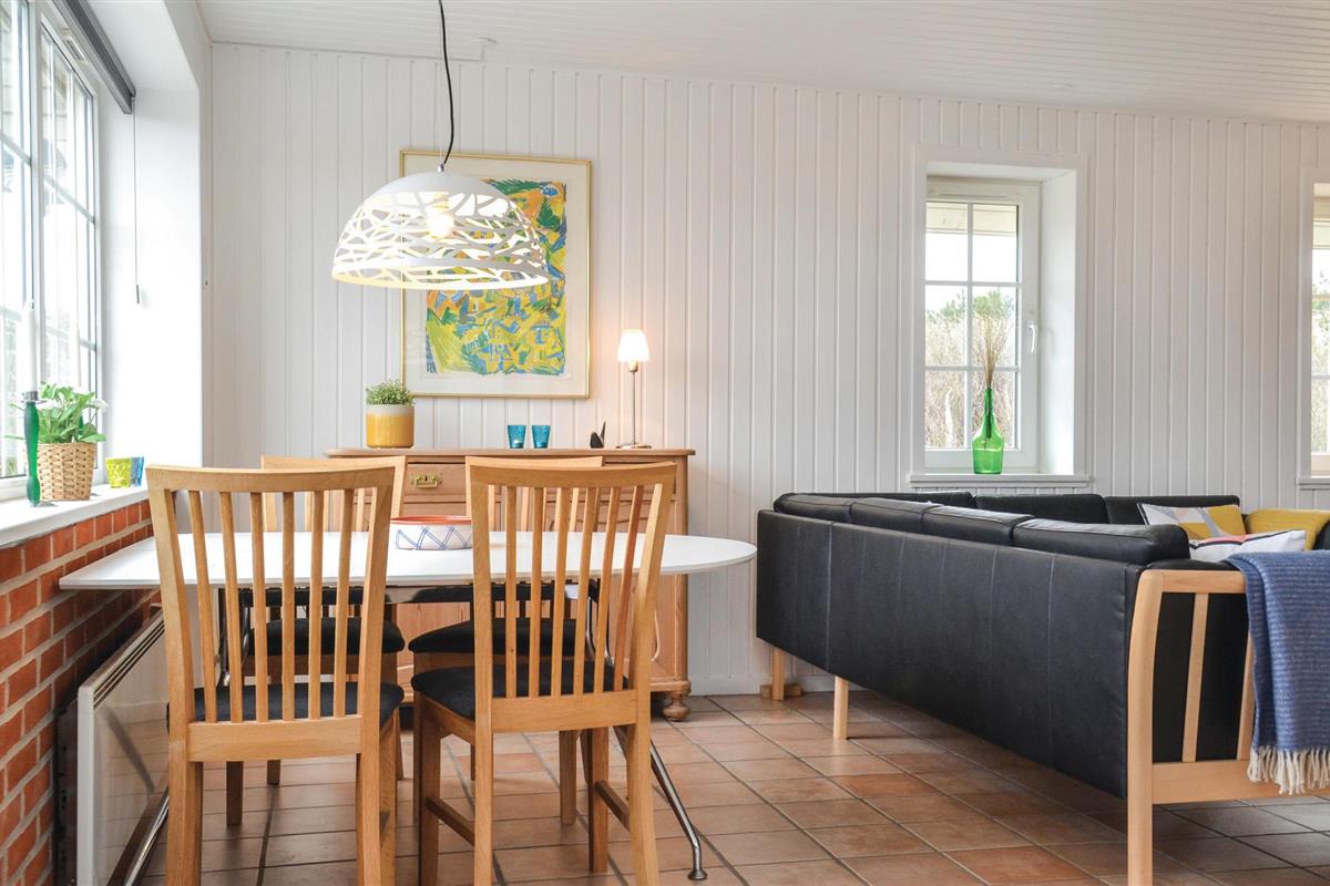 Charmant vakantiehuis bovenop een duin, met een fantastisch uitzicht op de fjord. In het eetgedeelte kunt u genieten van uw ochtendkoffie in de zon. Het huis is licht en gezellig ingericht. Er is een open haard in de keuken-woonkamer. Mooie slaapkamers en badkamer met wasmachine. Kleine berging voor schoenen en jassen. U zult zeker genieten van het doorbrengen van de zomerdagen op het terras, hier heeft u een prachtig uitzicht op de duinen en het fjord. Een trap leidt naar het huis, de auto wordt onderaan de trap geparkeerd. Hvide Sande is het dichtstbijzijnde stadje, het is levendig en heeft restaurants en winkels. U kunt direct vanaf de pier vissen. Diverse watersporten zijn mogelijk in het fjord, ook in de Noordzee, die in elk seizoen prachtig is.