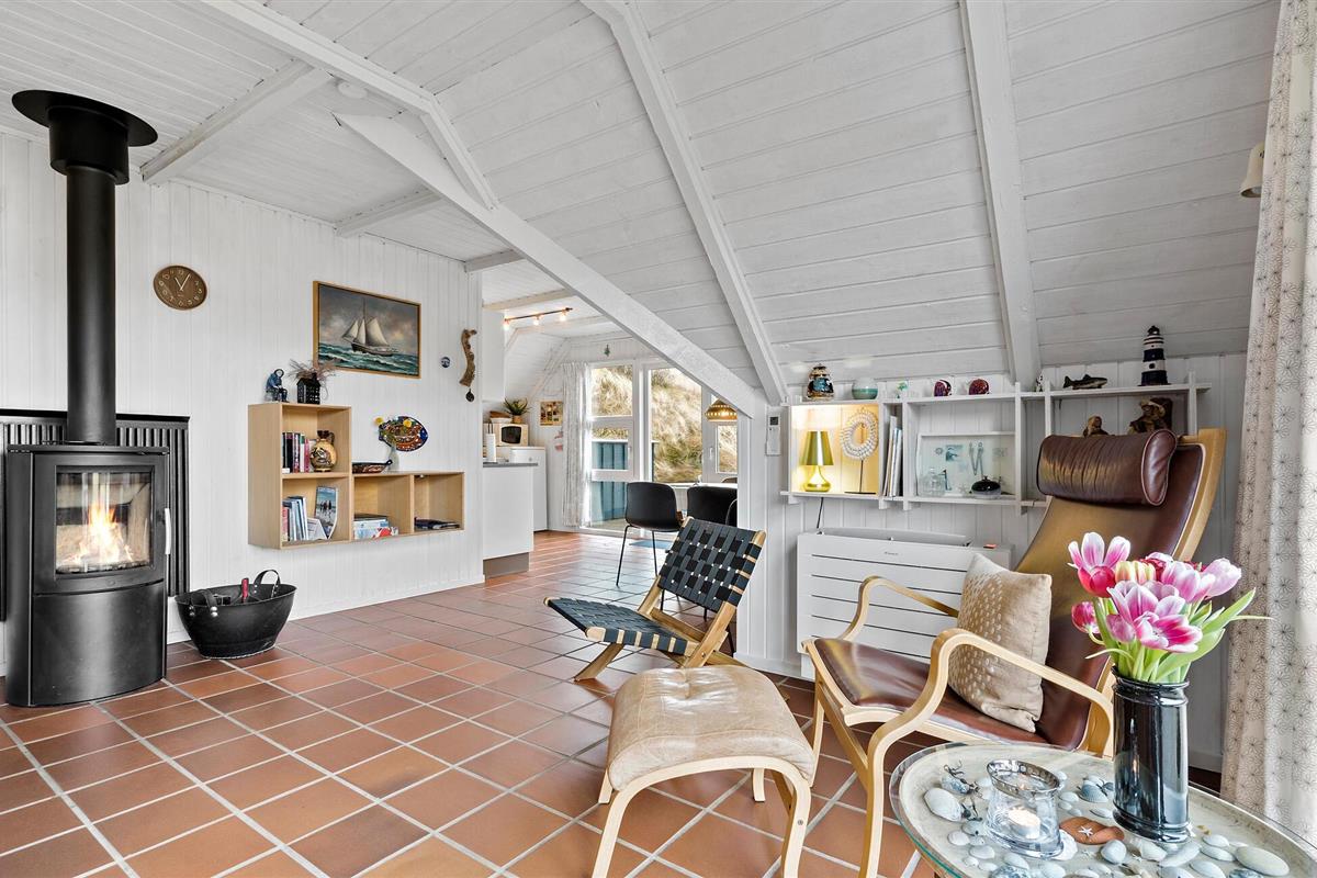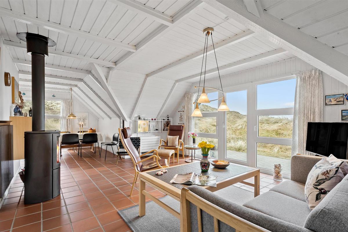 Dit vakantiehuis tussen de duinen en in een groot natuurgebied heeft een fantastische ligging. Vanaf het hoogste punt van de woning heeft u uitzicht op de Ringkøbing Fjord aan de ene kant en de ruisende Noordzee aan de andere kant, en op het ruime terras kunt u ongeremd genieten van de prachtige natuur van West-Jutland. Het is niet ver naar het vissersdorp Hvide Sande of het vakantieoord Søndervig. De prachtige stranden van de Noordzee zijn niet alleen geschikt om te zwemmen, er kan ook uitstekend worden gevist. Ringkøbing Fjord is de favoriete windsurfplek van Scandinavië, en is ook geweldig voor allerlei soorten familiezeilen.