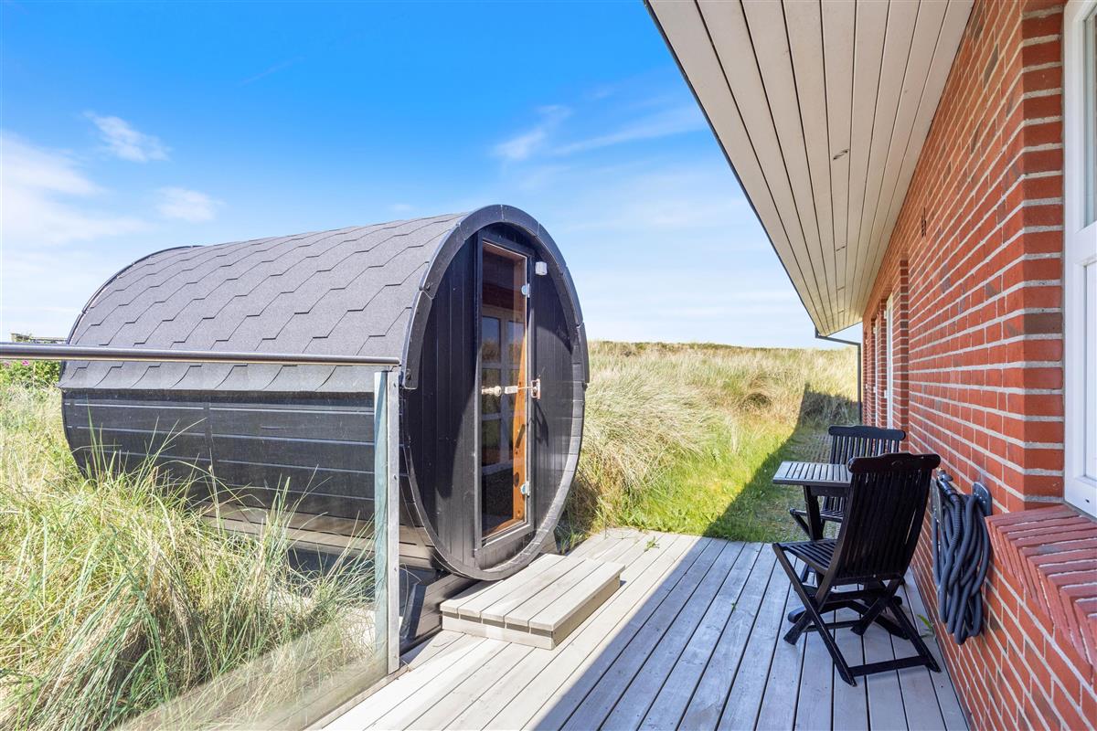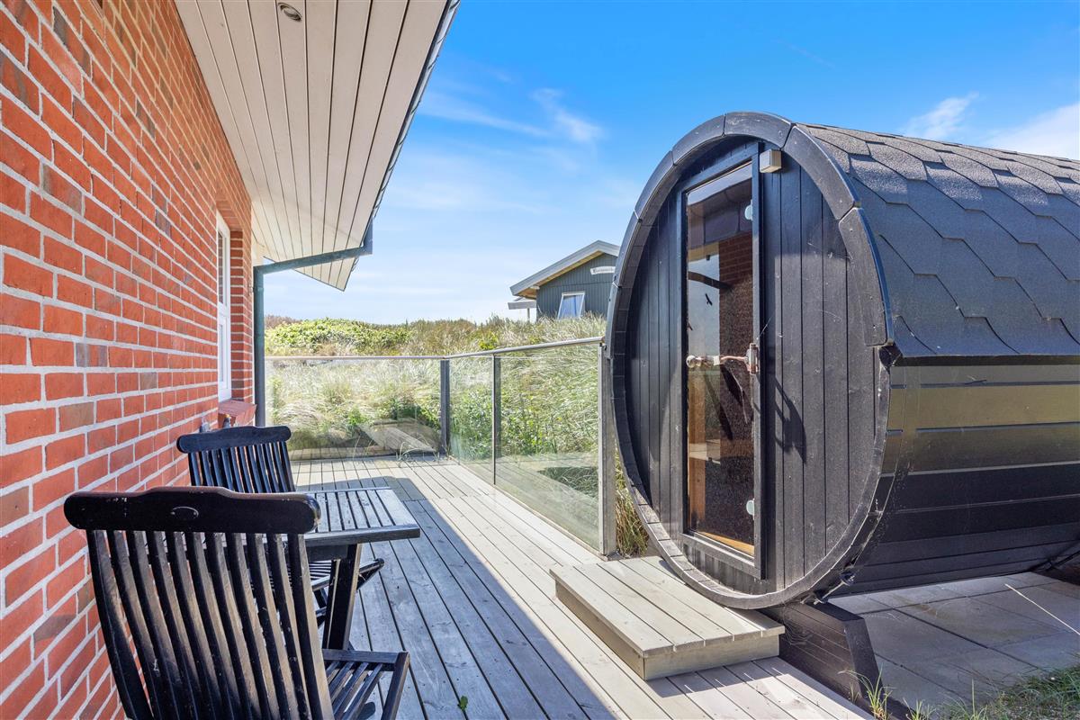 The terrace features a fantastic outdoor hot tub for warm relaxation under the open sky. There's also an excellent outdoor sauna - perfect for warming up after a long beach walk.
