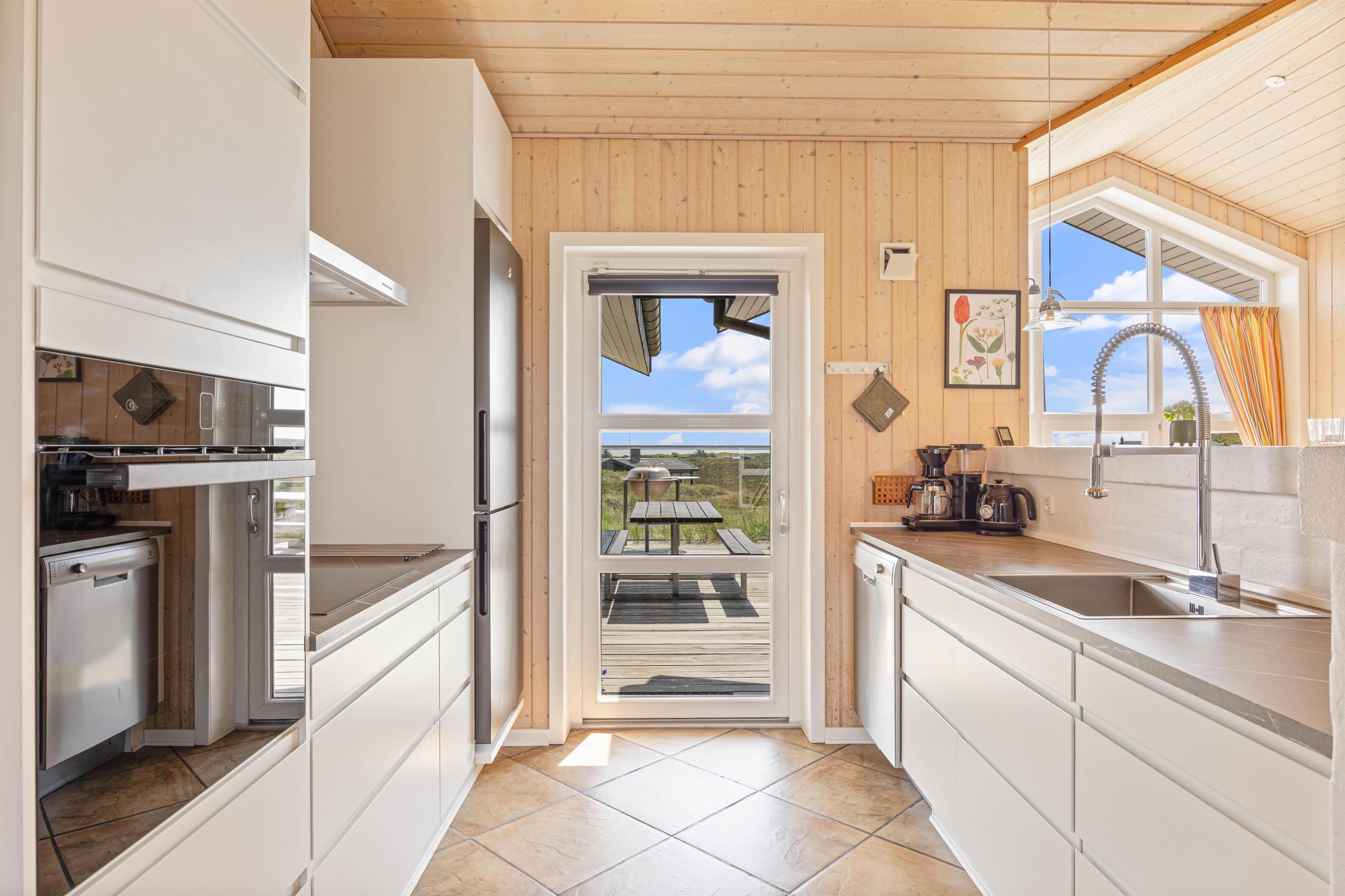 A quality holiday home where attention to detail is evident both inside and out. The tiled floors feature underfloor heating in the kitchen and living areas, offering both practicality and comfort. The pitched roof in the living room allows natural light to flood in, whilst the wide window frontage provides magnificent views across the dune landscape. The house is excellently equipped with all the modern amenities expected today. A particular highlight is the spacious bathroom featuring a double-sided washing station.