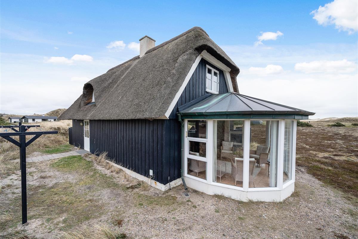 Located at Sommervej 5b in beautiful Skodbjerge, this holiday home is just 200 metres from the impressive dunes, magnificent beach and sea! This cosy thatched holiday home sits on a vast plot offering fantastic views across the surrounding heathland and dune landscape.