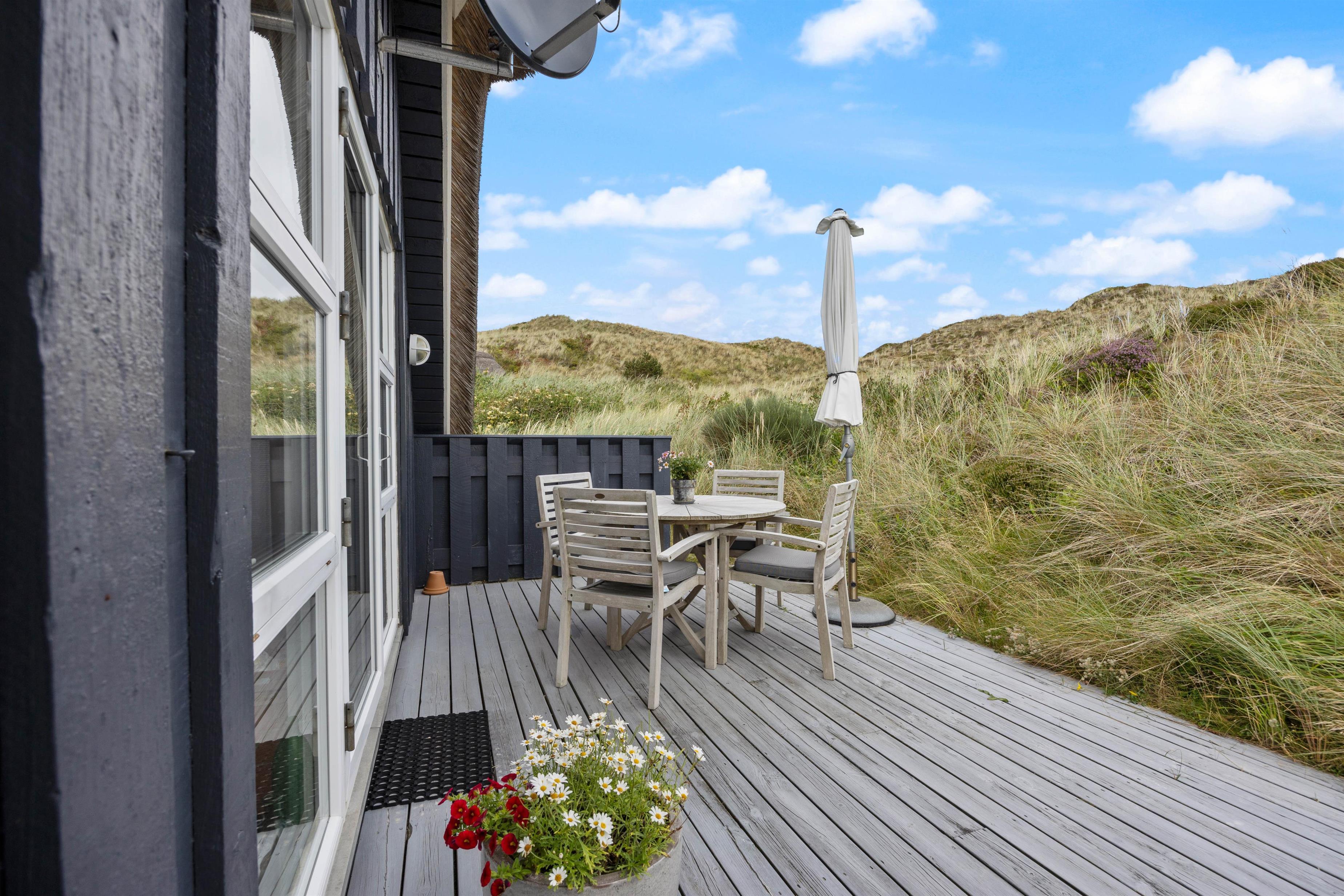 Your idyllically located holiday home is nestled within a 2,500-square-metre dune plot. Here you can relax in the comfortable garden furniture and unwind. The dune hills provide excellent protection from both wind and overlooking eyes, ensuring peaceful relaxation. In the evening, why not round off your day with a sociable barbecue?