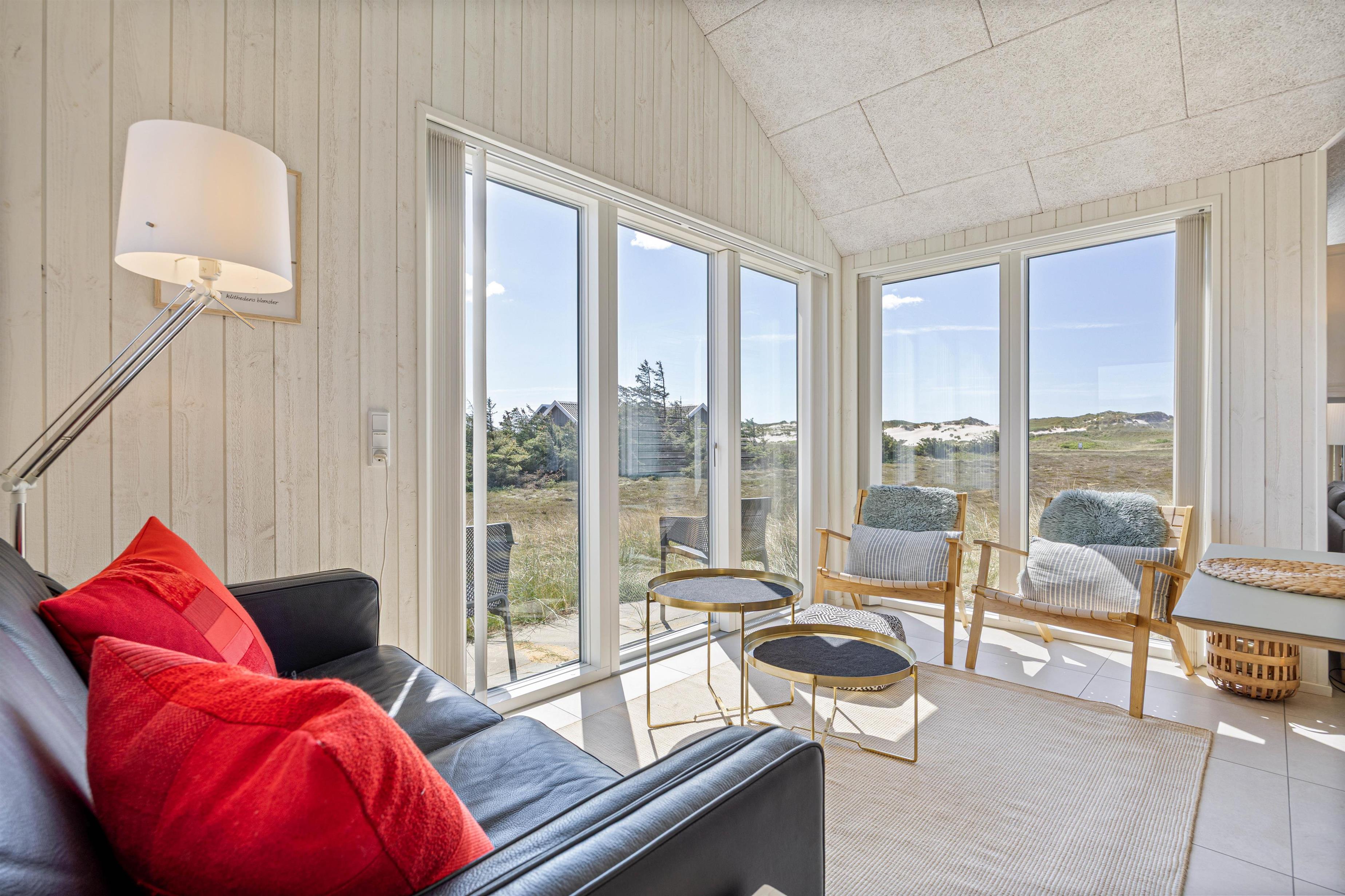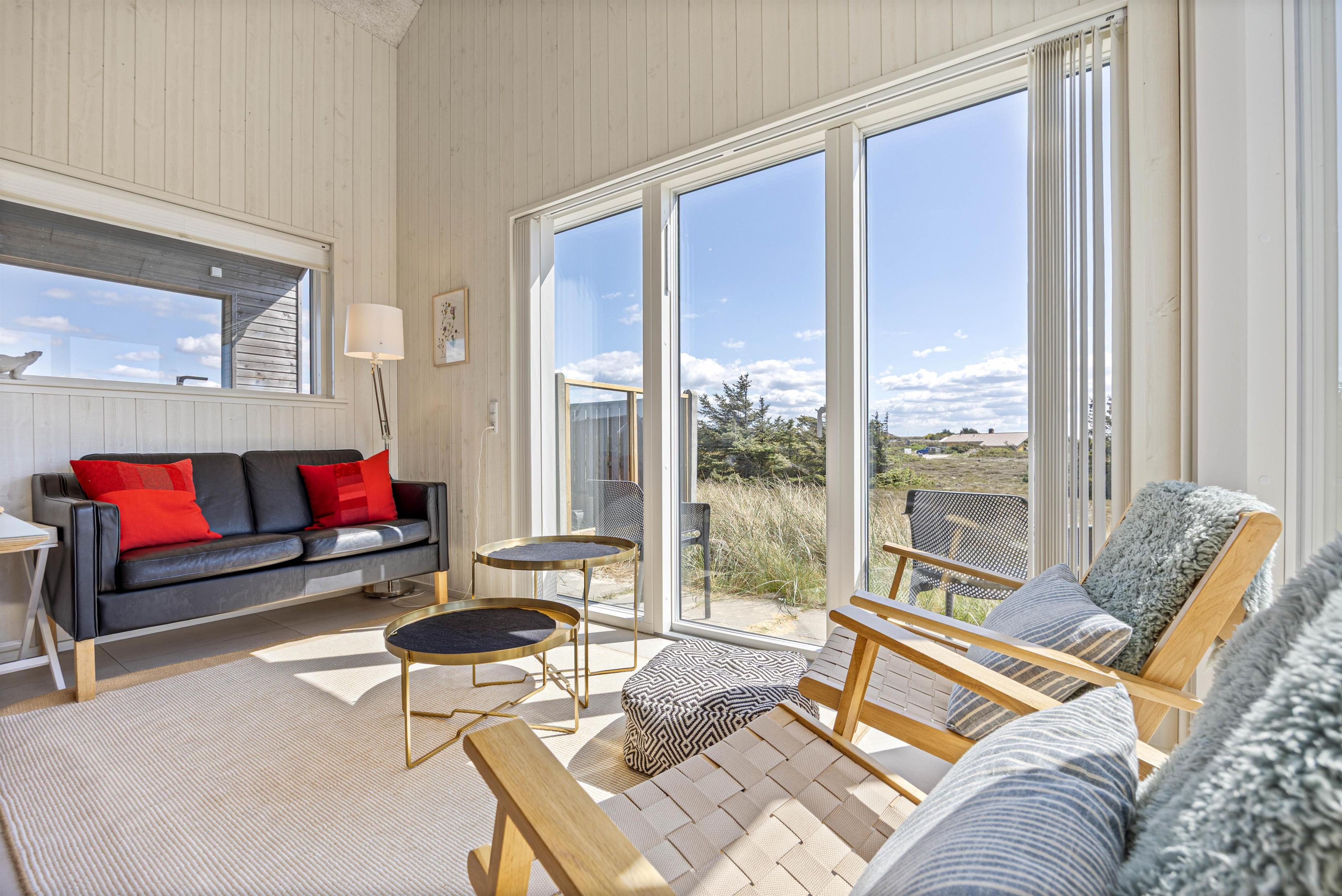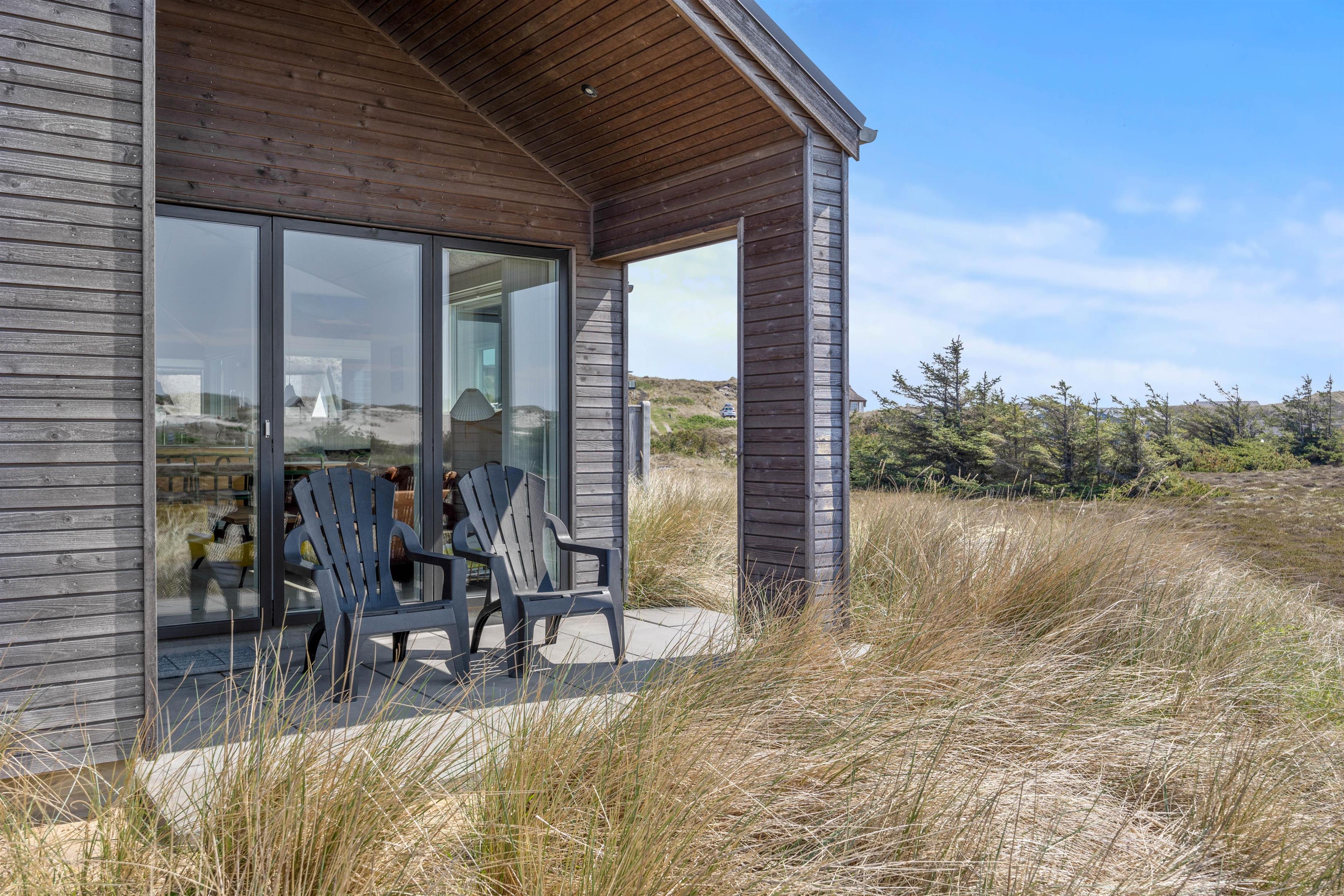 This modern holiday home at Sommervej 3, with its beautiful furnishings and high-quality finish, fulfils every holiday maker's dreams. The 120-square-metre holiday home accommodates up to 8 people. Features include a sauna and a wonderful covered terrace. The location is superb: nestled in the West Jutland dune landscape and only 200 metres from the beach.