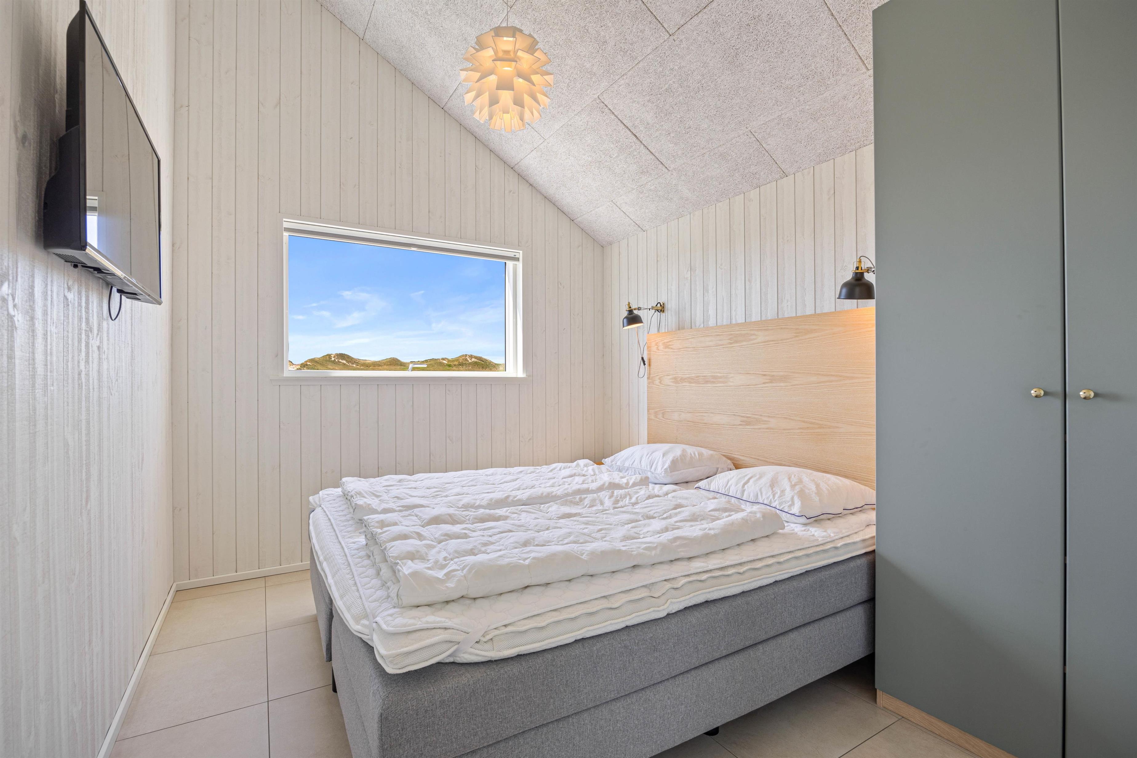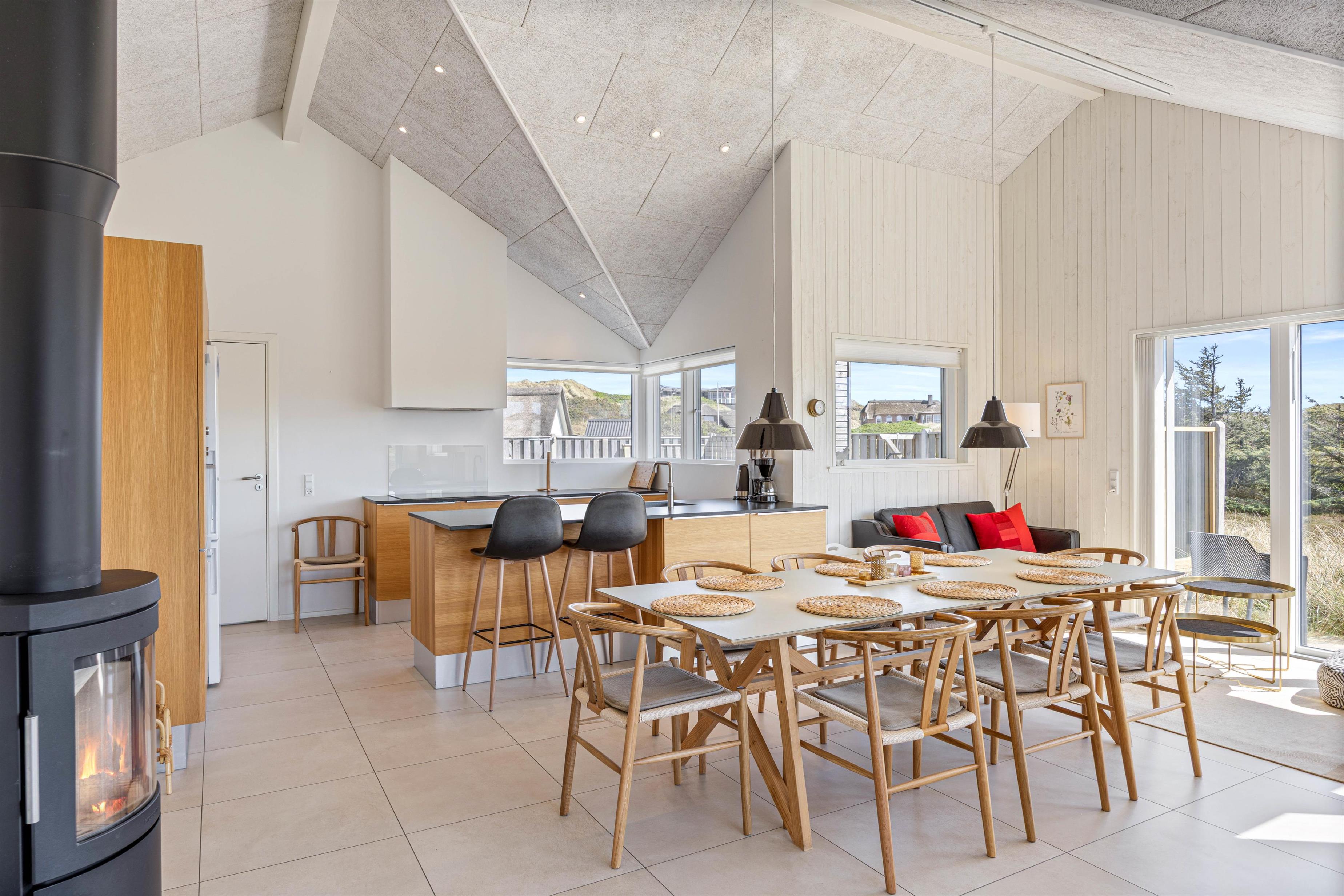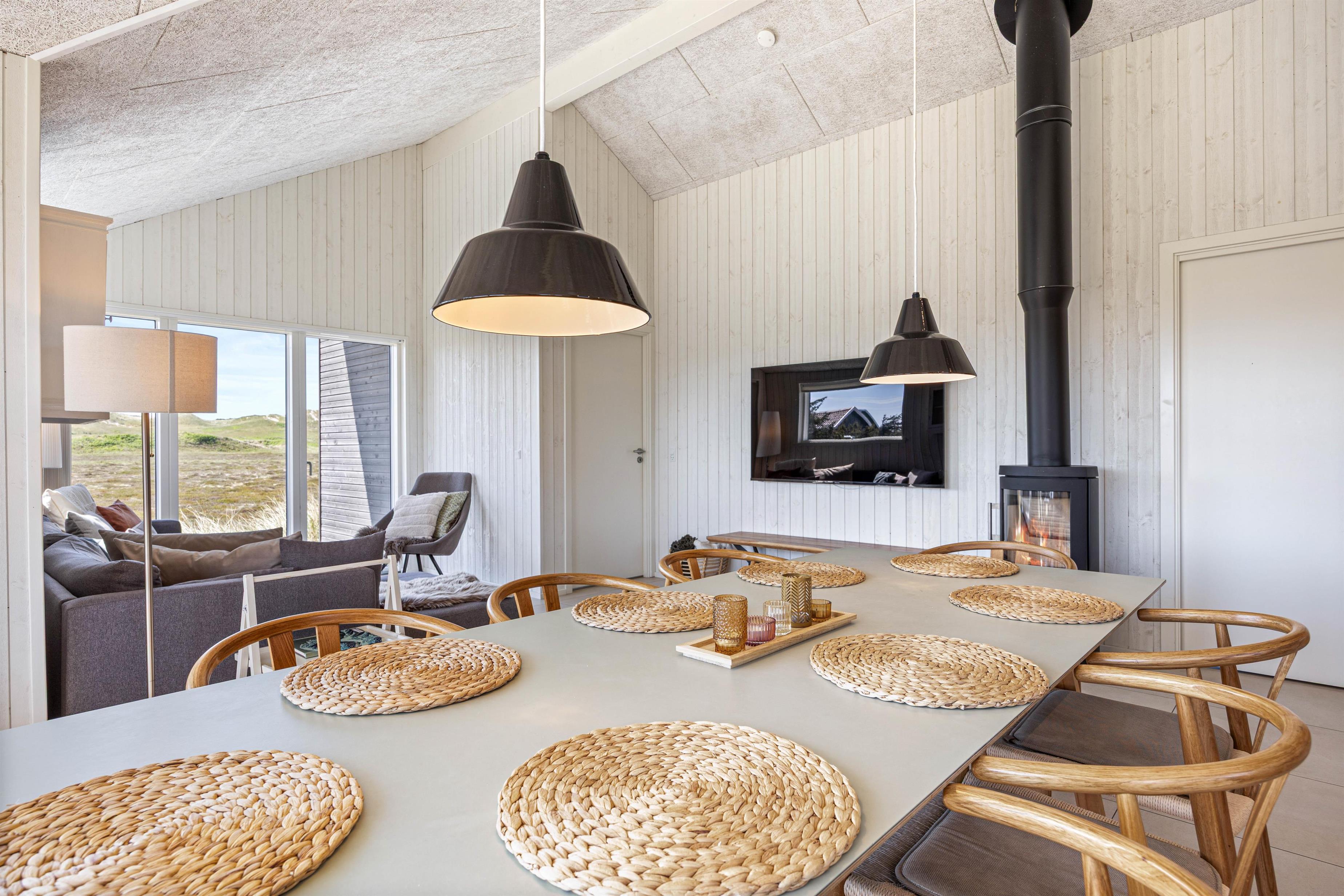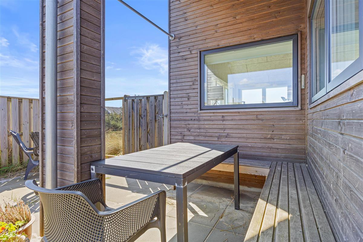 This modern holiday home at Sommervej 3, with its beautiful furnishings and high-quality finish, fulfils every holiday maker's dreams. The 120-square-metre holiday home accommodates up to 8 people. Features include a sauna and a wonderful covered terrace. The location is superb: nestled in the West Jutland dune landscape and only 200 metres from the beach.