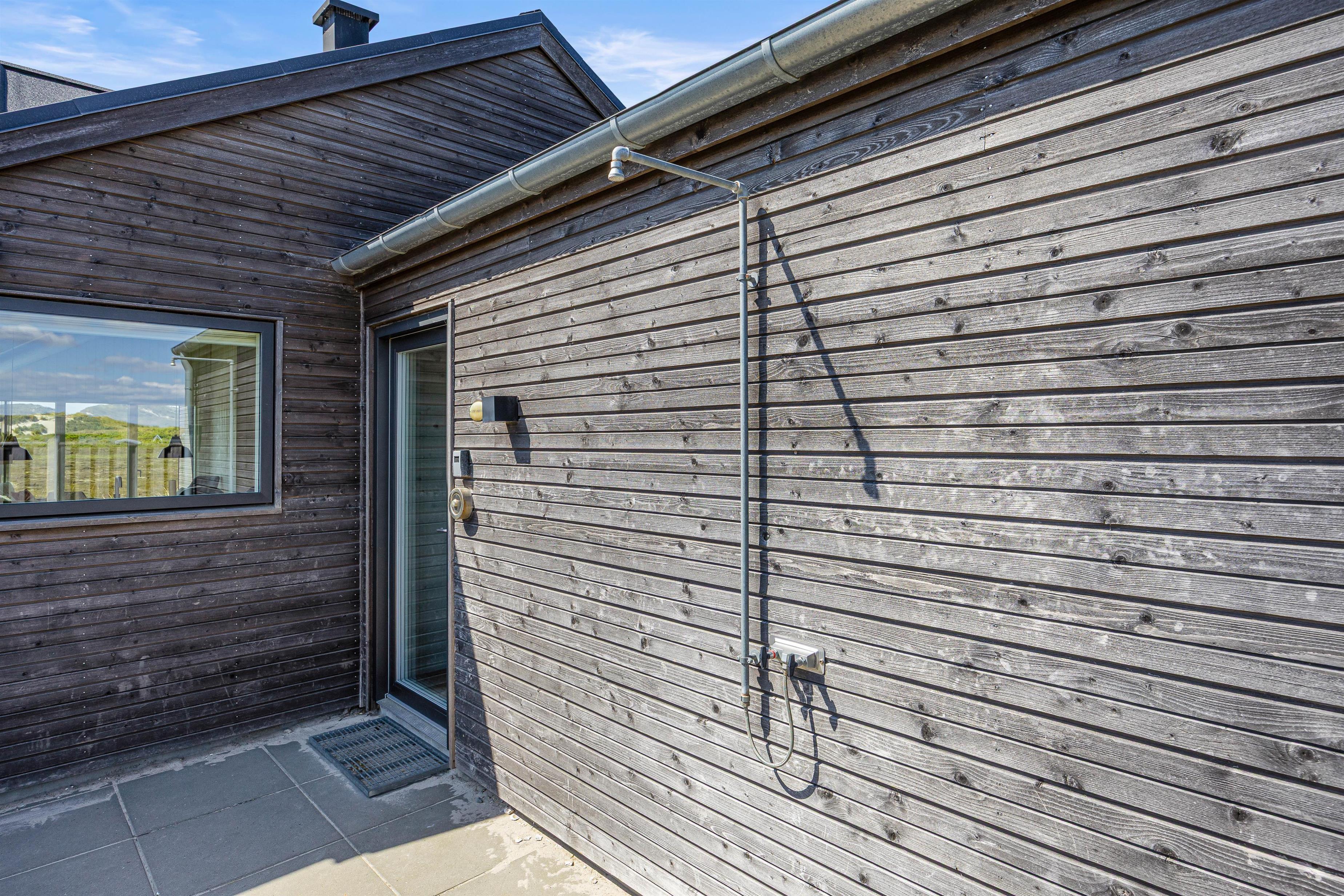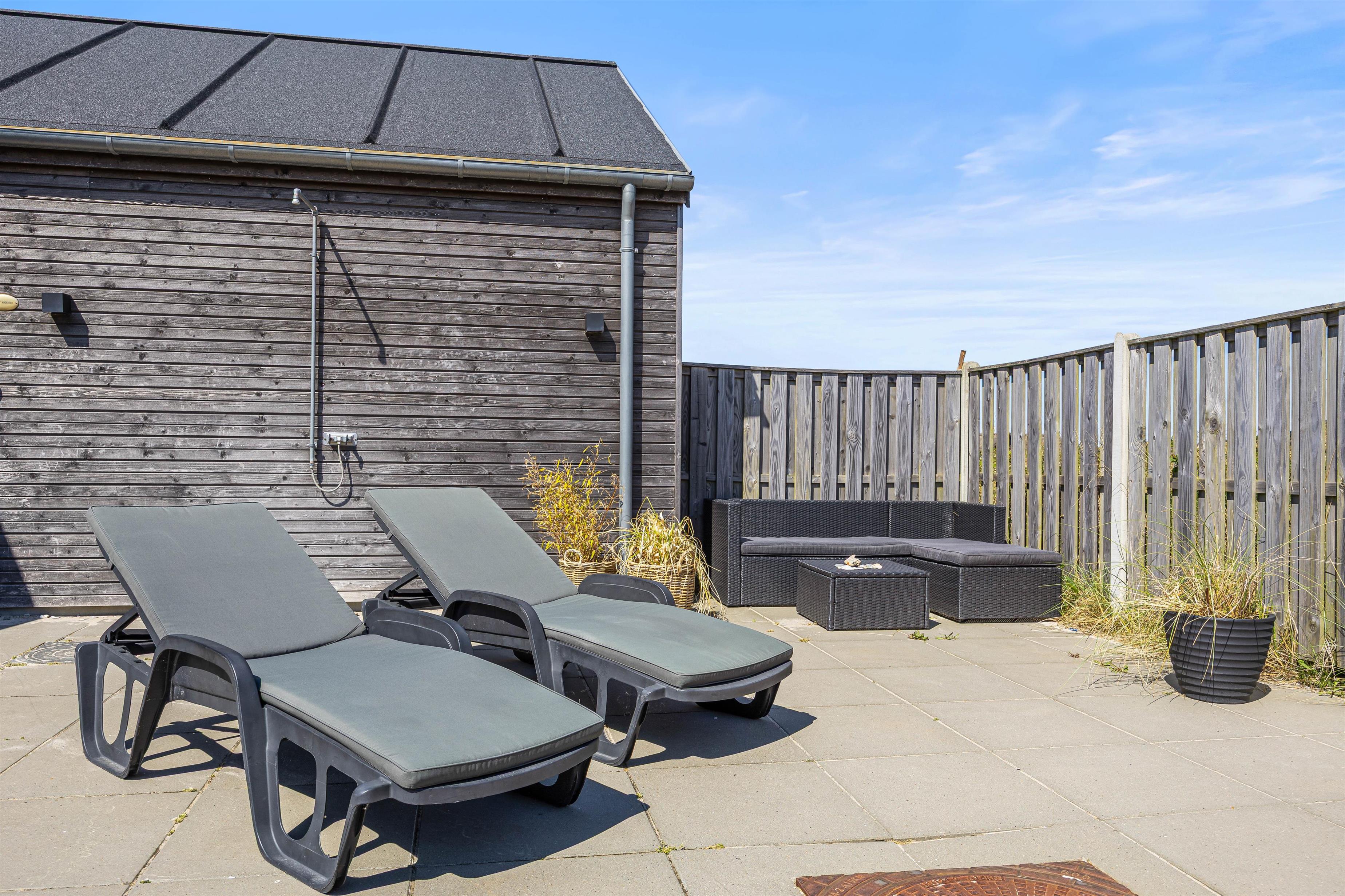 The house features a large covered terrace, allowing you to enjoy the fresh sea air in any weather. When the sun shines, sun loungers and garden furniture are available for your use. Prepare your evening meal outdoors using the provided barbecue and dine together in the evening sun. The holiday home also includes an outdoor shower, available from April to November.